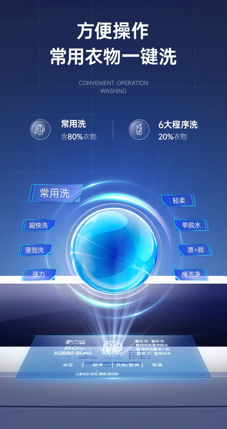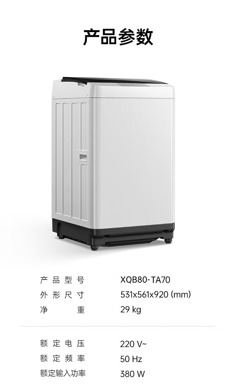 松下波轮洗衣机XQB80-T7A0
