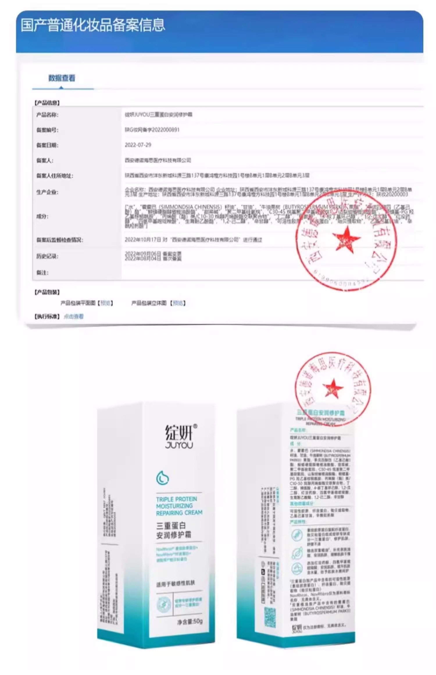 绽妍修红霜 三重胶原蛋白面霜 换季敏感肌缓解干痒红补水修护屏障(新老包装随机发)