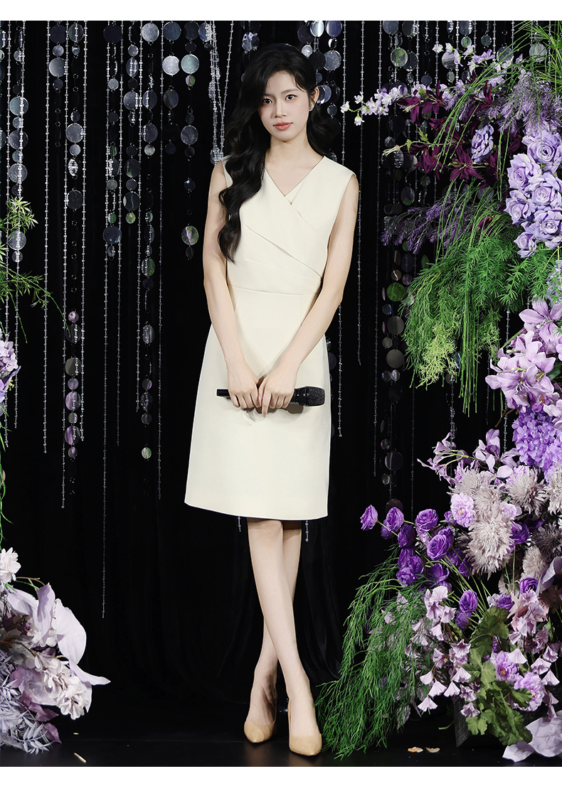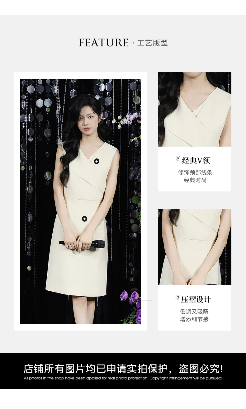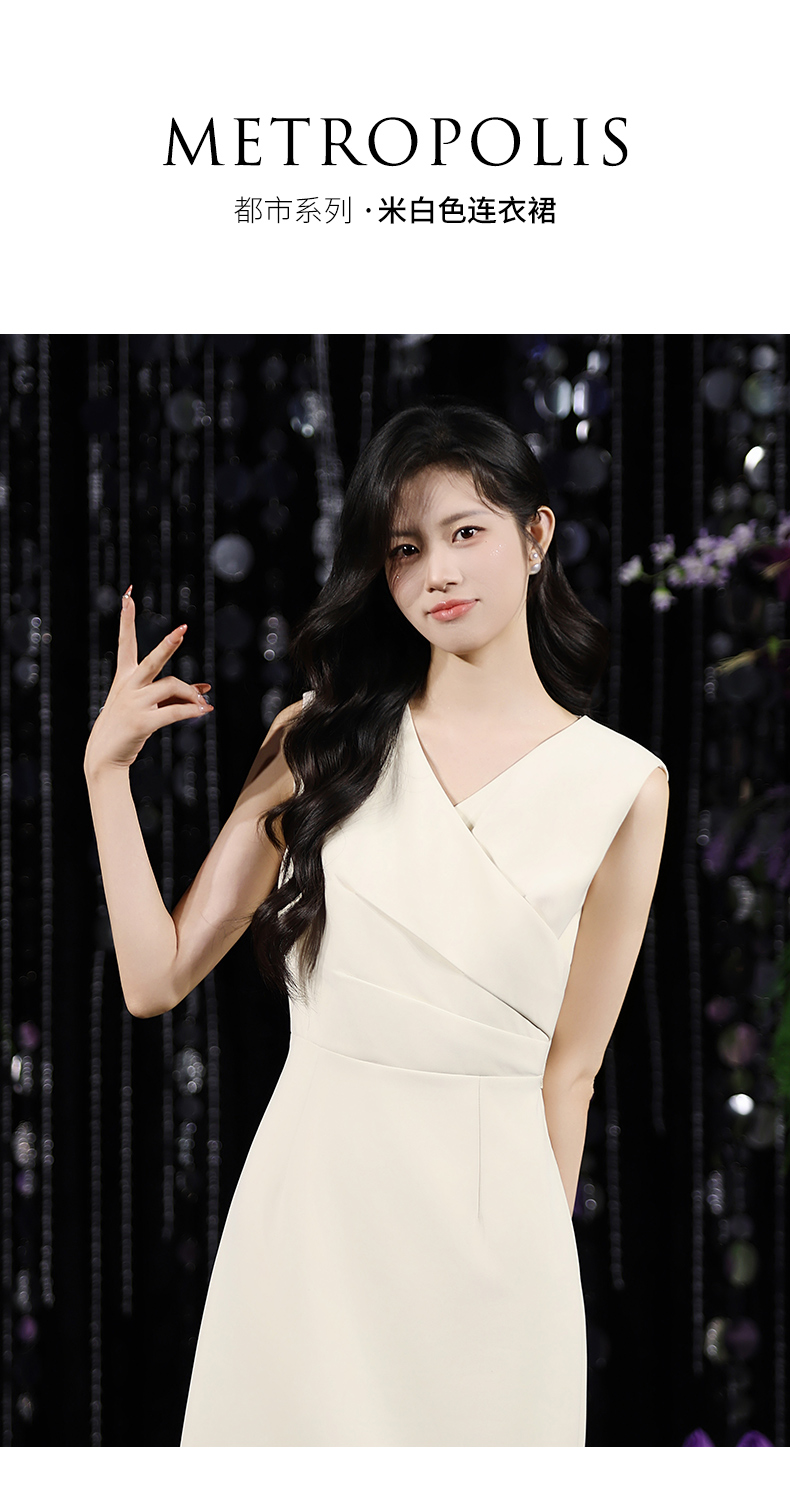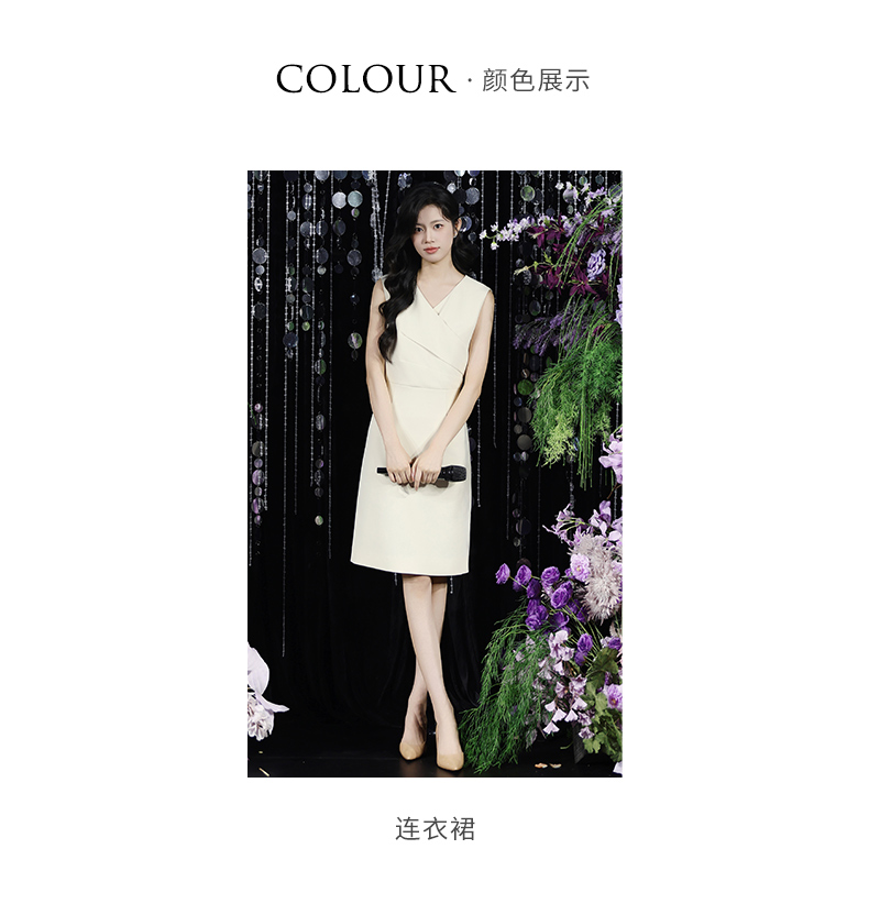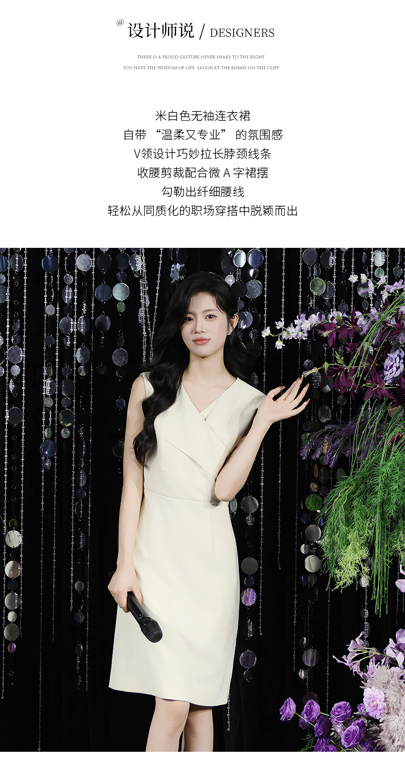 IWY/温柔专业风米白色无袖连衣裙V领显瘦收腰A字裙摆 职场气质穿搭告别同质化Q15206