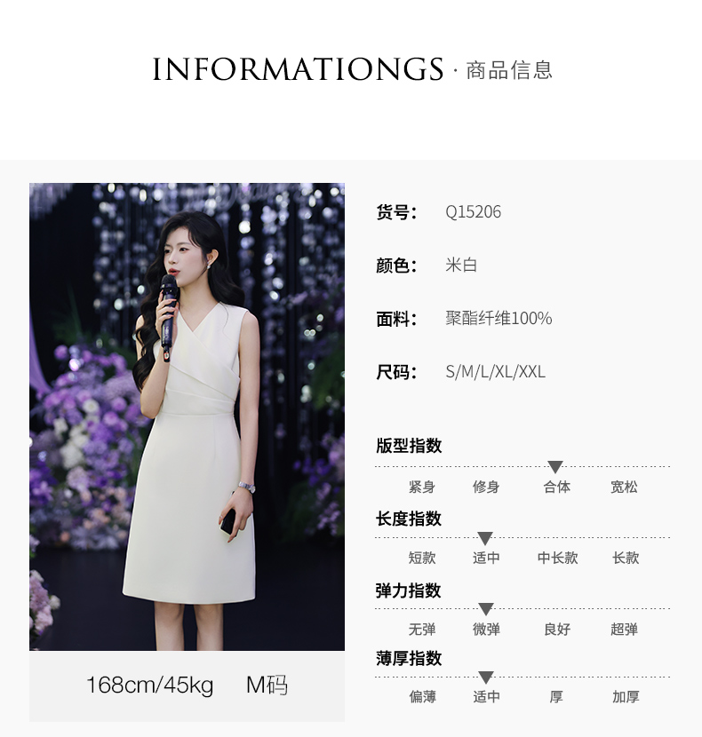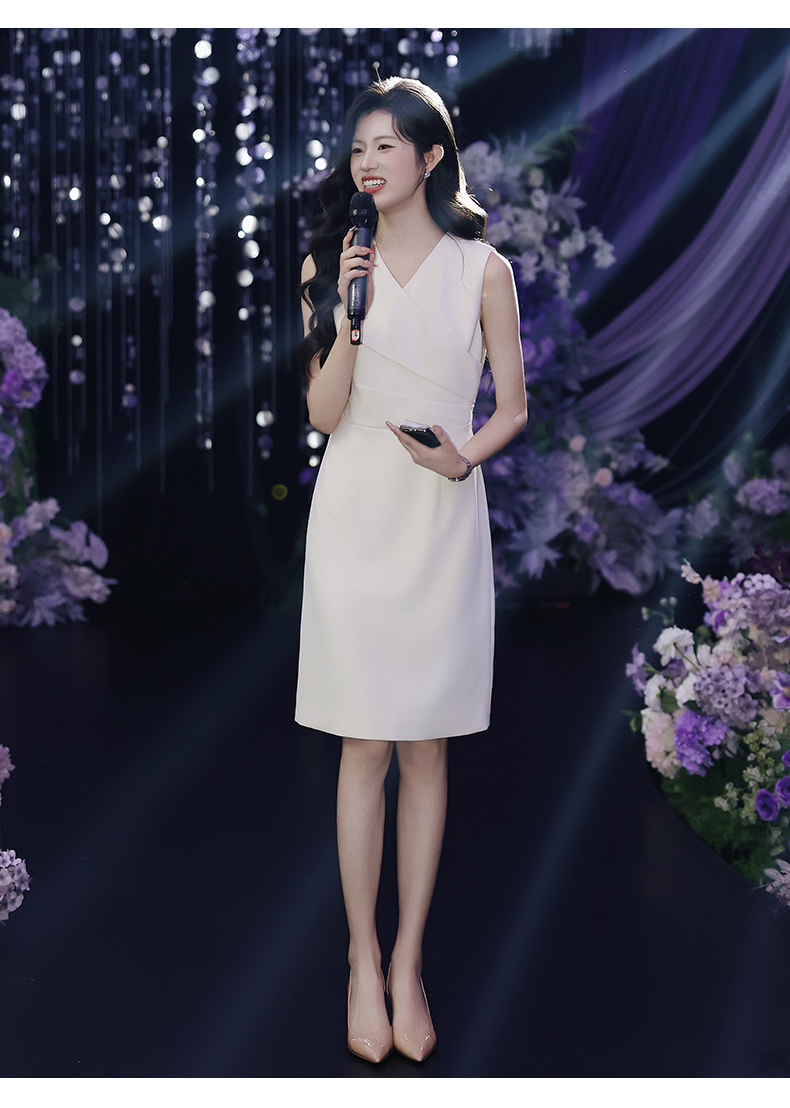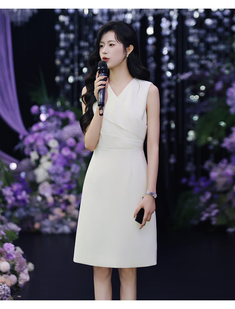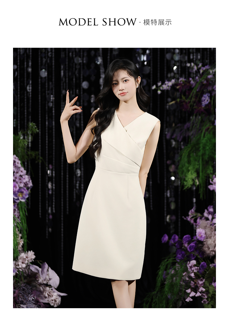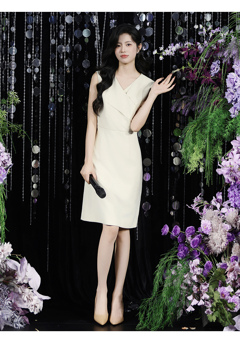IWY/温柔专业风米白色无袖连衣裙V领显瘦收腰A字裙摆 职场气质穿搭告别同质化Q15206