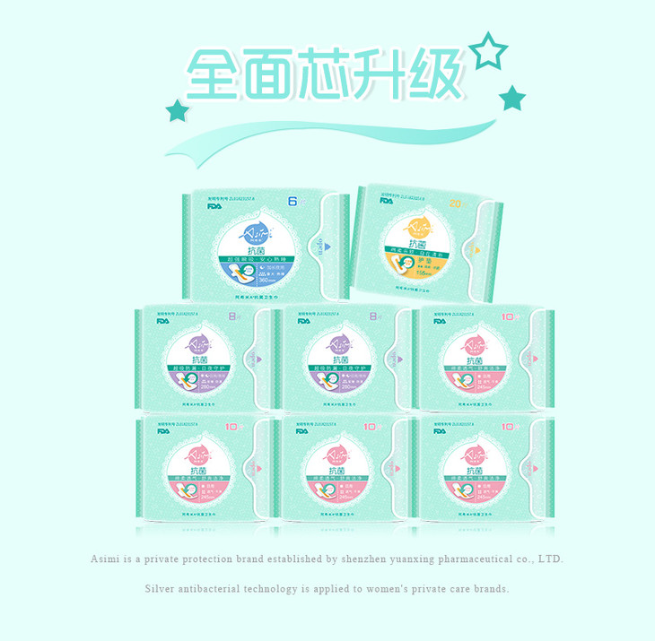 Asimi阿希米纳米银芯片抗菌卫生巾 4日2夜1加长1护垫组合8包