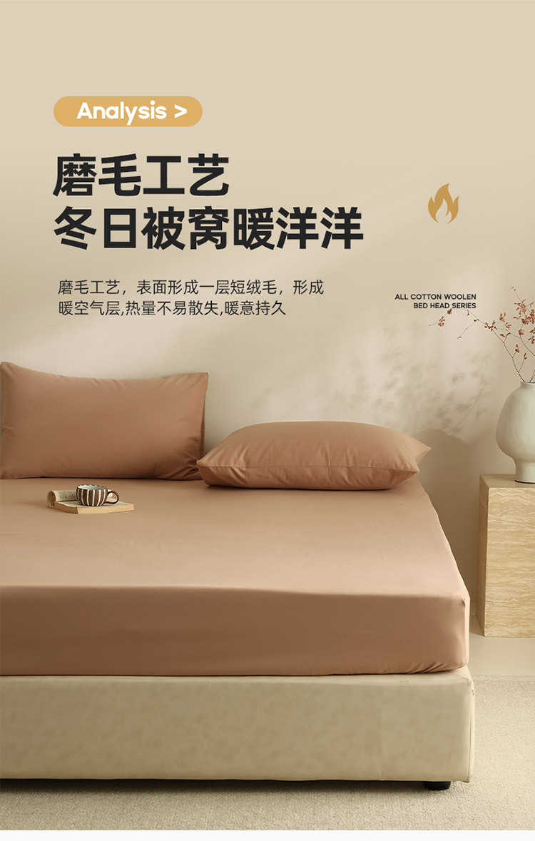 【100支全棉单品磨毛床笠】100支全棉单品磨毛床笠纯色中厚长绒棉床罩秋冬保暖
