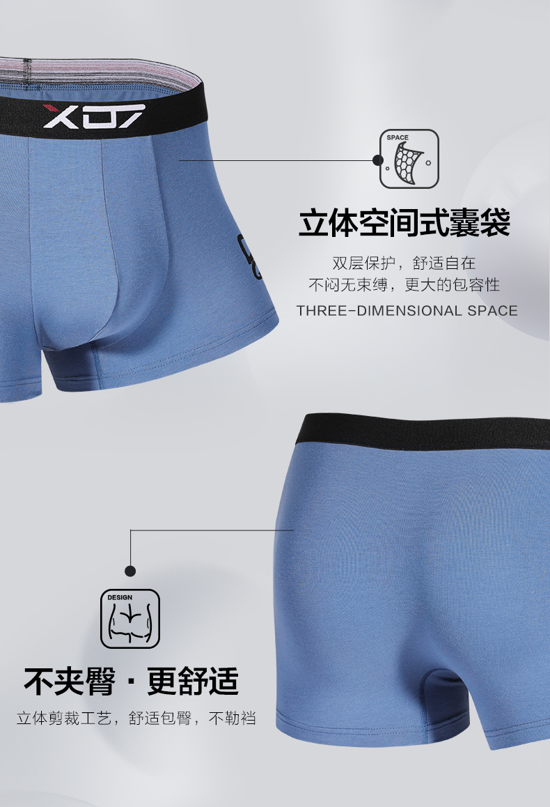 【礼盒3条装】柒牌内裤男士莫代尔平角棉裆抗菌短裤头夏季超薄宽松透气四角裤衩 119F70030