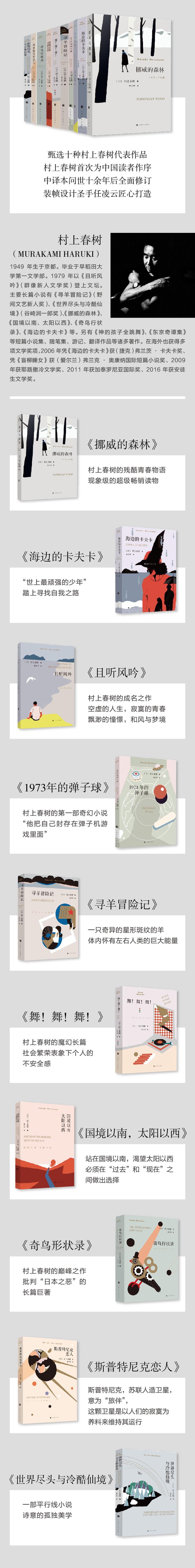 村上春树著的《国境以南太阳以西》讲述了:37岁的男主人公,在东京市区拥有两家兴旺的酒吧,还有娇美的妻子,可爱的女儿,他是一位真正的成功人士。但是,他的内心还是感到饥饿干渴,事业和家庭都填补不了,而让他那缺憾的部分充盈起来的,是他小学时的女友岛本。岛本不愿吐露自己的经历、身份、只希望他就这样接受眼前的自己,只把她当成小学时那个爱古典乐的女孩。然而,就在他接受了这不可能接受的条件时,两人却在箱根别墅度过了销魂的一夜。翌晨,她一去杳然、再无踪迹可寻了。