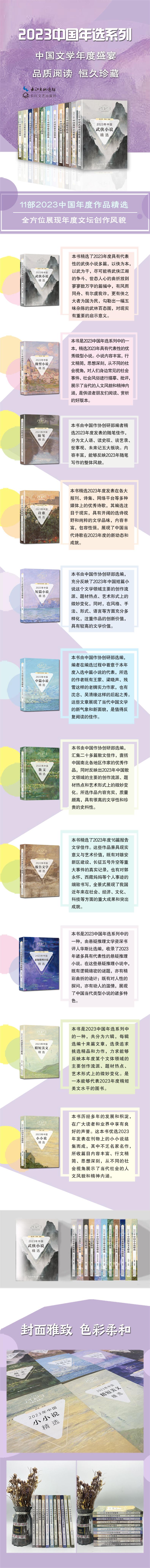 《2023中国微型小说精选》为2023中国年选系列丛书中的一本,历经二十年的发展和积淀,在广大读者和业界中享有良好的声誉。这本书优选2023年发表在刊物上的微型小说结集而成,所收篇目内容丰富、行文精简、思想深刻,从不同的社会视角,对人们身边常见的社会事件、社会风俗进行描摹、批评。反映了当代人的生活、爱情和种种人生,展示了当代的人文风貌和精神内涵。这是一套有特色的、有份量的微型小说选集,也是供读者朋友们阅读、赏析的好版本。