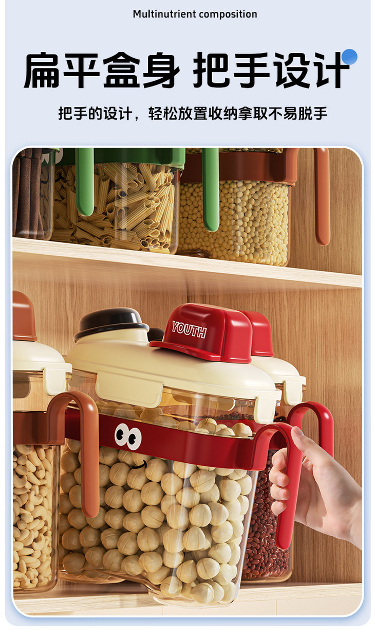 圆润边角设计,表面光滑厚实 整理物品时也不用担心划伤自己~ 透明可视 能更快的找到想用的食材 分类储存,方便抓取 密封防潮,让生活更便捷~