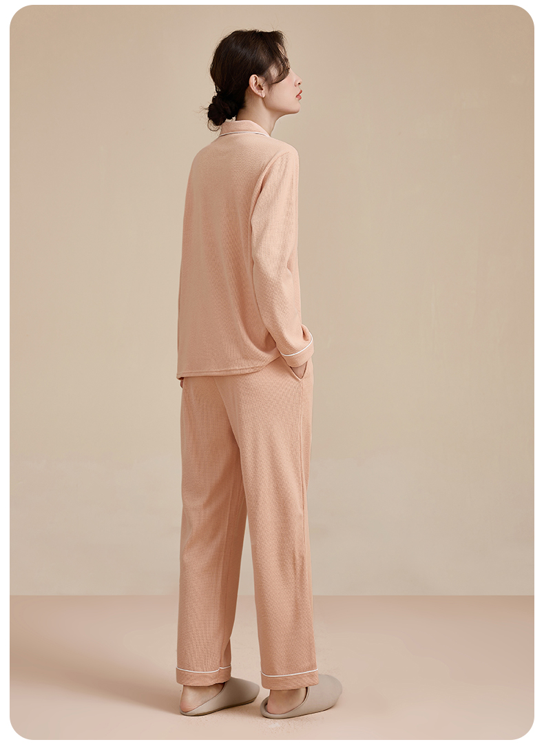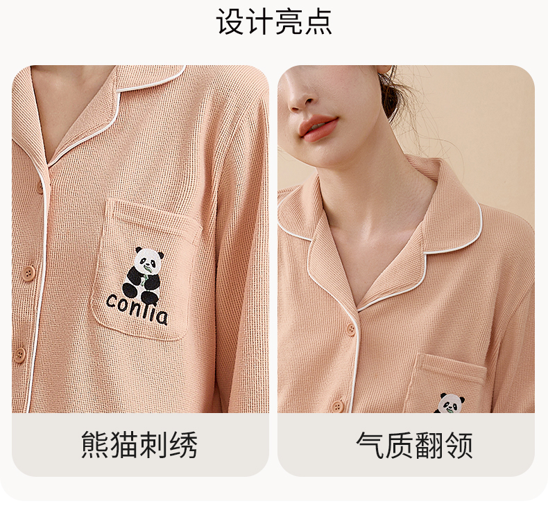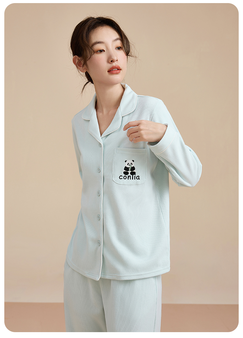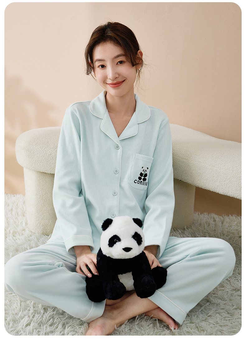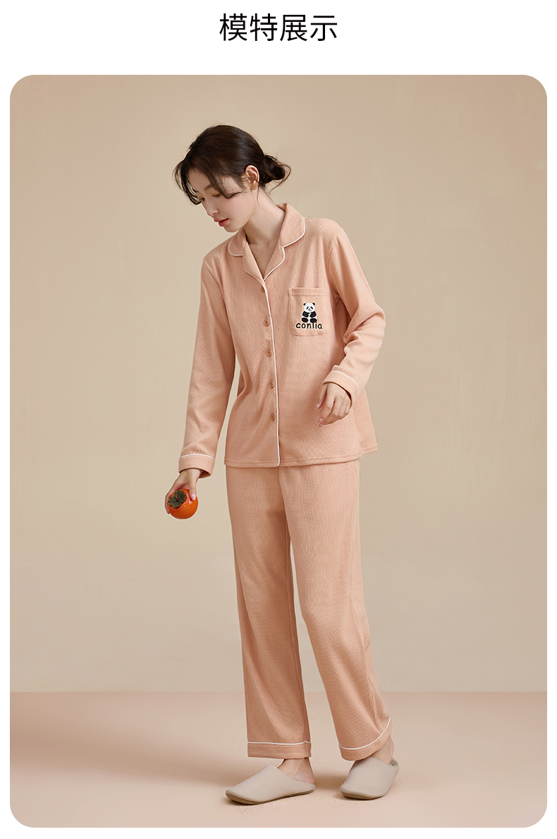 康妮雅睡衣女式长袖长裤开襟套装