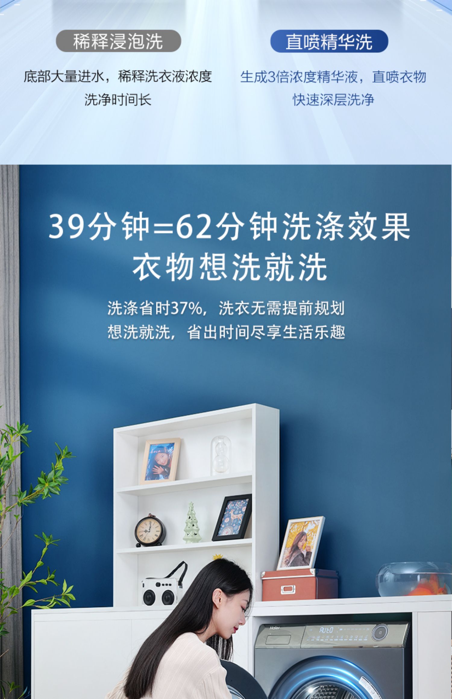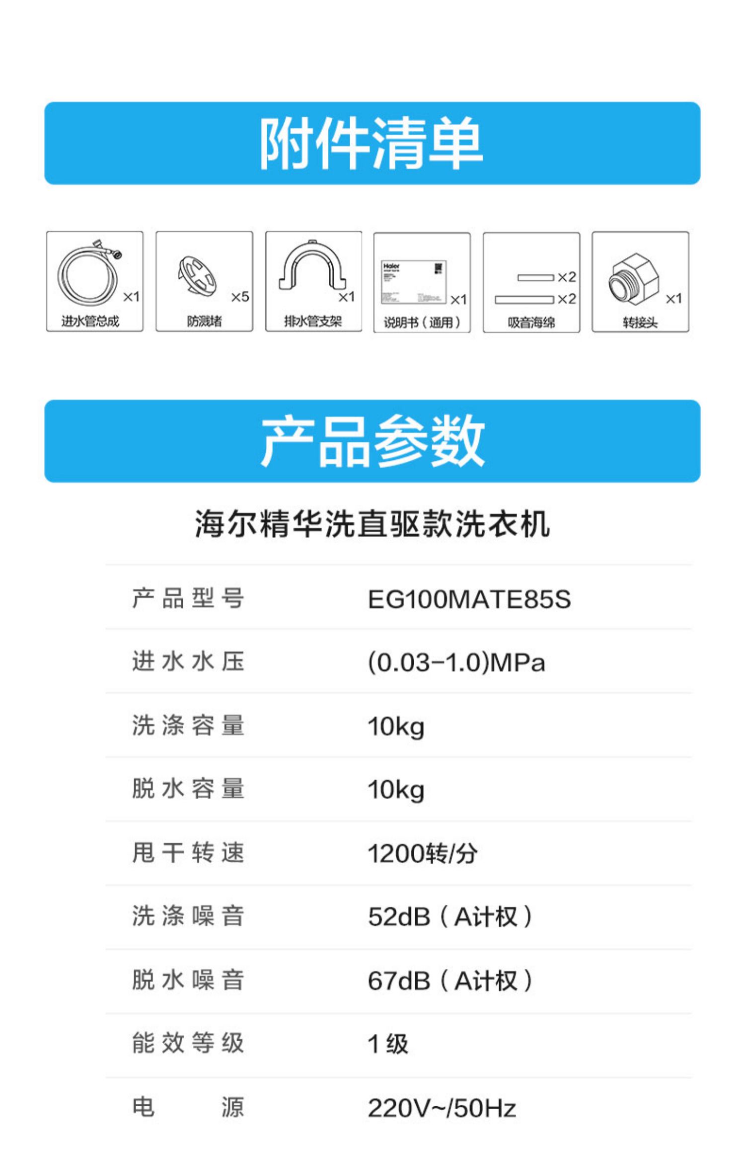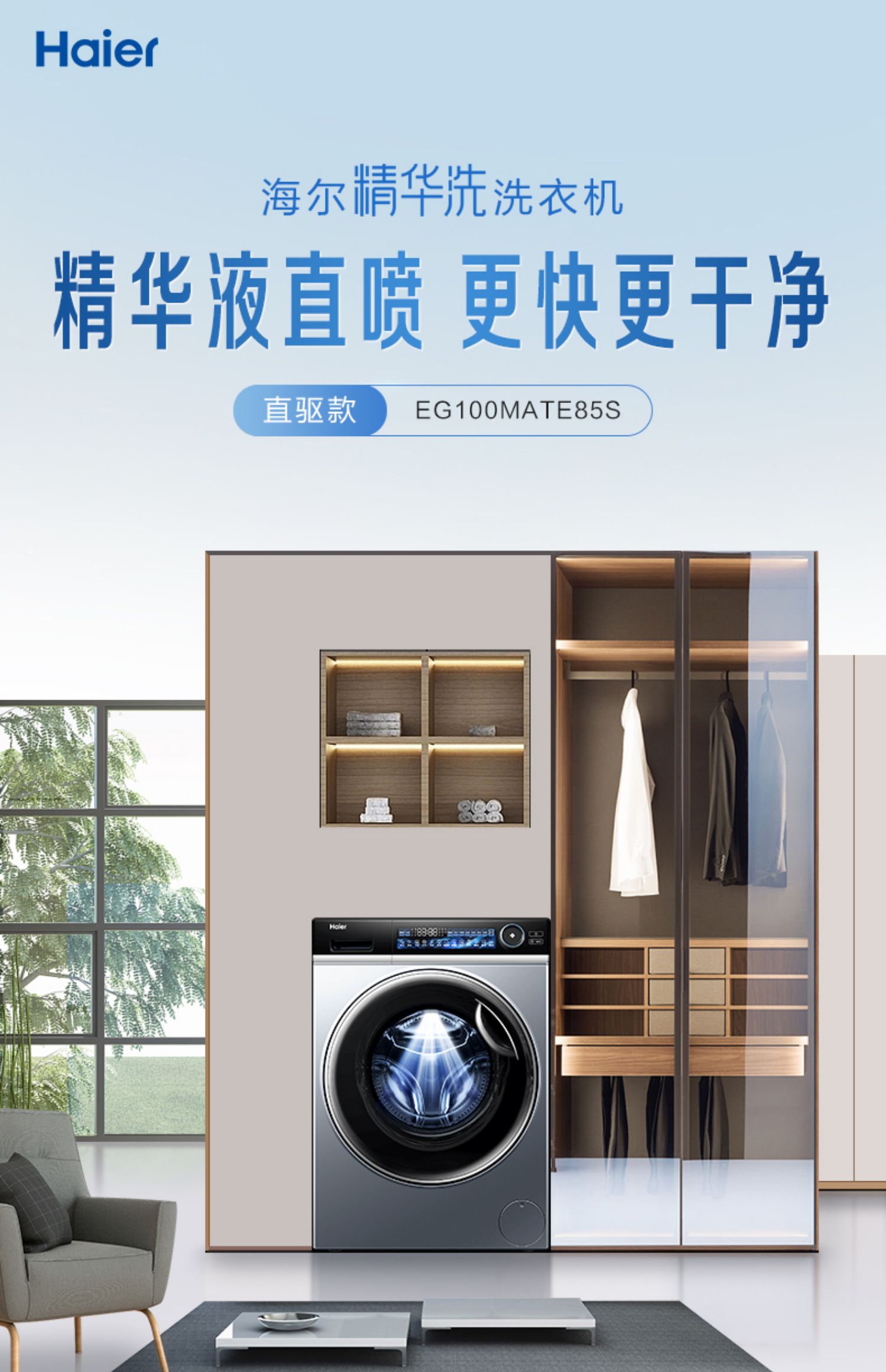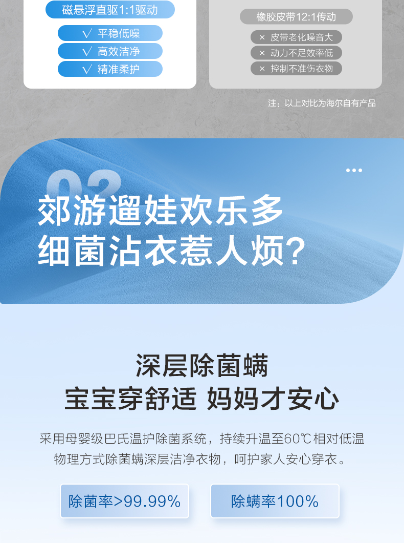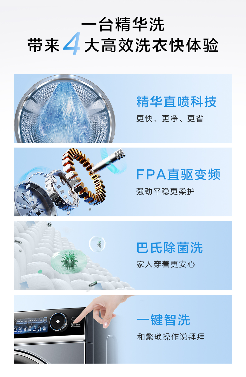【精华洗】海尔精华洗直驱10kg家用大容量全自动智能除菌变频滚筒洗衣机85s