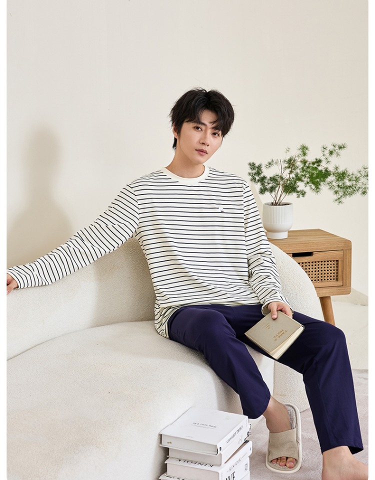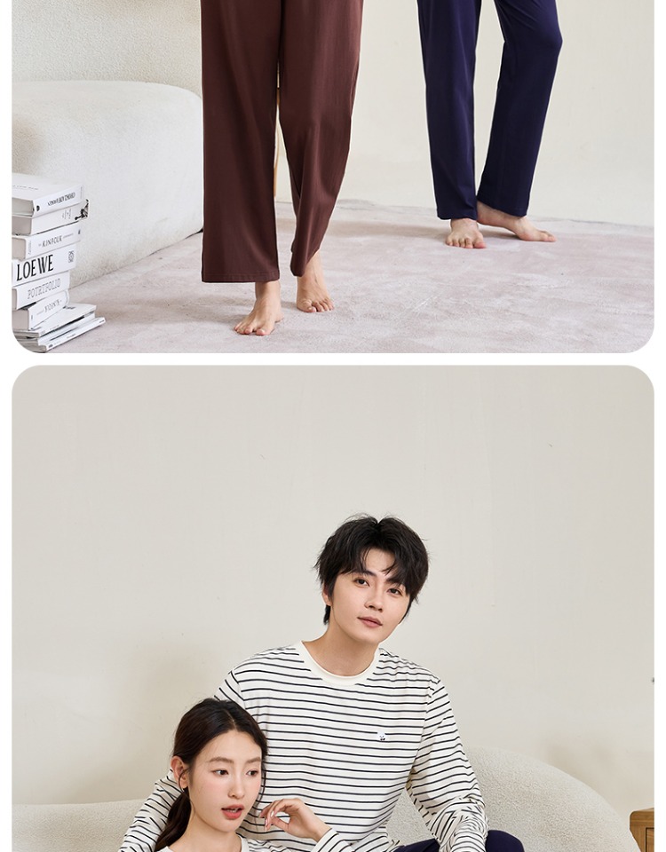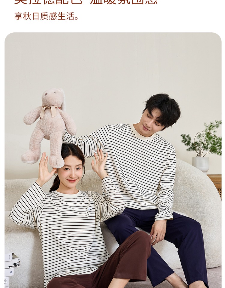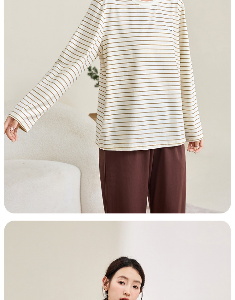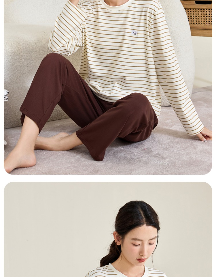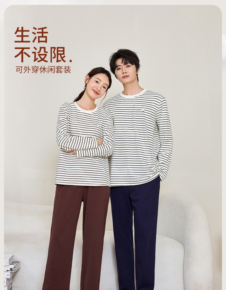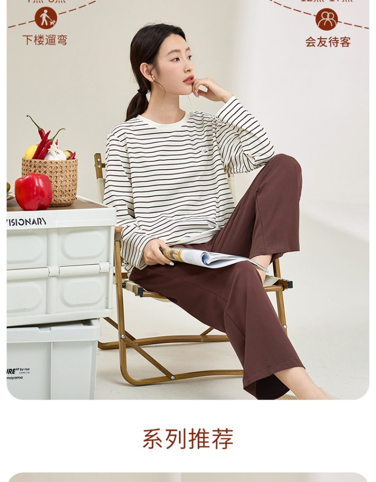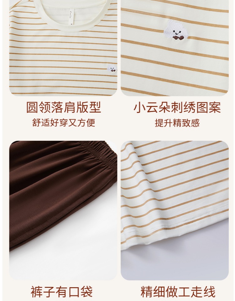 (合作款)内茵带胸垫双沿条撞色家居服套装