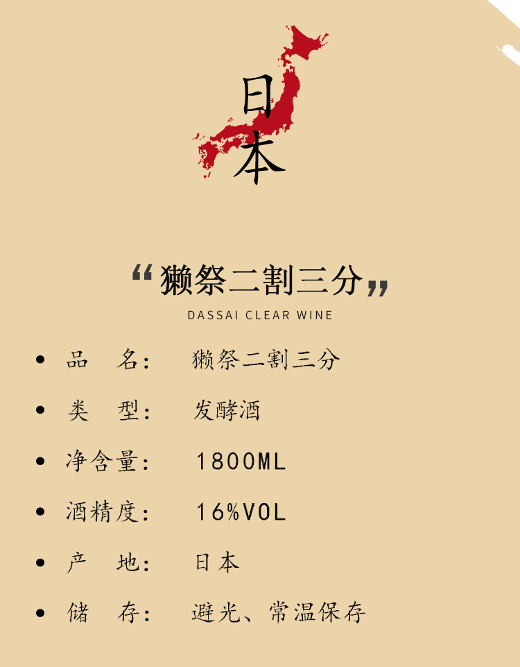獭祭纯米大吟酿23清酒(发酵酒)1.8L