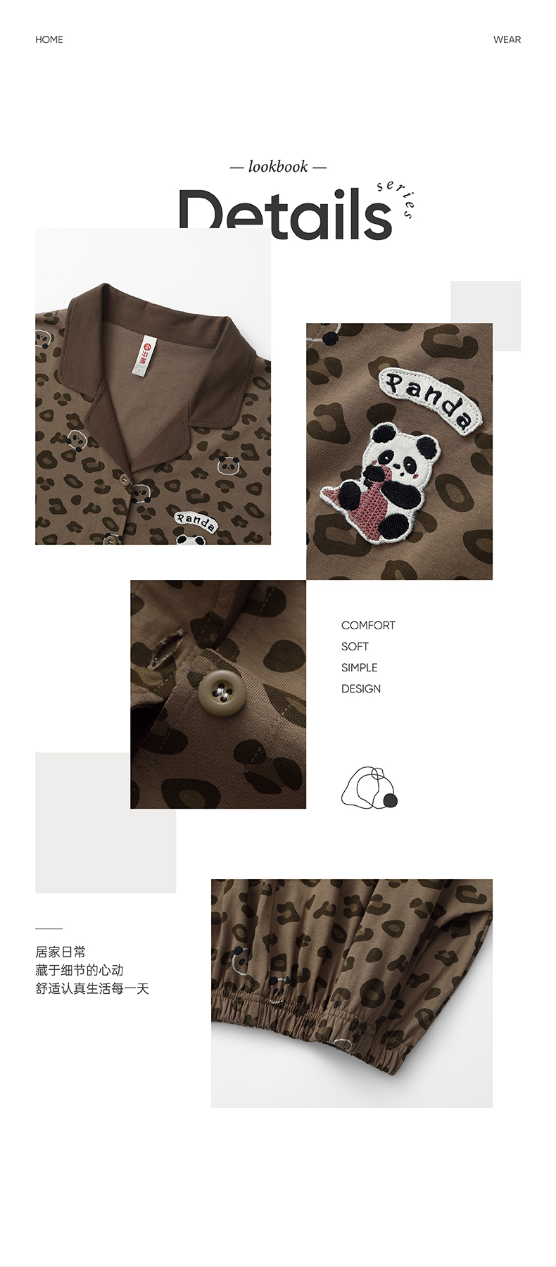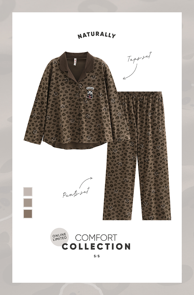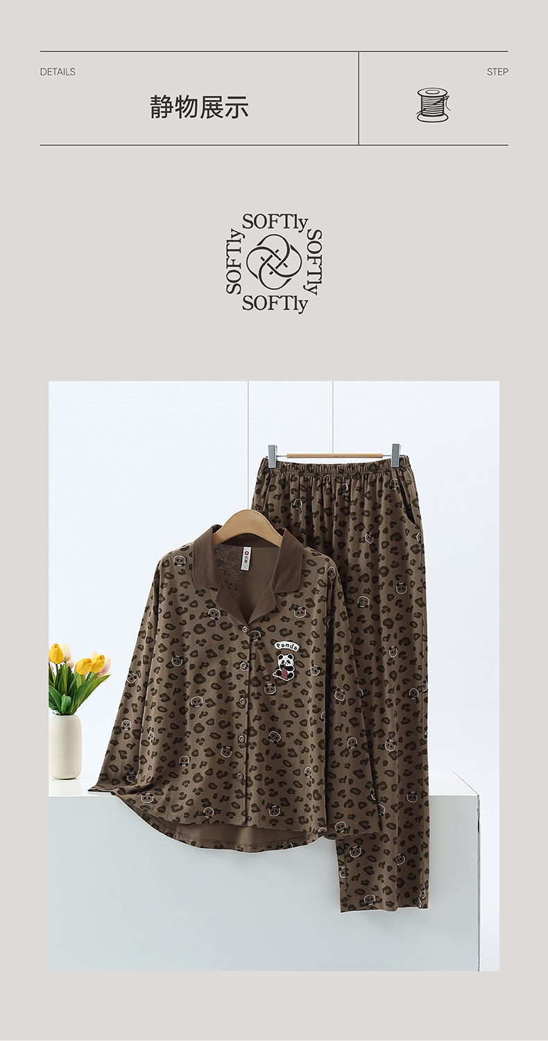 芬腾新款女士睡衣春秋长袖长裤纯棉豹纹熊猫全棉开衫家居服套装