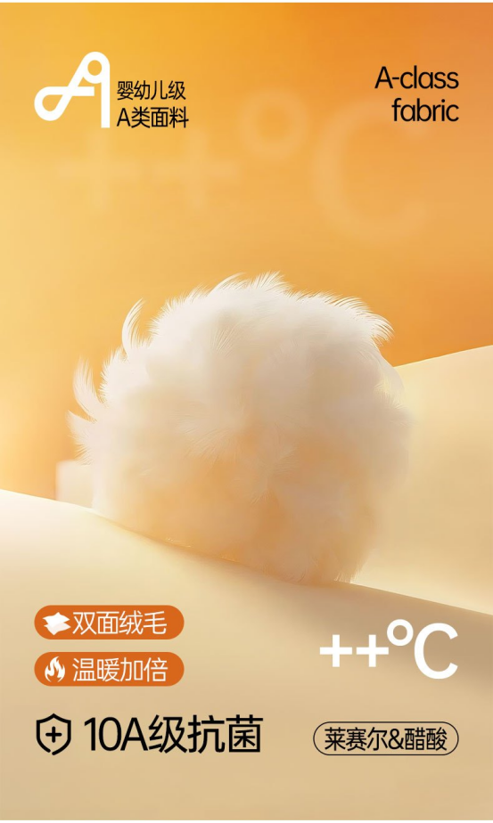 450克高克重,防风御寒,保温率远超国标认证,达到33%🆙 上身更保暖,一件低三件 A类面料零萤光零甲醛,透气排汗防异味‼️ 10A抗菌呵护孩子成长发育🈵 口像云朵轻抚肌肤,手感软糯舒适 口莱赛尔+醋酸纤维黄金搭配,软糯的触感