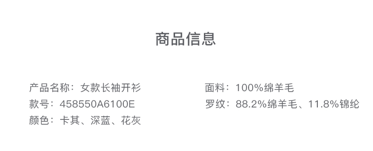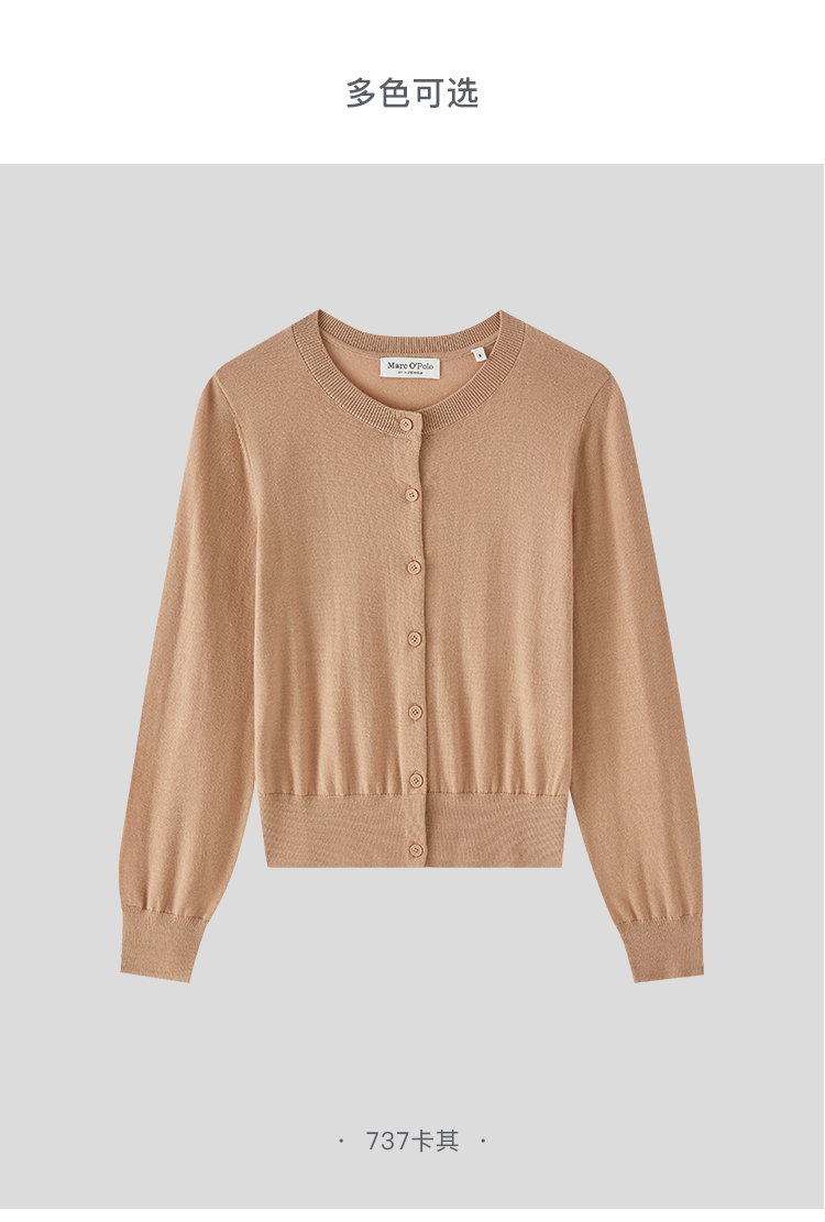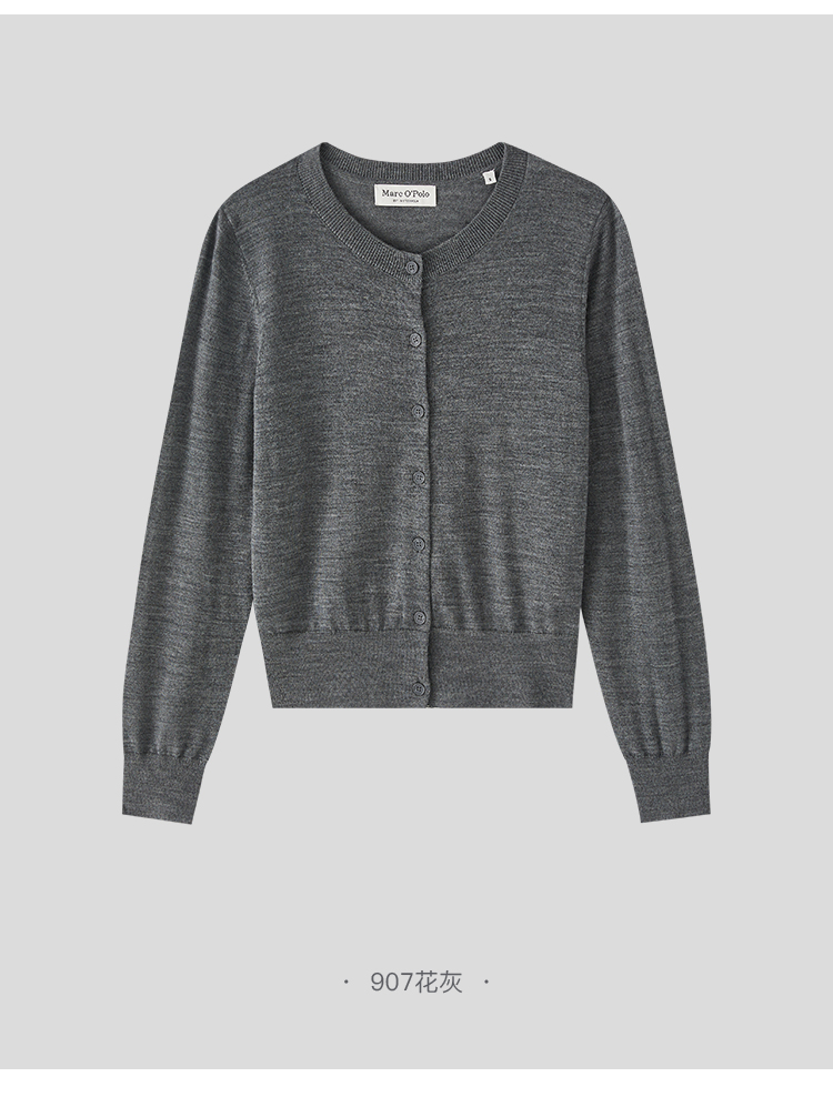 Marc O'Polo/MOP 秋季新款螺纹圆领宽松可机洗羊毛针织开衫女