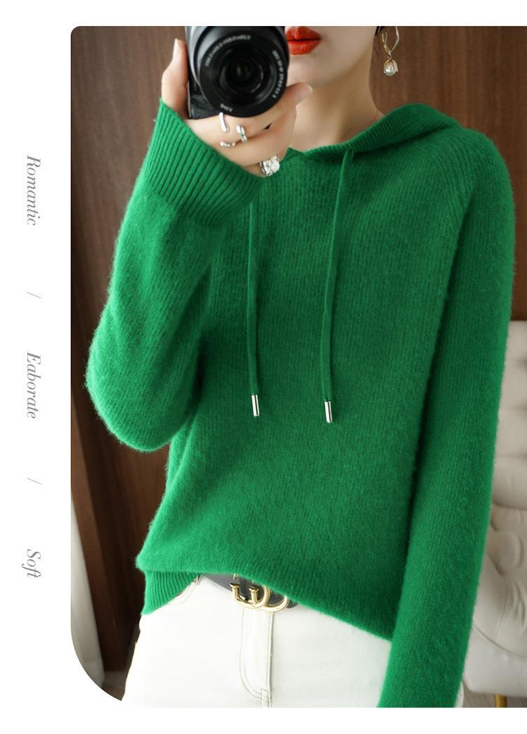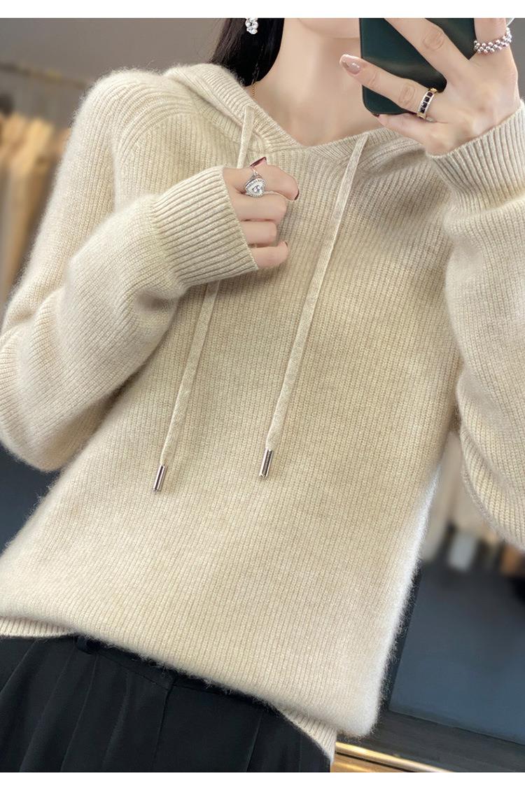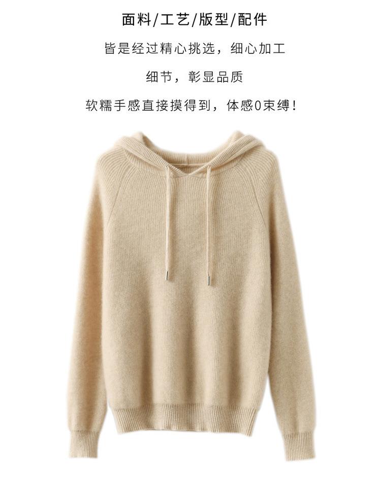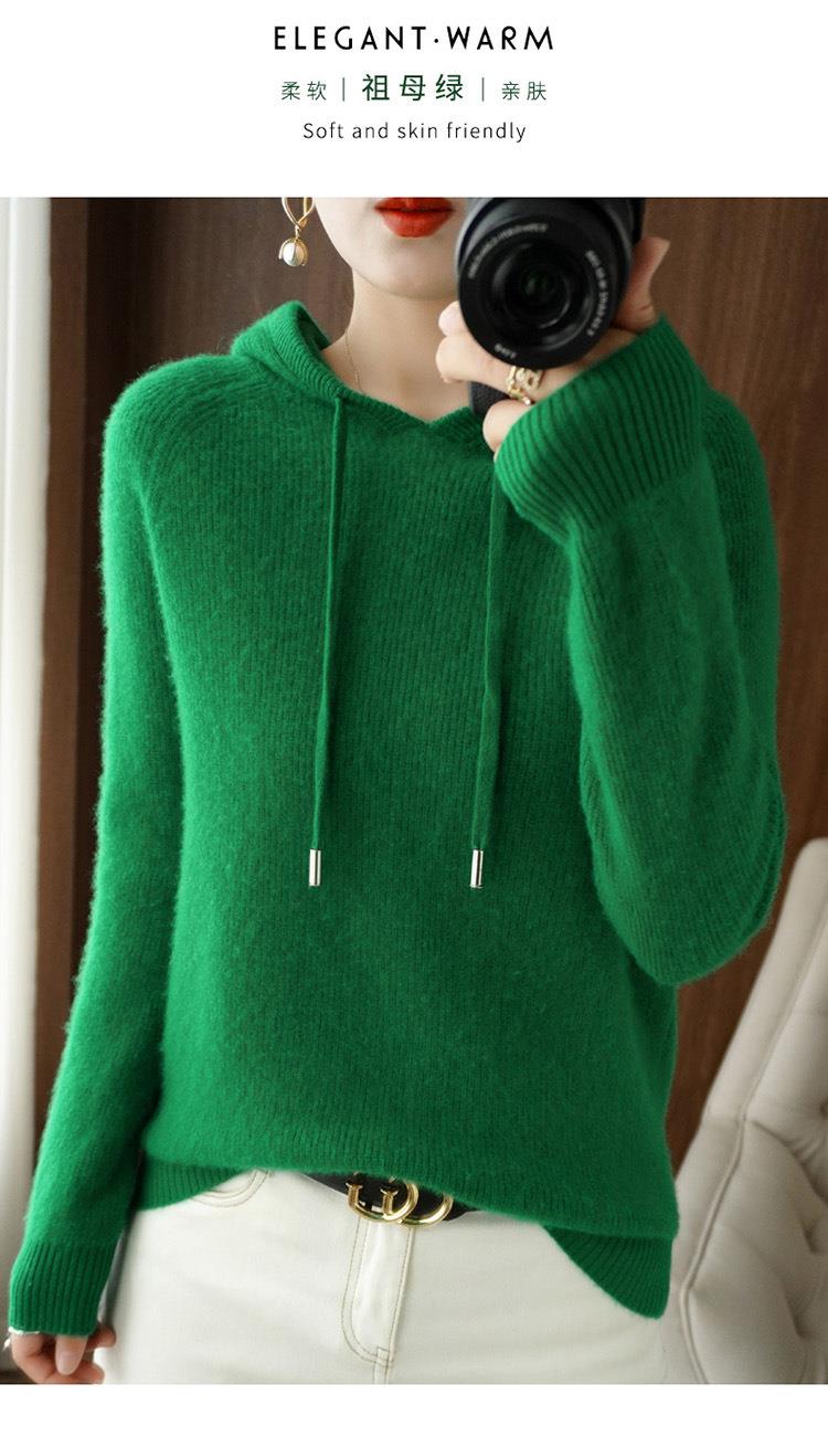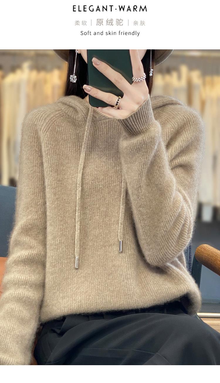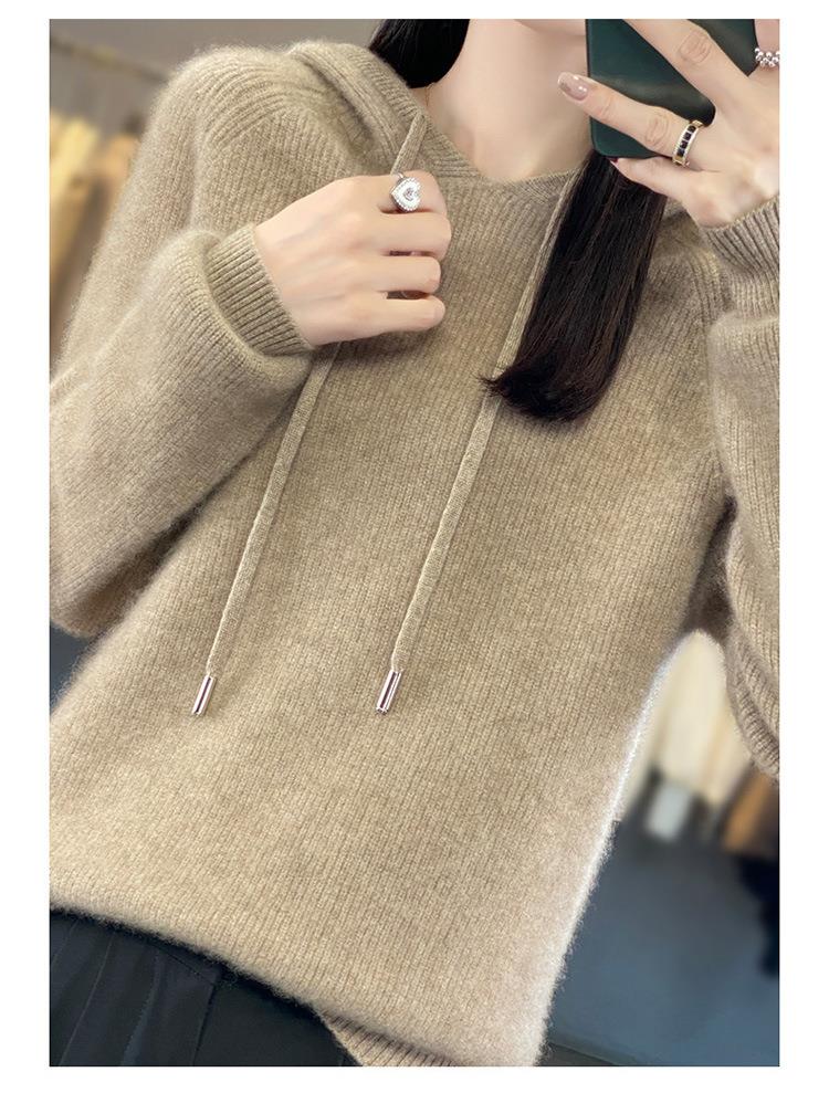 2023年秋冬新款韩版女士连帽长袖针织衫女士外地套头纯色针织帽衫