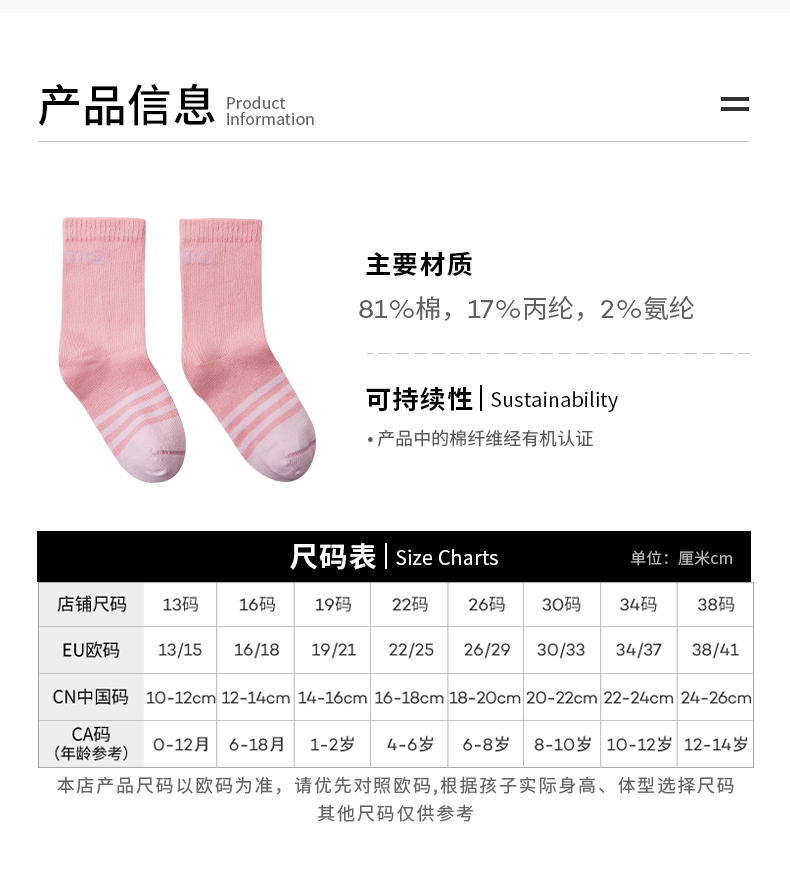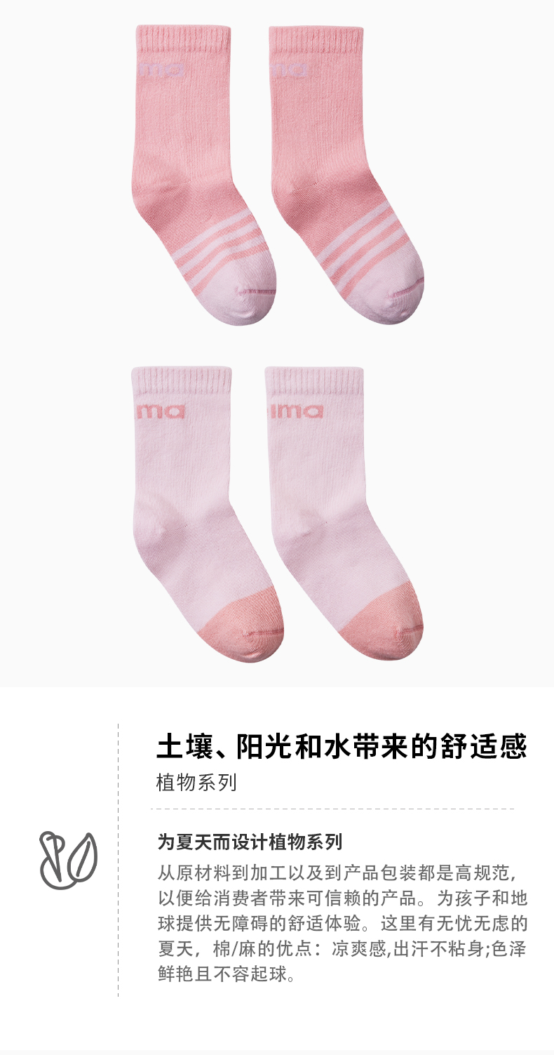 reima男女儿童大童袜子春夏新款透气保暖休闲洋气两双装短袜