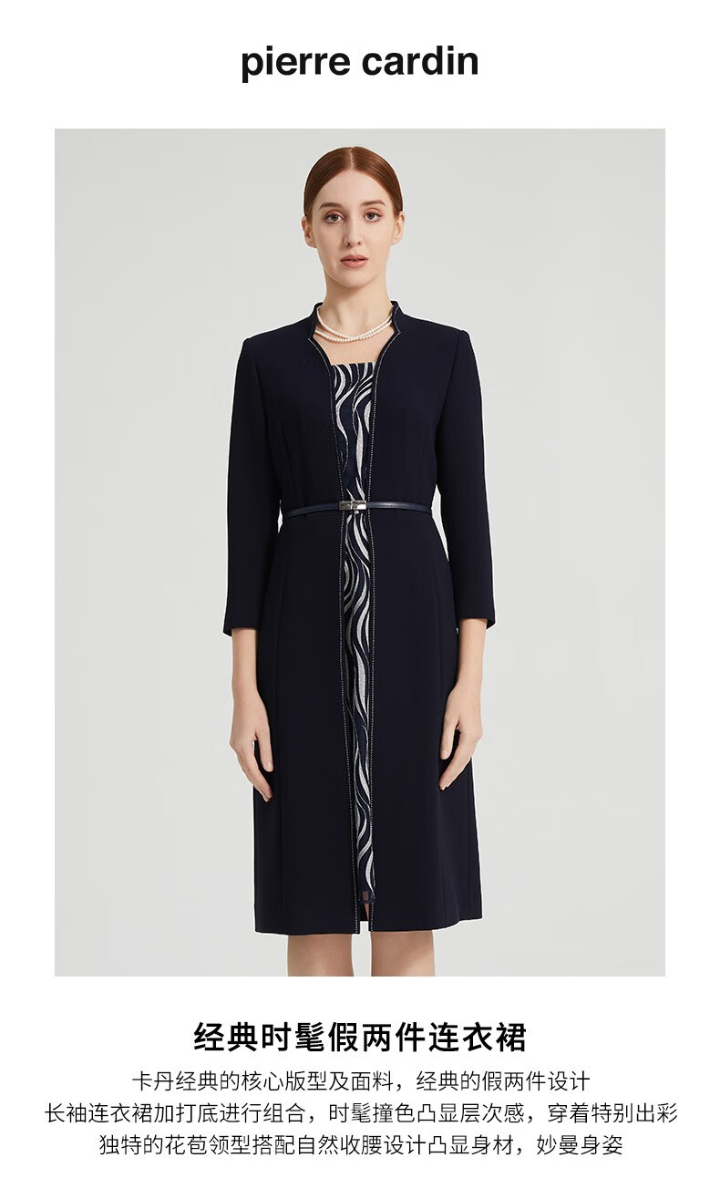 皮尔卡丹女装春季新款时尚假两件长袖连衣裙P2197E2050N3