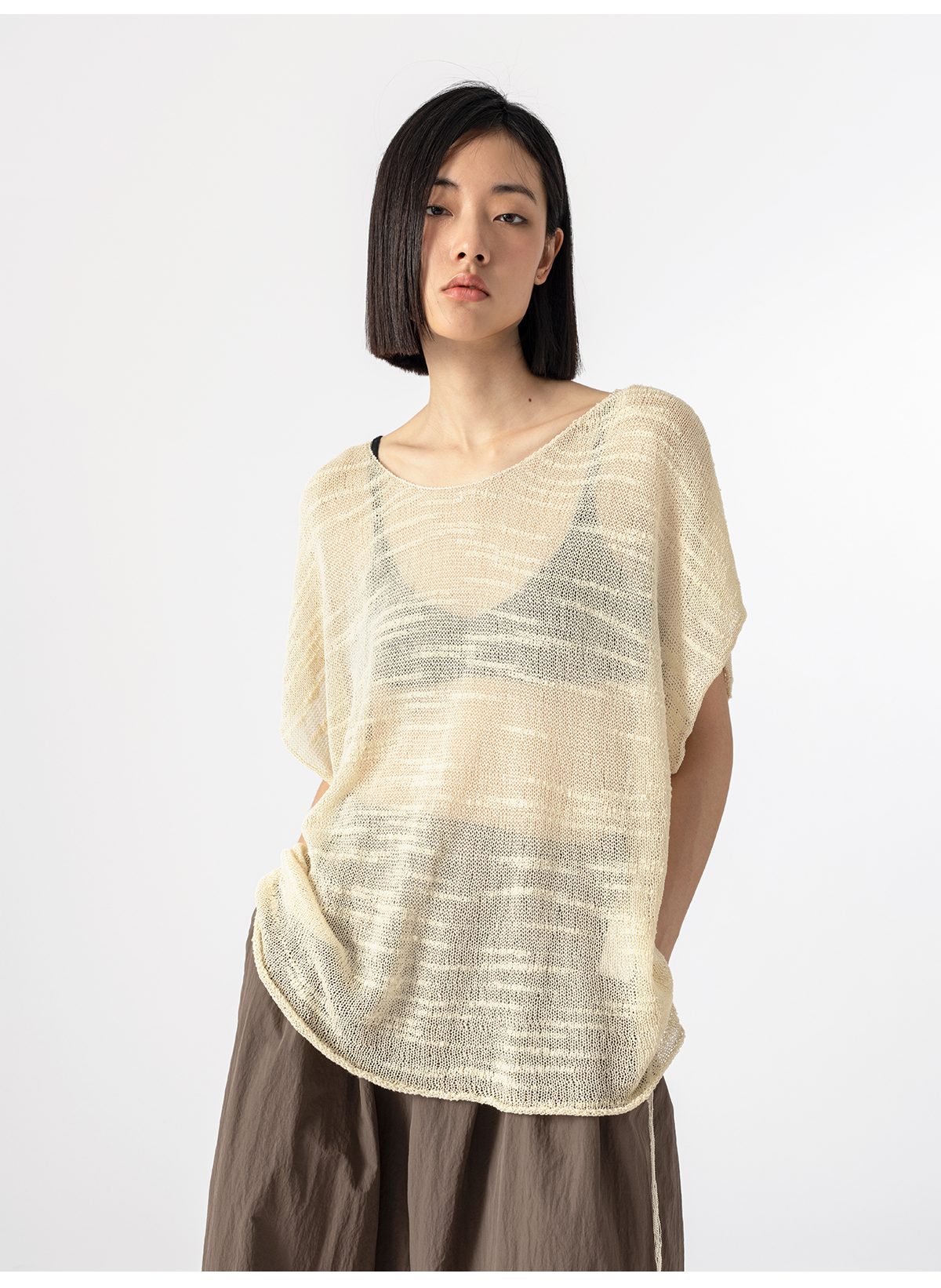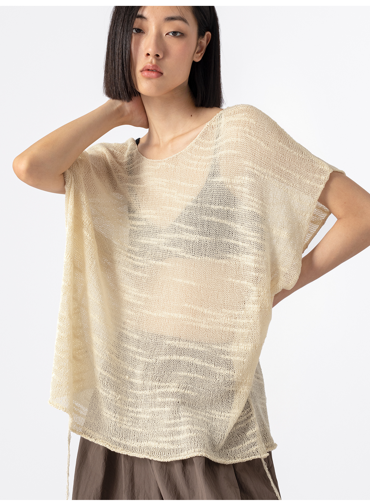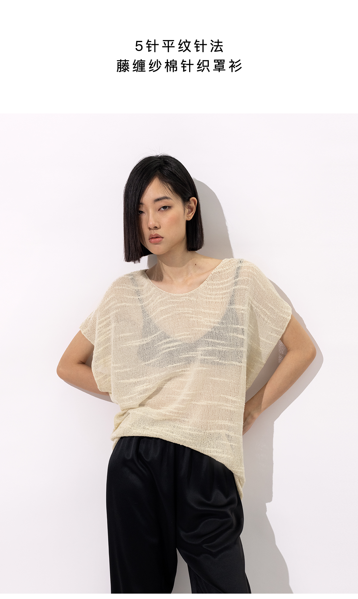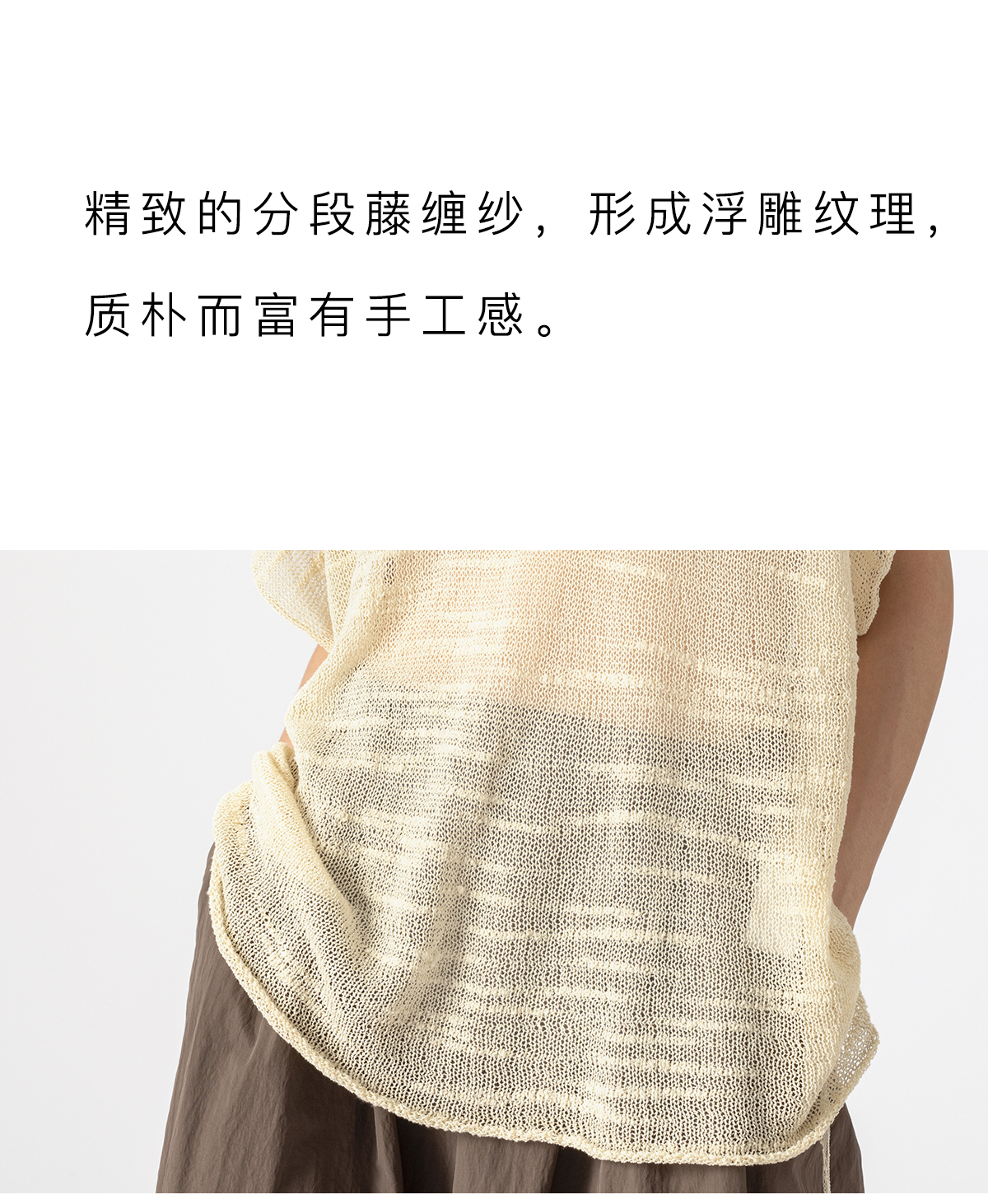 322工房手工纹理藤缠纱棉针织罩衫2023夏款镂空透视廓形罩衫B084