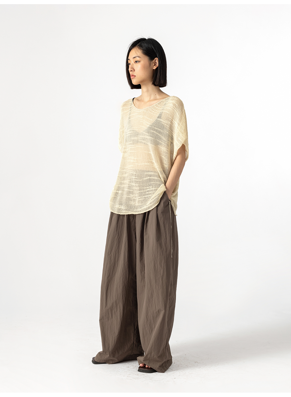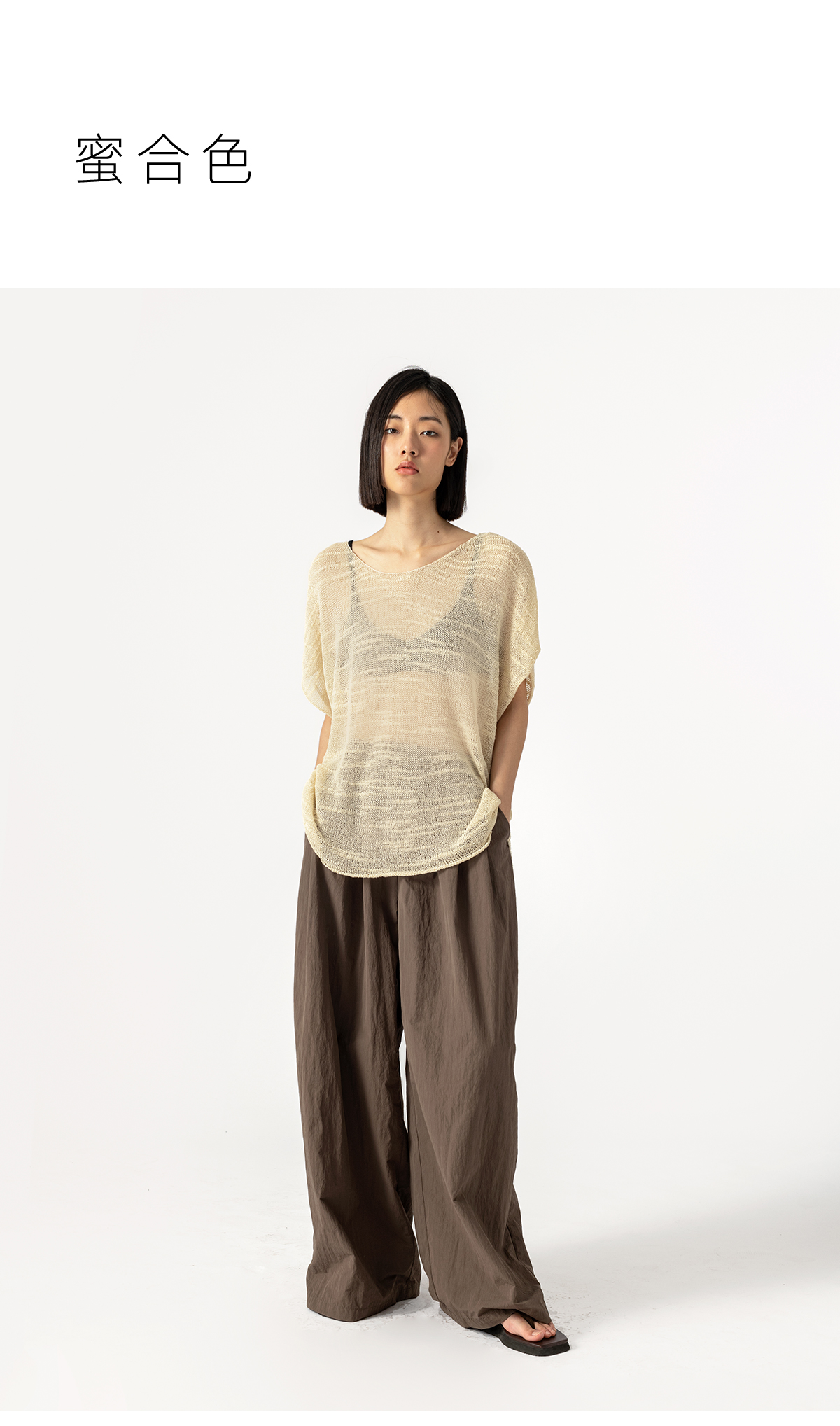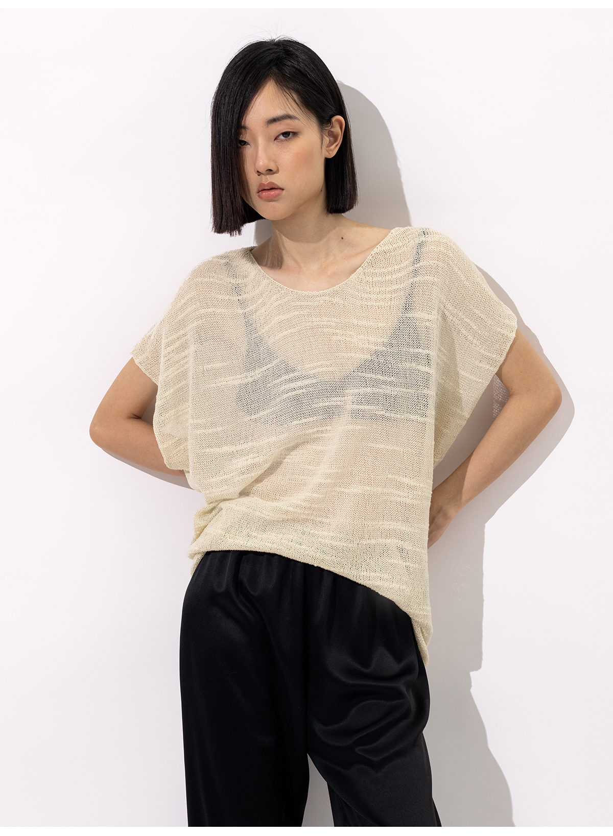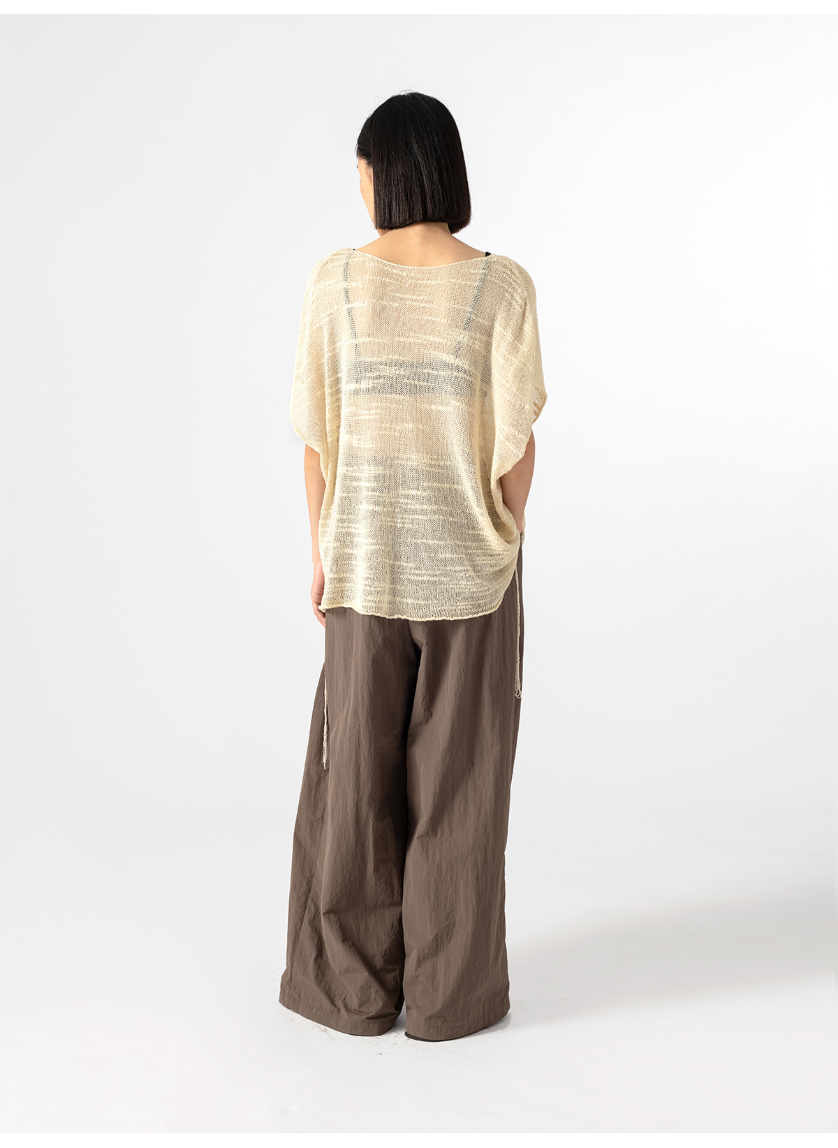 322工房手工纹理藤缠纱棉针织罩衫2023夏款镂空透视廓形罩衫B084