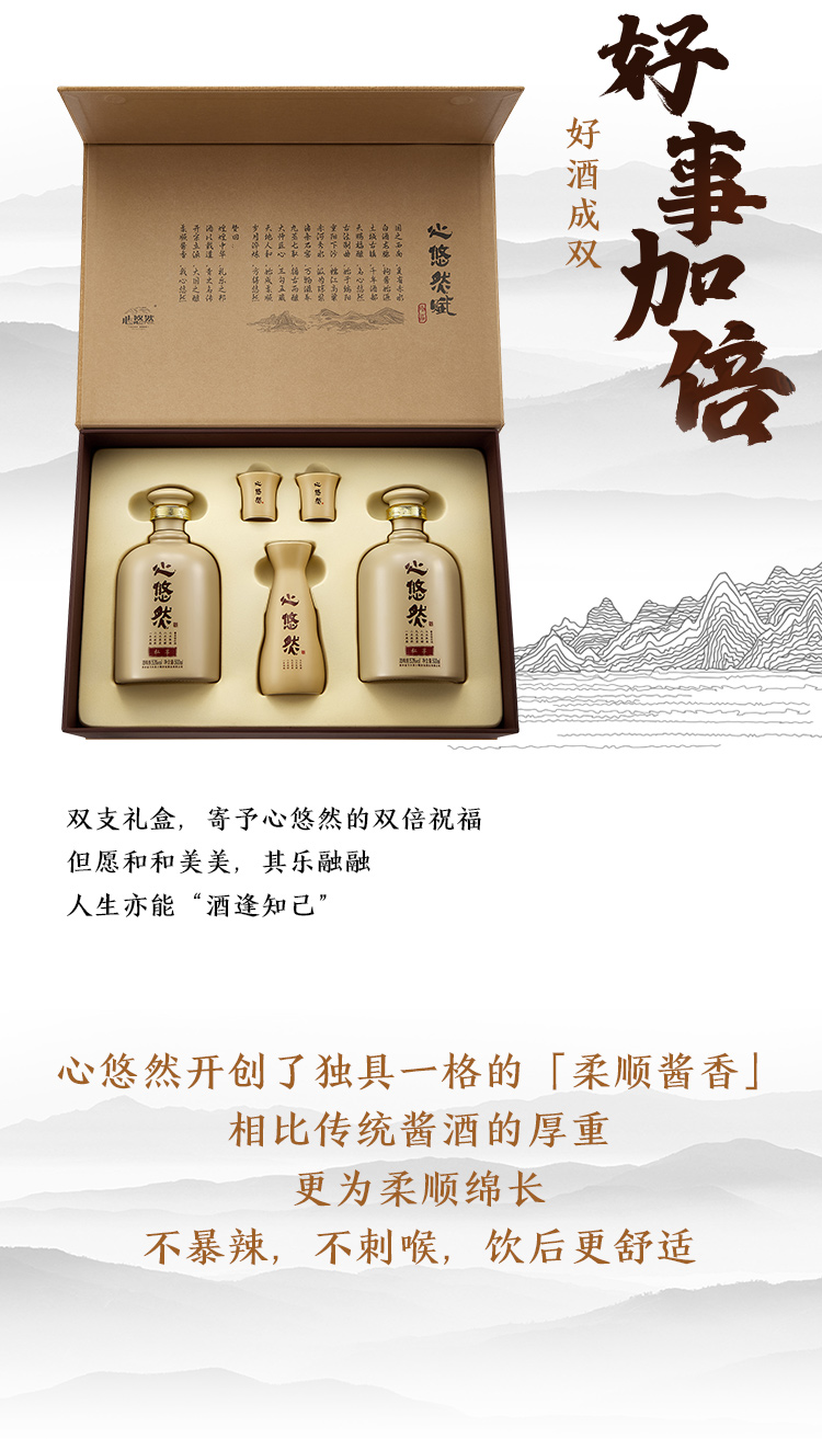 小糊涂仙 心悠然 53度酱香型 (私享双支礼盒) 国产白酒 高端礼盒 酒礼盒 53度 500mL 2瓶