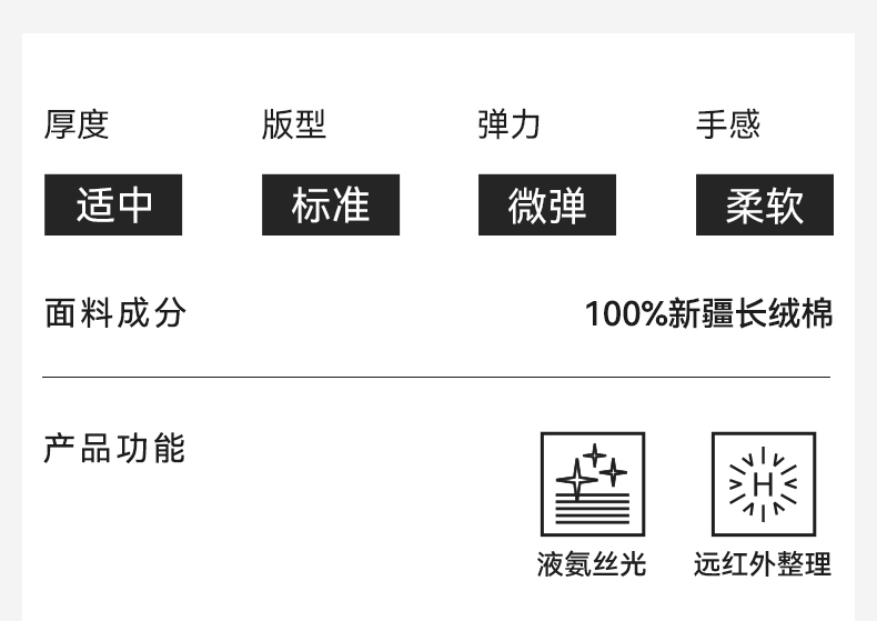 十如仕100%新疆长绒棉拒水拒油拒污黑科技柔软透气圆领短袖T恤-T17-01