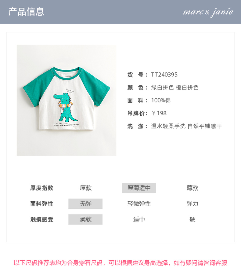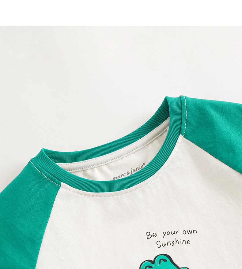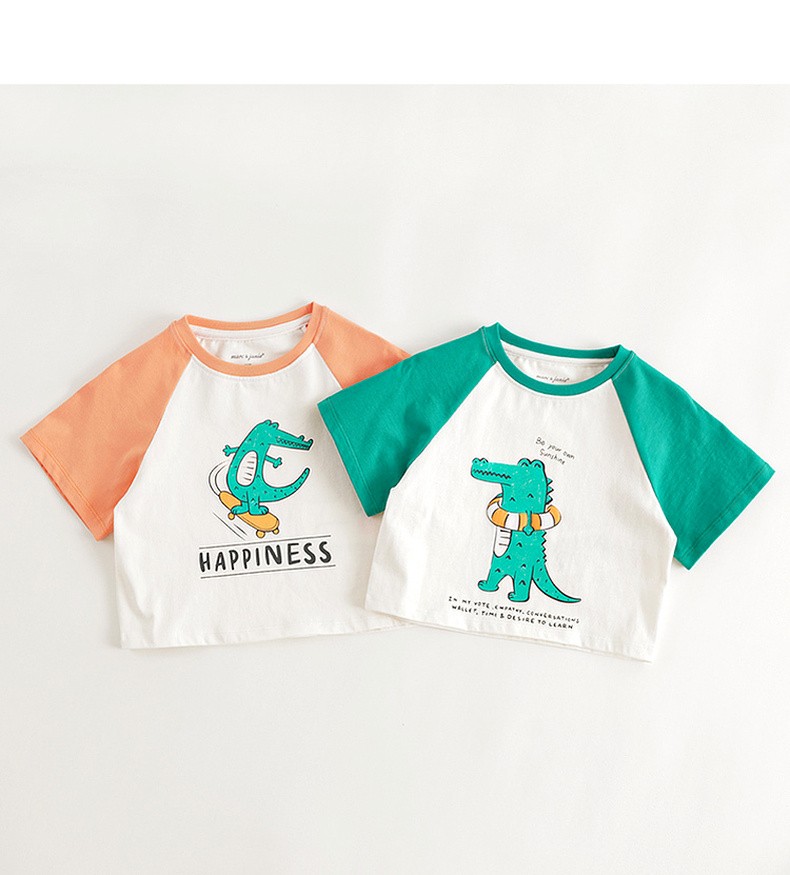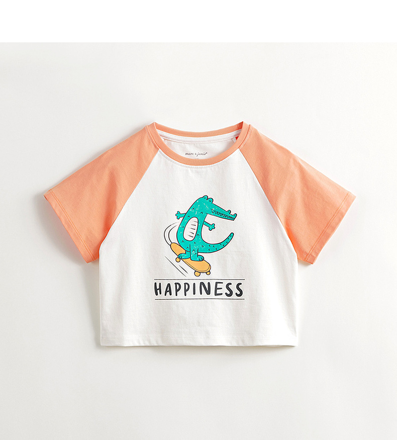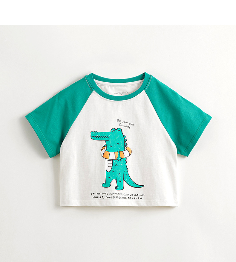 马克珍妮男童小鳄鱼撞色插肩短袖T恤儿童纯棉上衣夏装新款240395