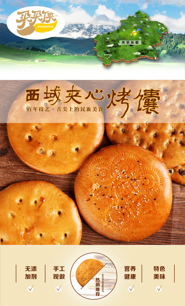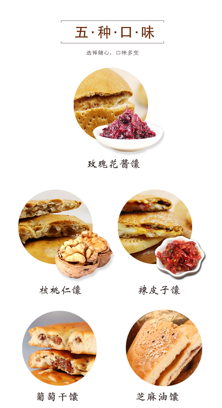【产品特点】新疆传统烤馕工艺,特色馅料,口感酥脆不硬,现烤现发,30天短保,100g/个大小合适,5种口味任选,好吃不腻,营养健康,是早餐、下午茶、代餐小零食的明智选择。