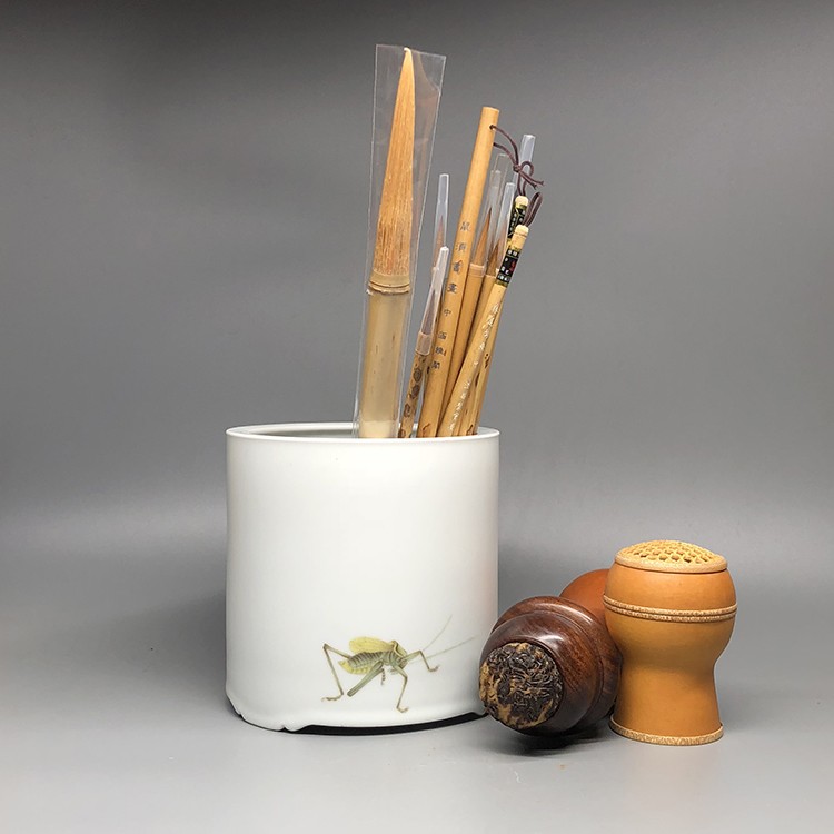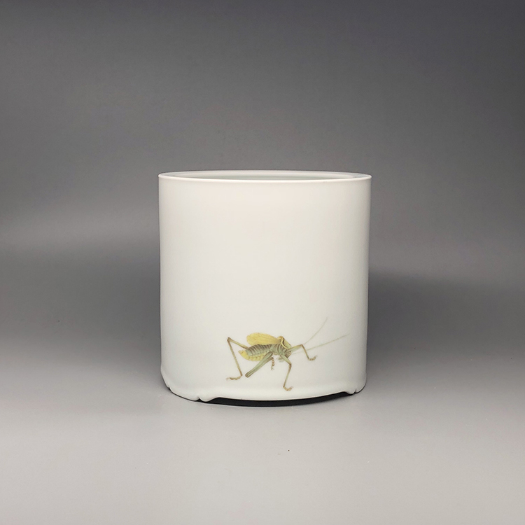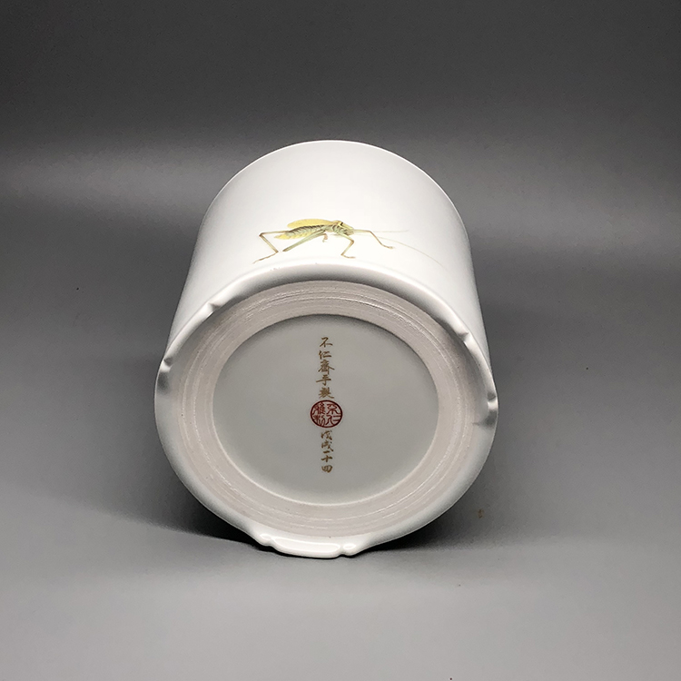 不仁斋 薛继业专款手拉坯粉彩手绘大号笔筒