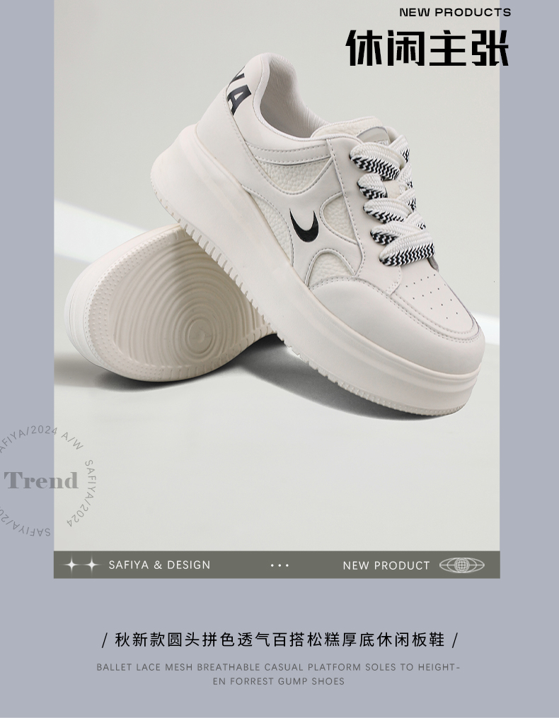 Safiya/索菲娅2024秋 新款圆头拼色透气百搭松糕厚底休闲板鞋 SF43112100