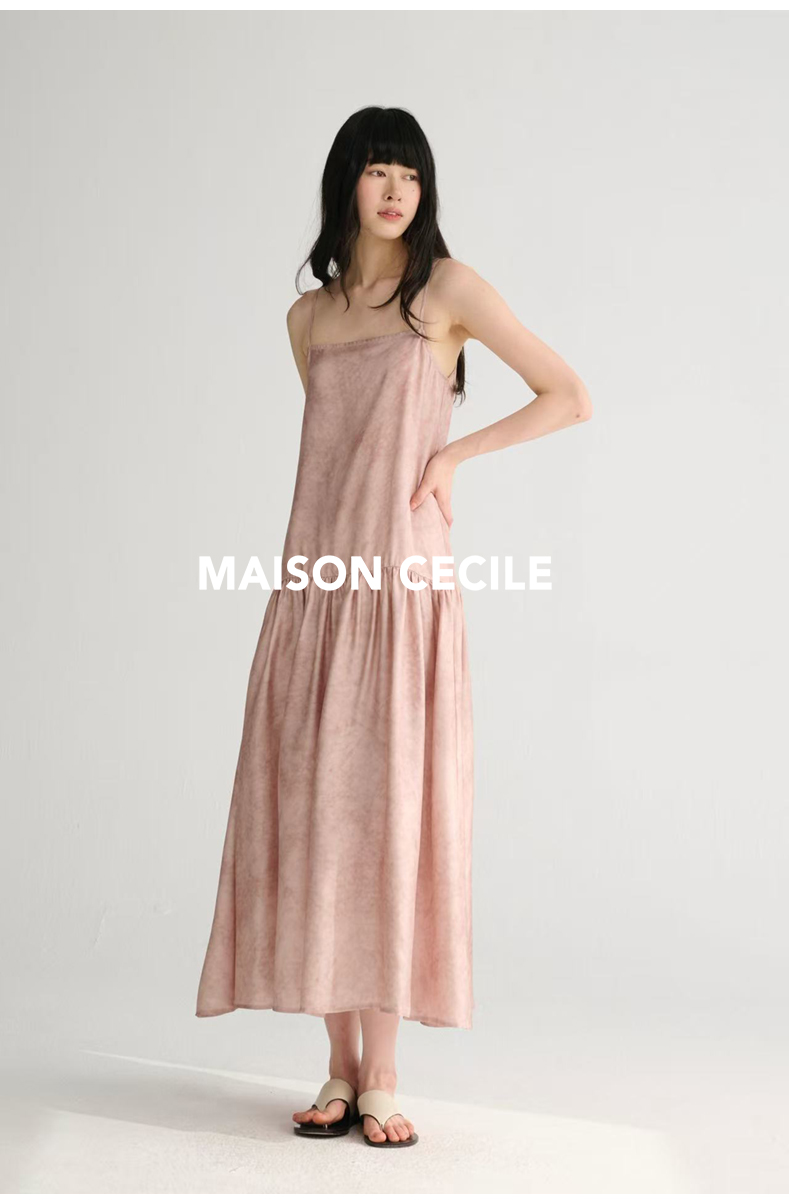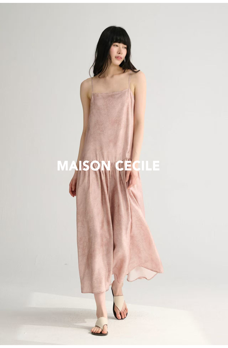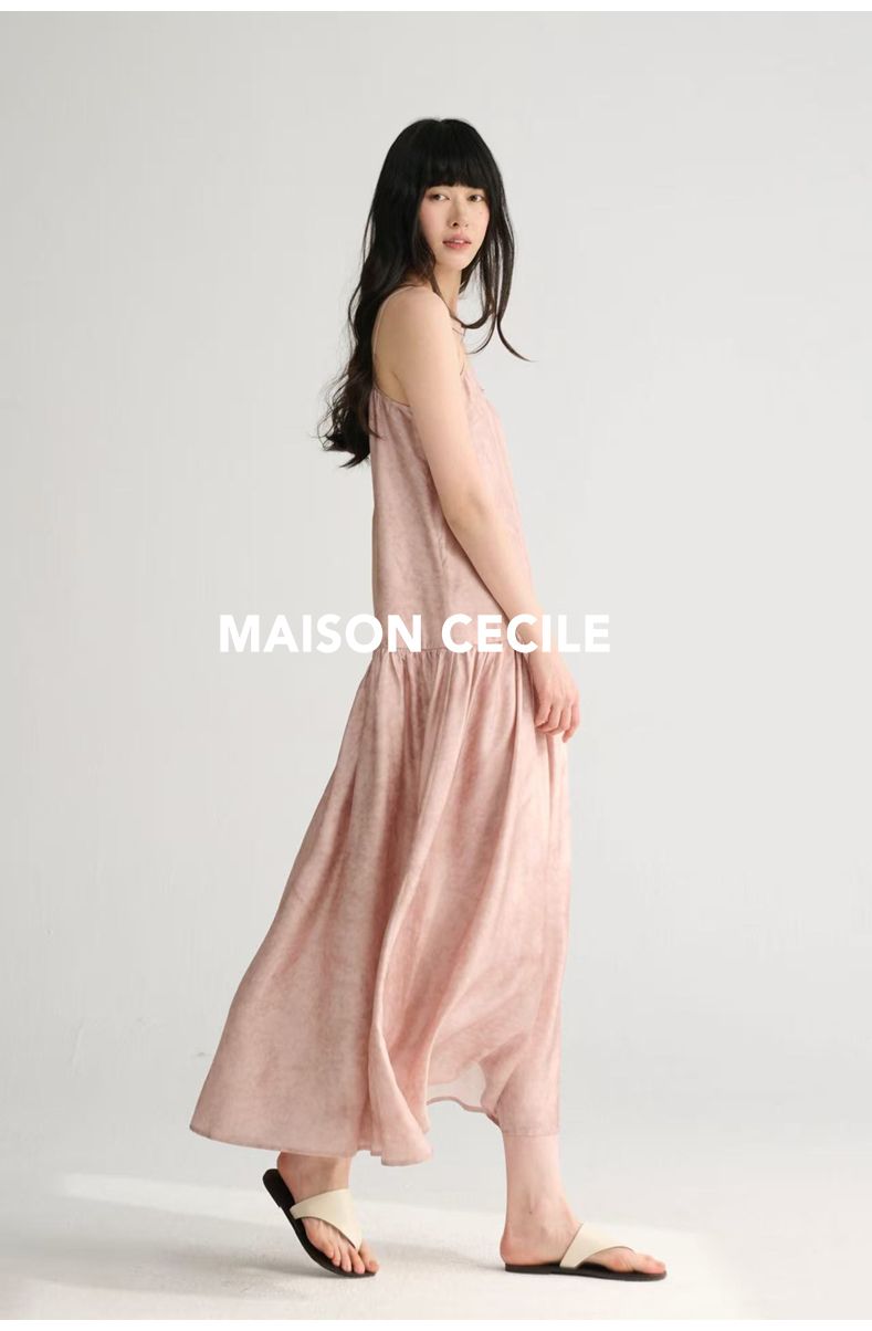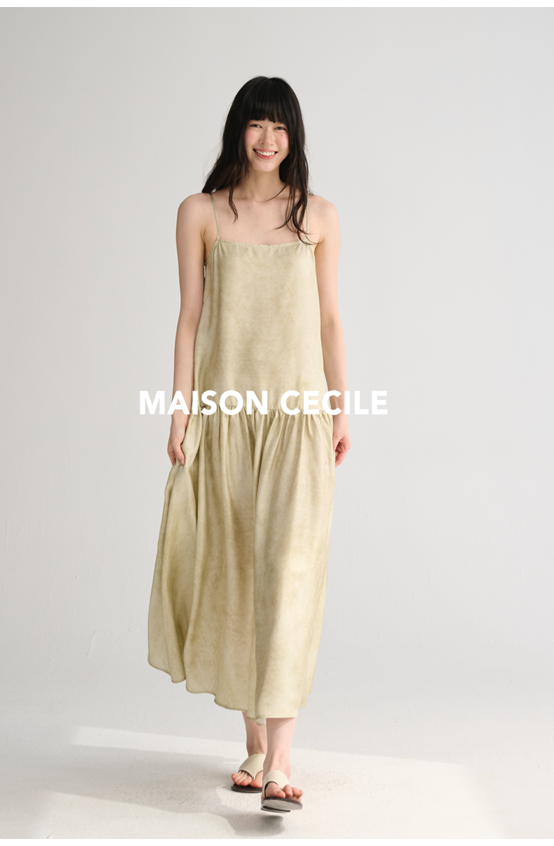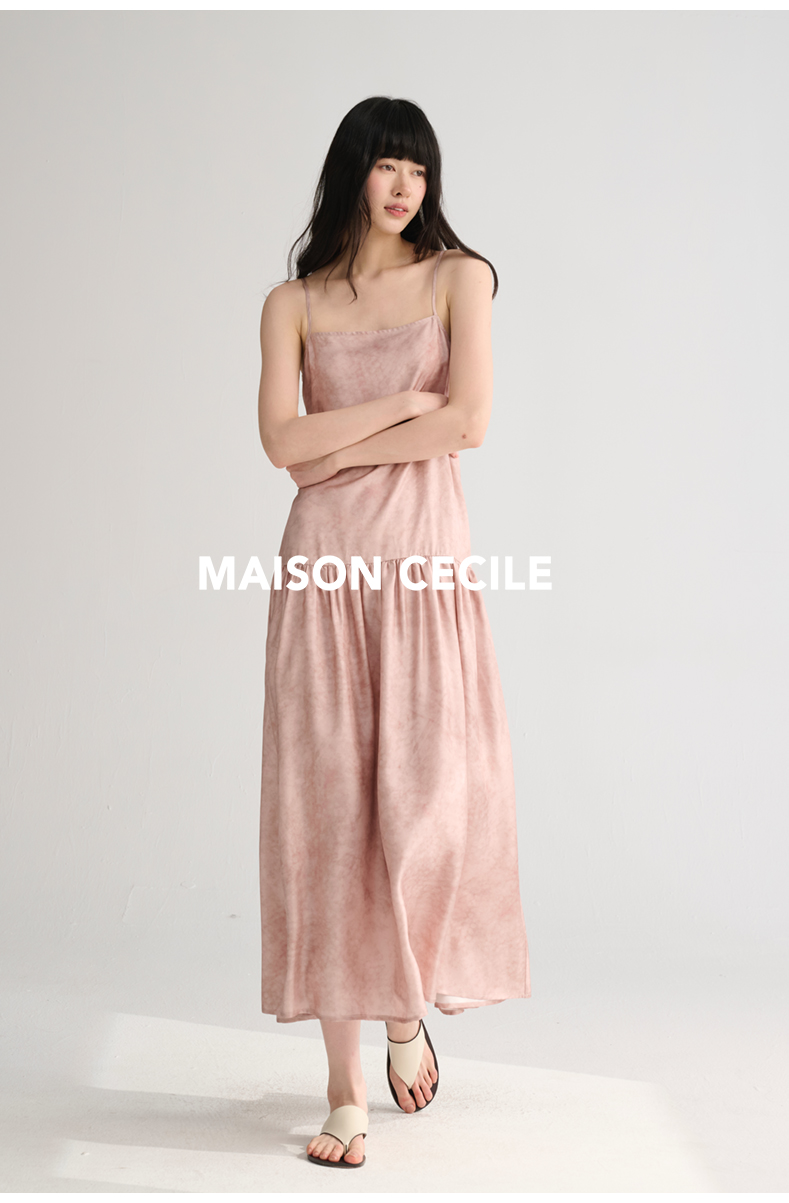 MAISON CECILE 两色印花/桑蚕丝晕染朦胧雾感浪漫飘逸吊带连衣裙