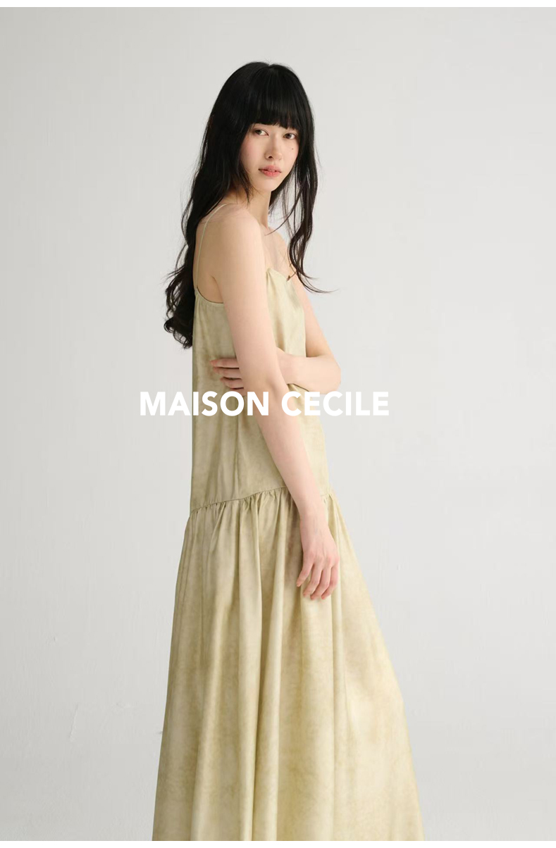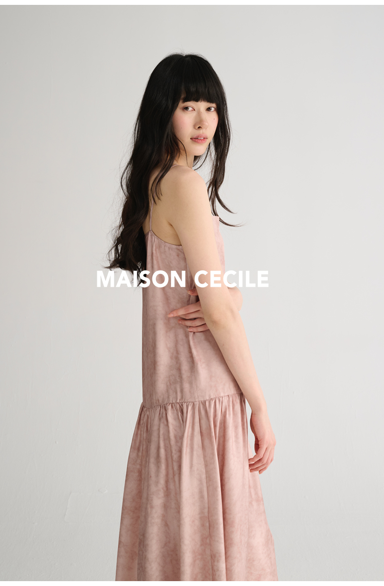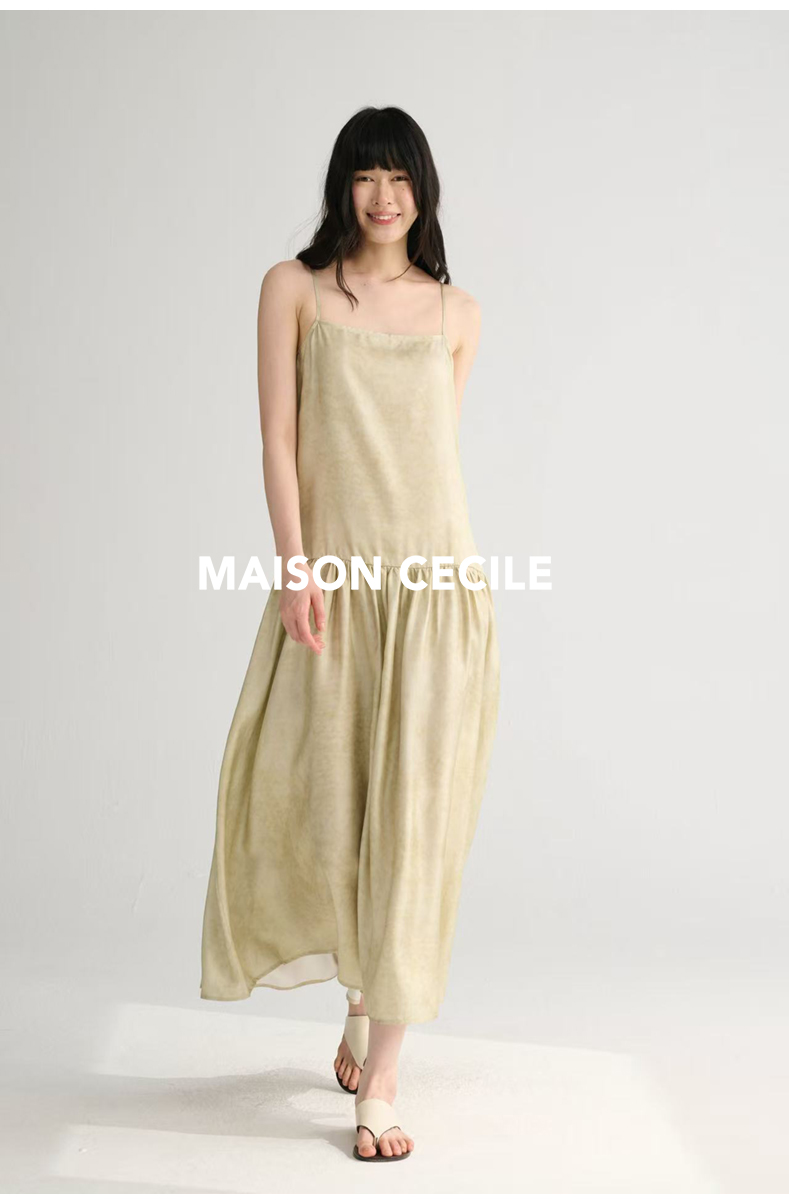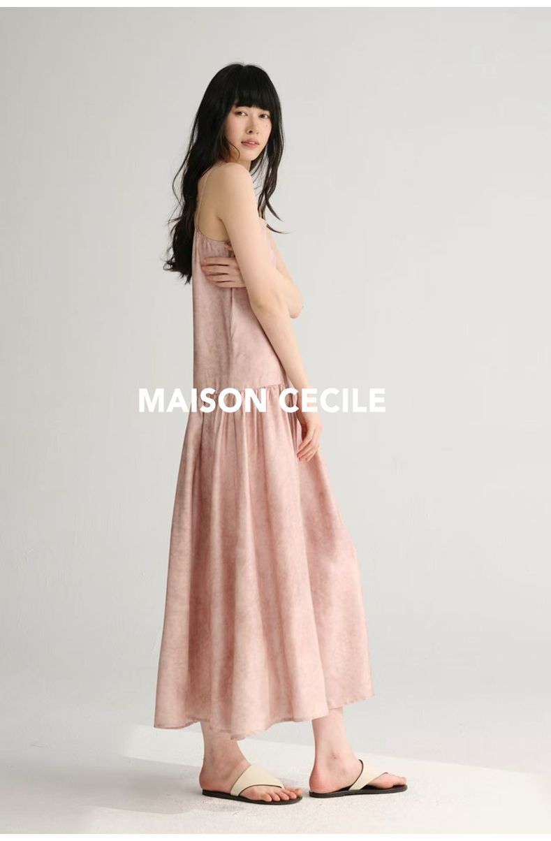MAISON CECILE 两色印花/桑蚕丝晕染朦胧雾感浪漫飘逸吊带连衣裙