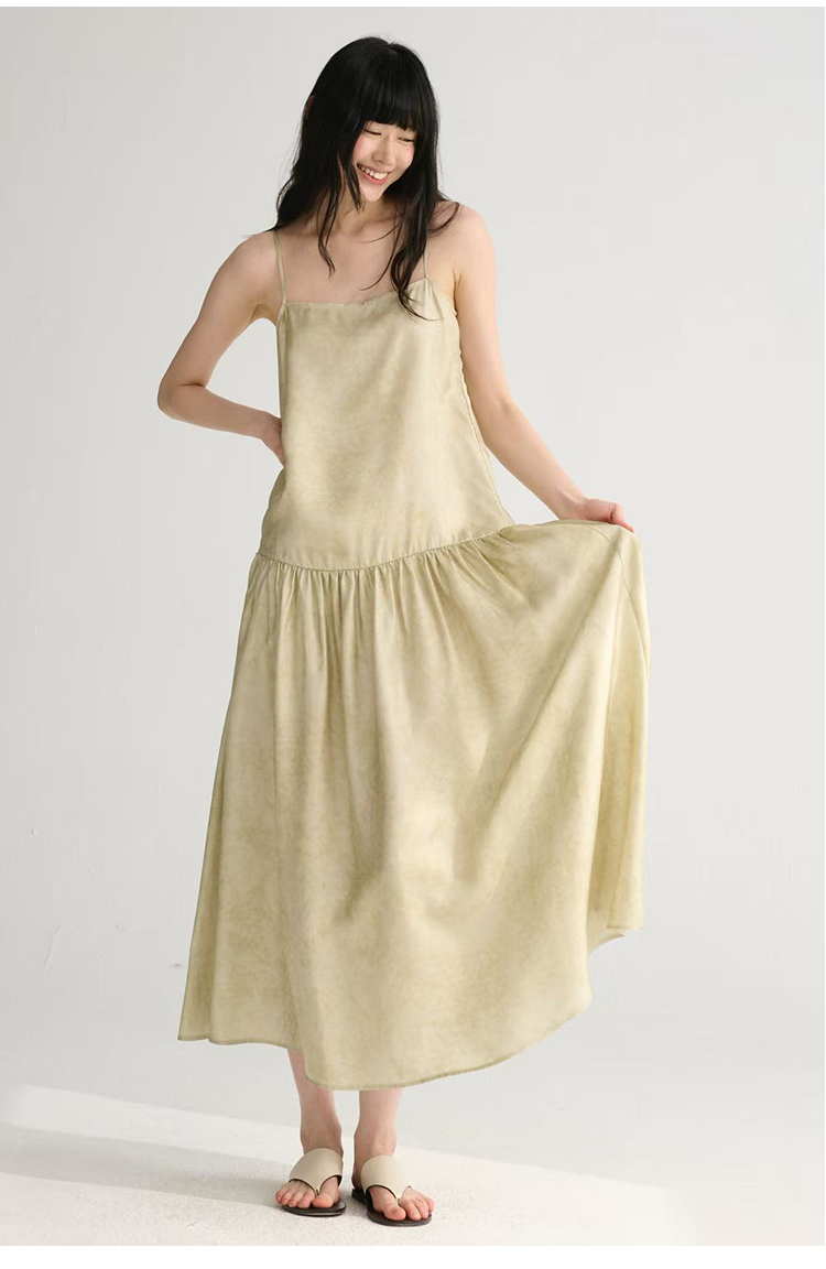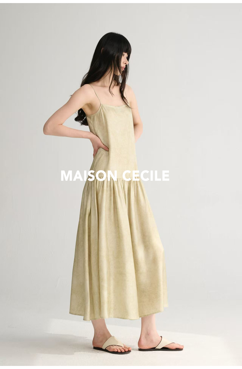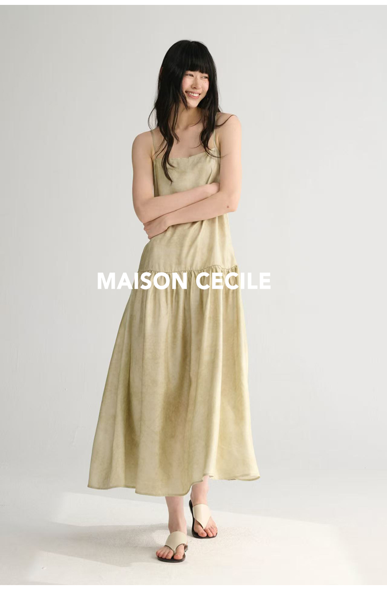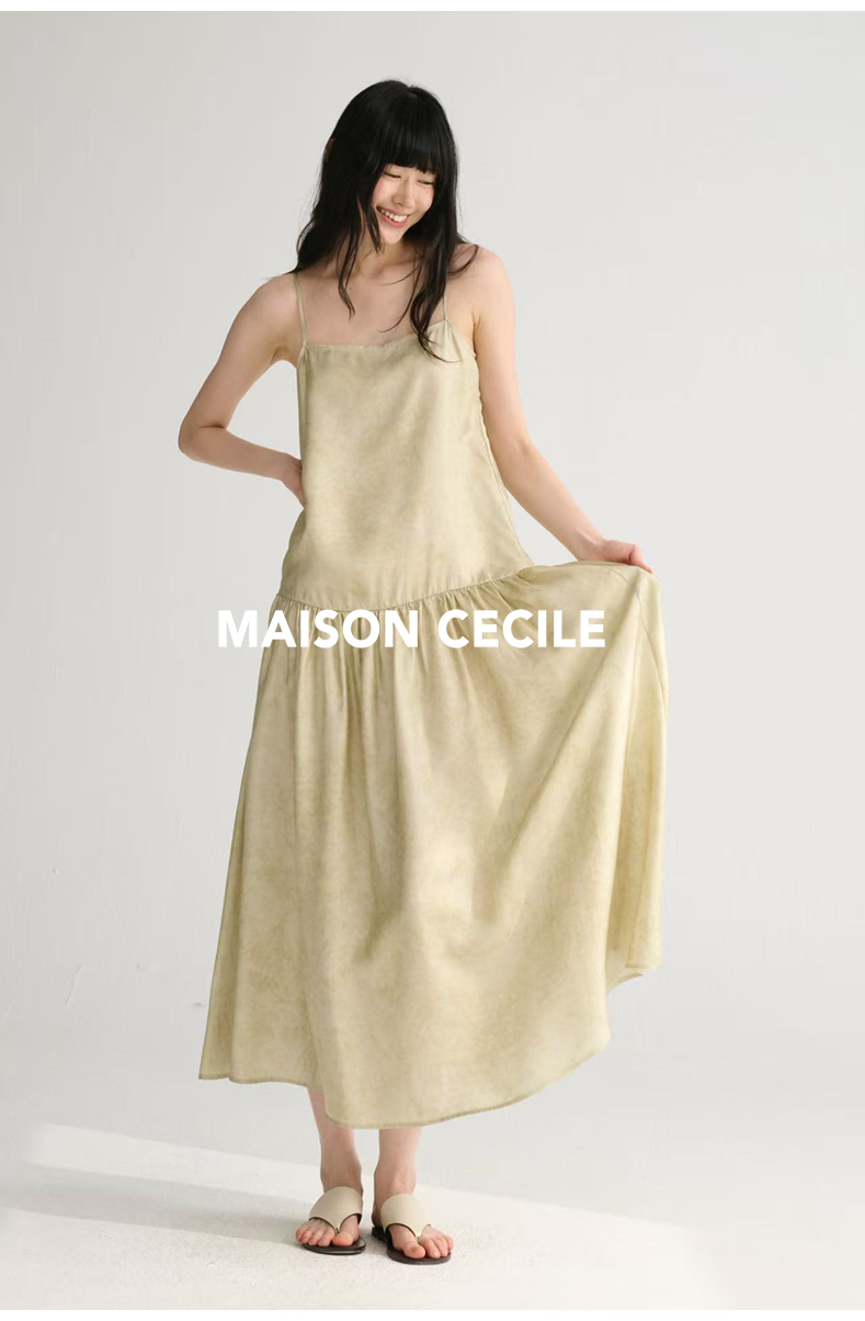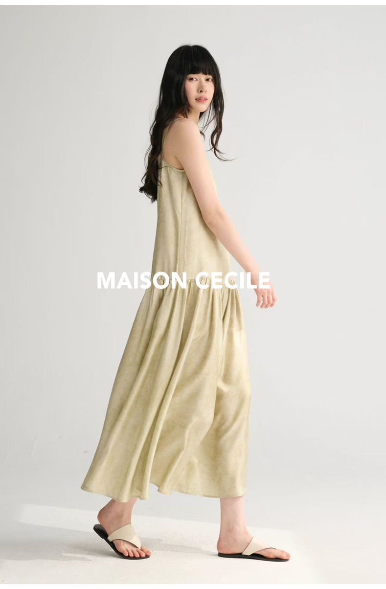 MAISON CECILE 两色印花/桑蚕丝晕染朦胧雾感浪漫飘逸吊带连衣裙