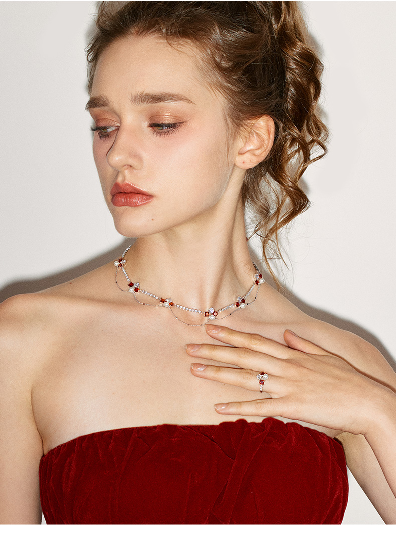 ZEGL设计师新年系列红色流苏项链女轻奢小众高级感choker锁骨颈链