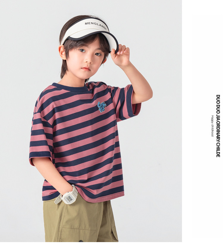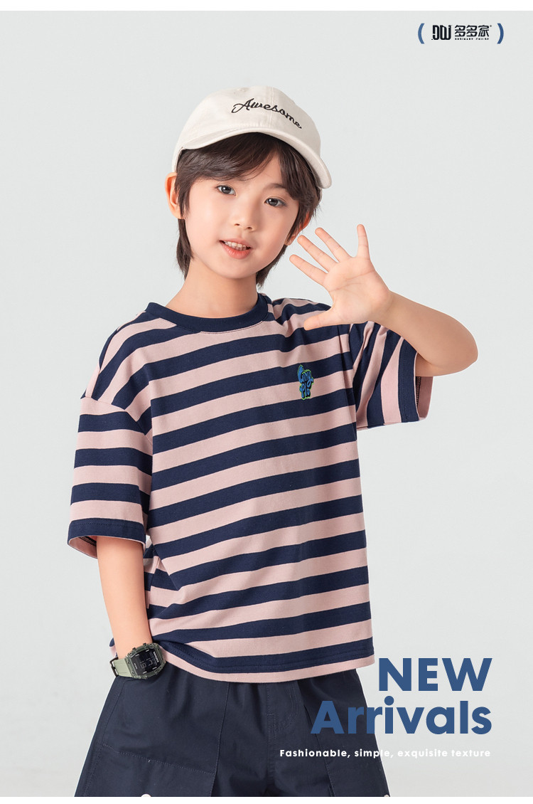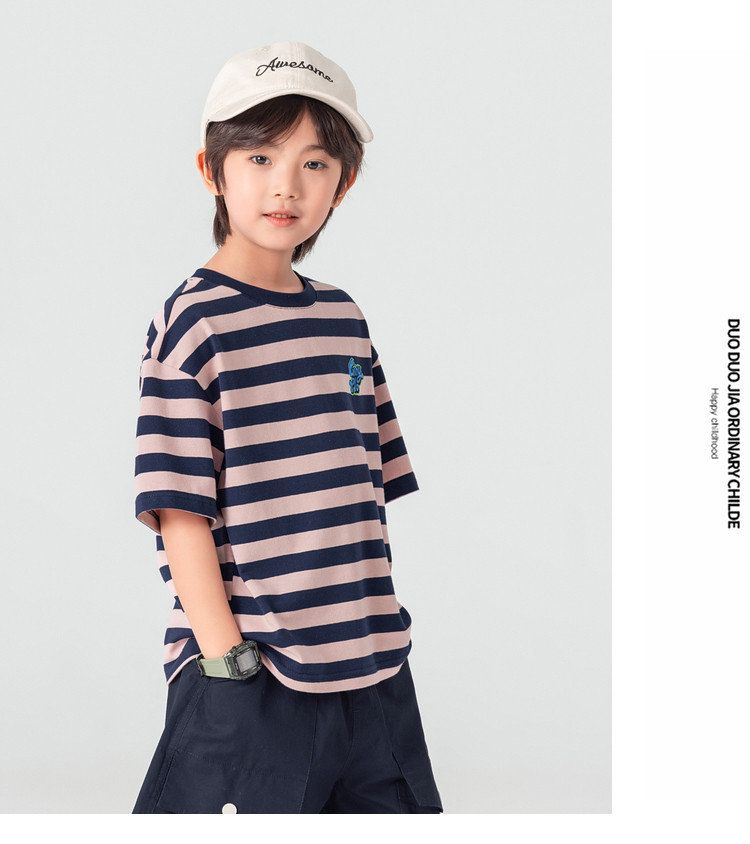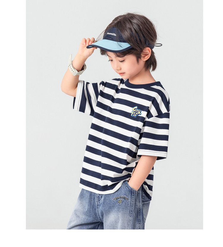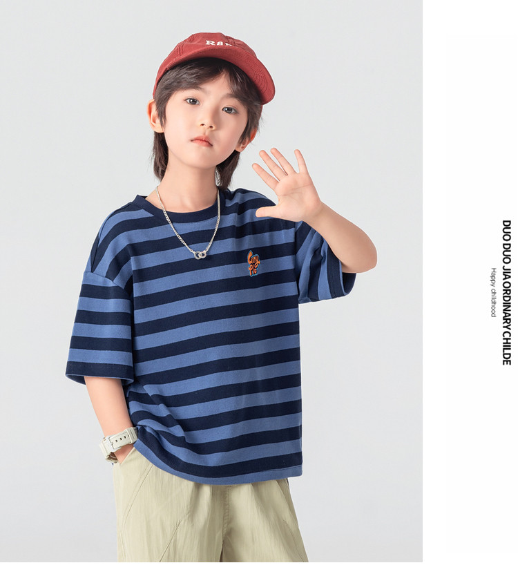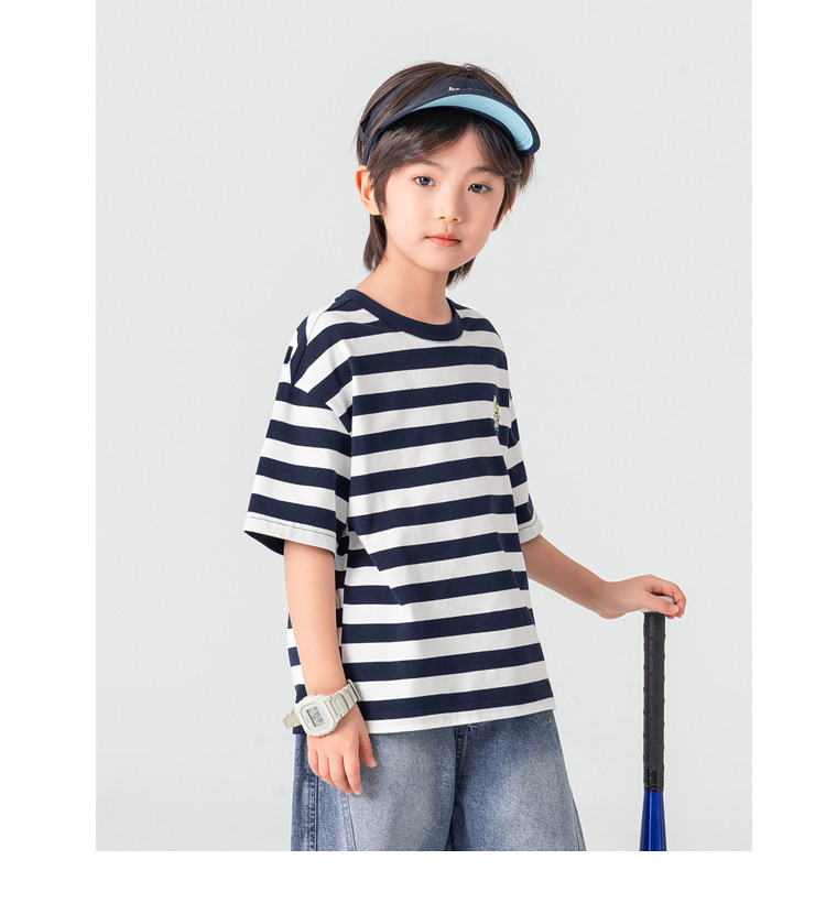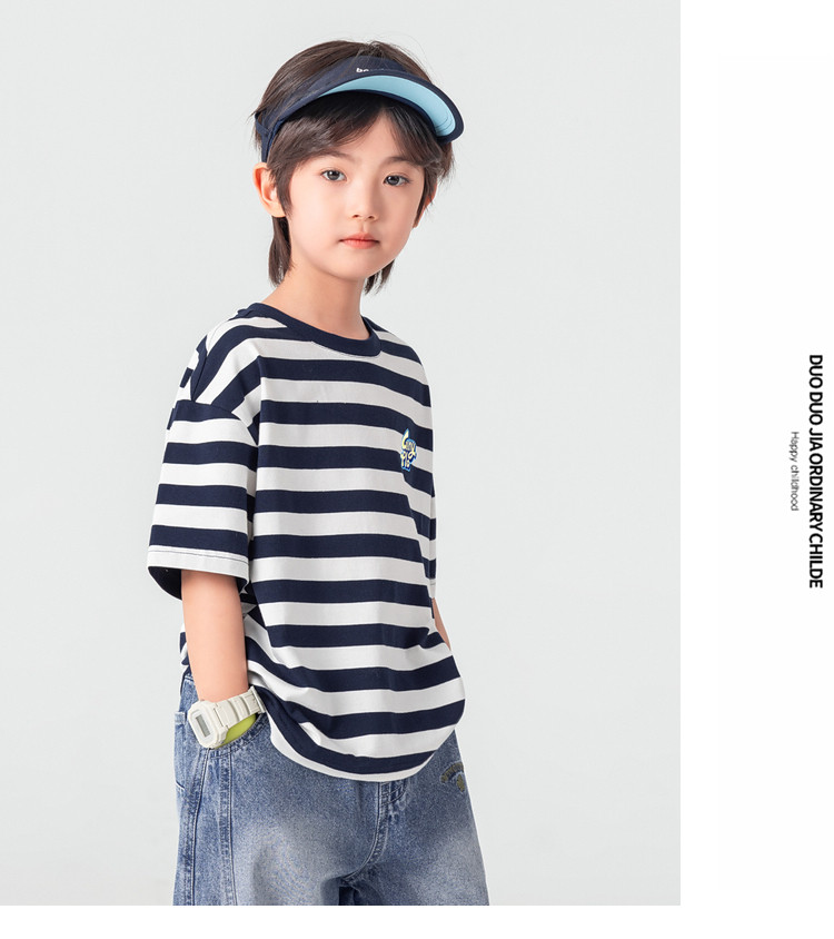 【件件底价,童装双倍积分】多多家男童T恤短袖2026夏季新款儿童条纹半袖夏装中大童打底上衣11812