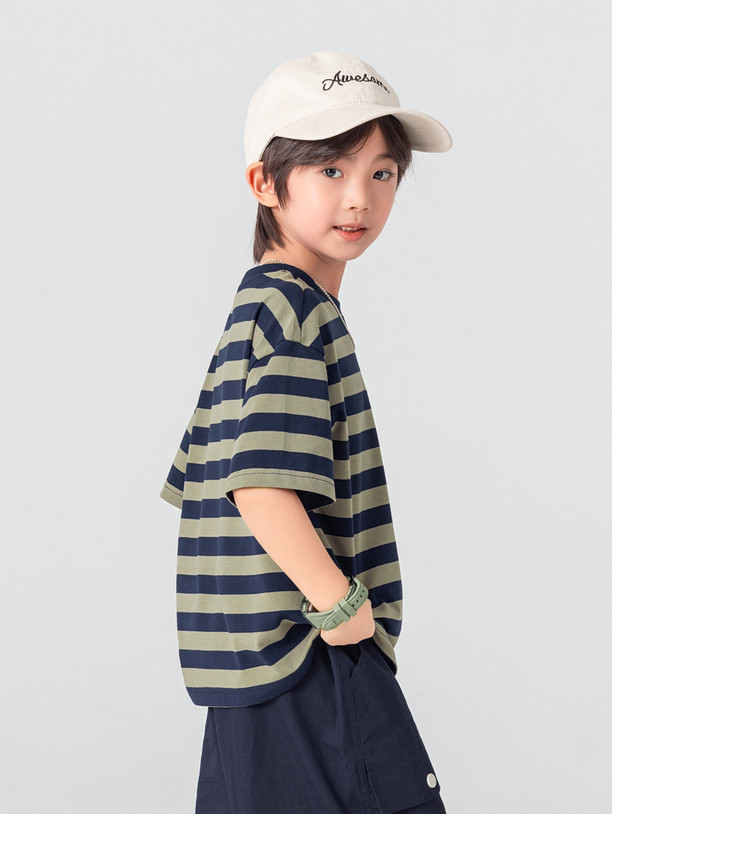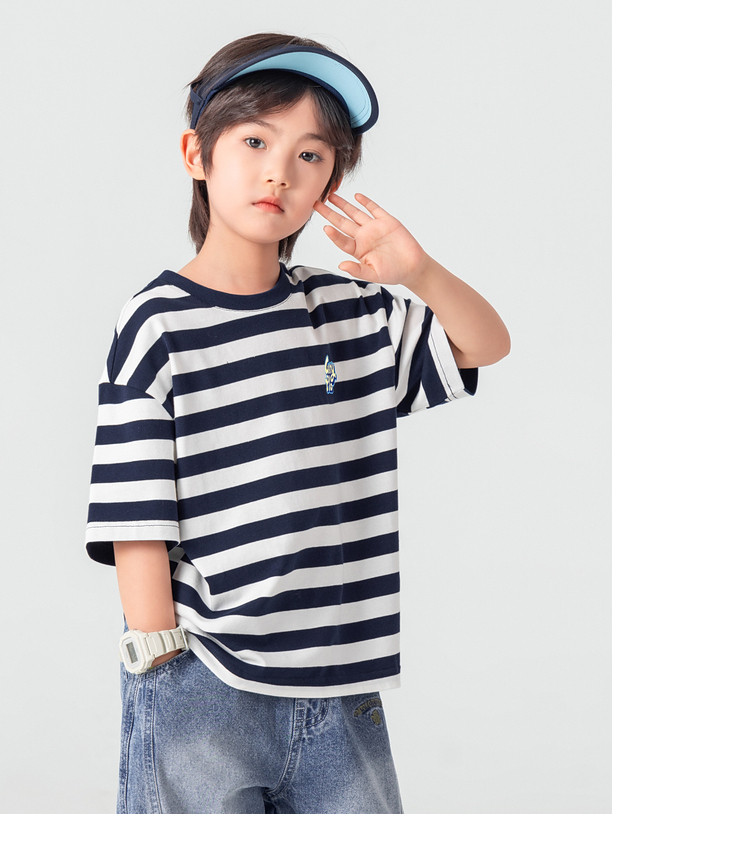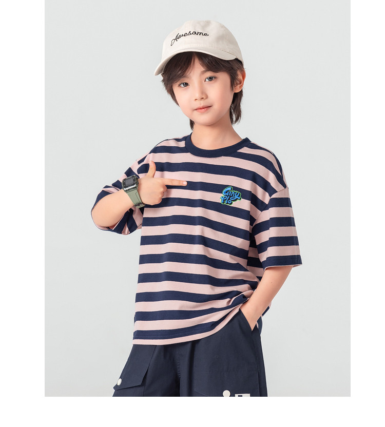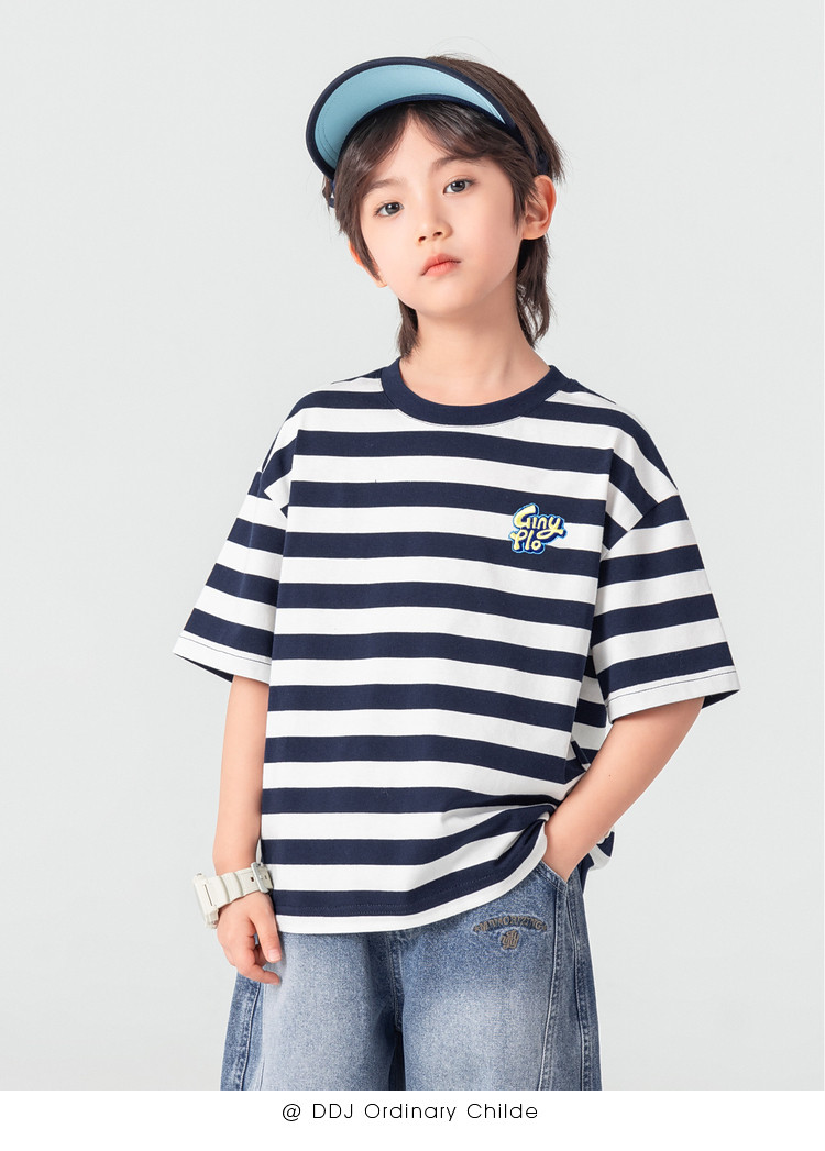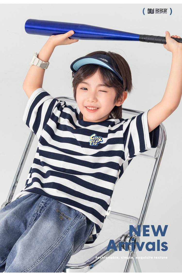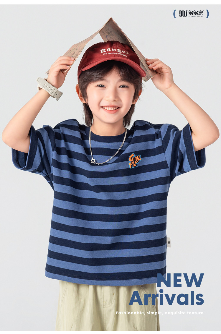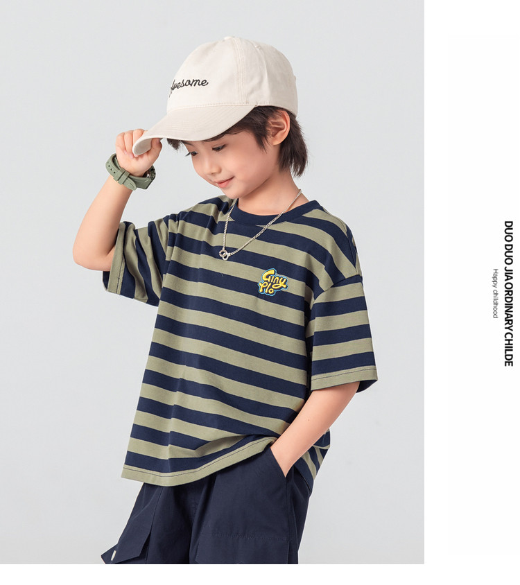 【件件底价,童装双倍积分】多多家男童T恤短袖2026夏季新款儿童条纹半袖夏装中大童打底上衣11812