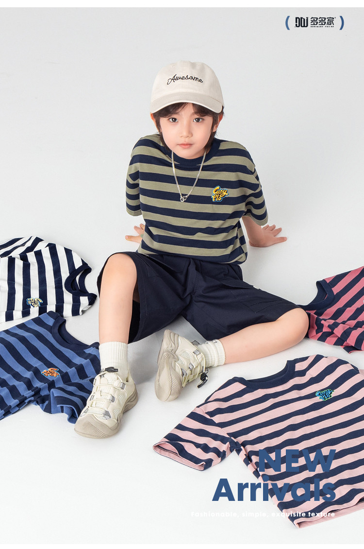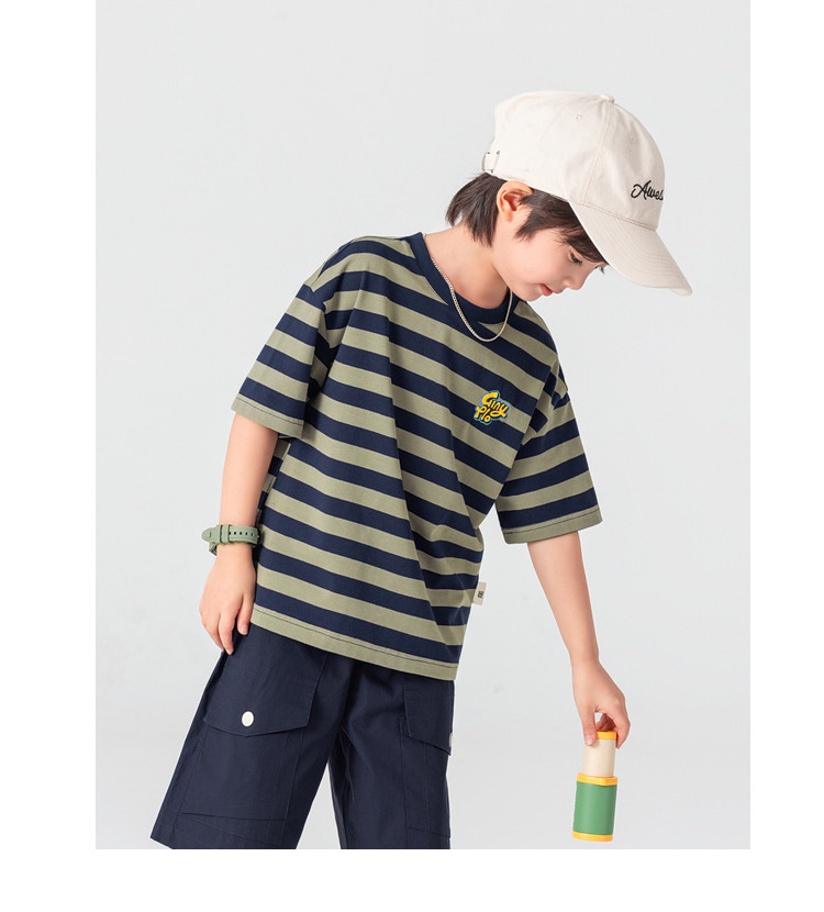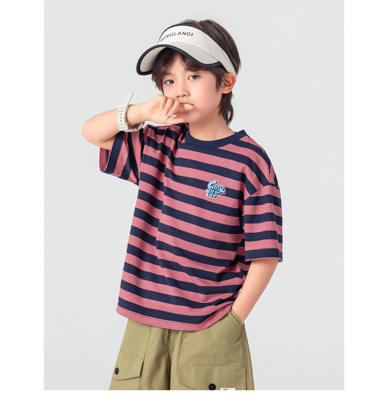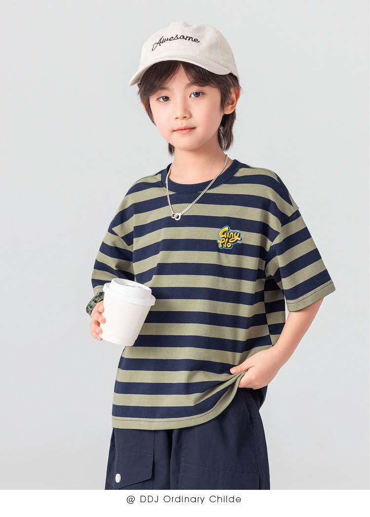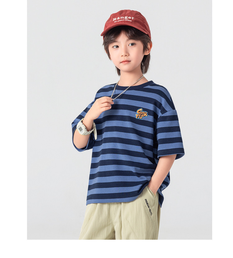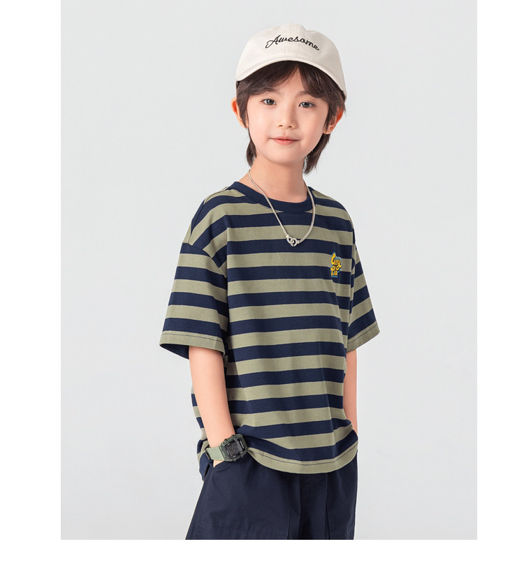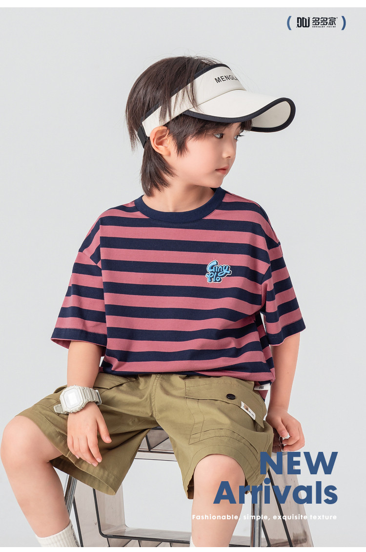 【件件底价,童装双倍积分】多多家男童T恤短袖2026夏季新款儿童条纹半袖夏装中大童打底上衣11812