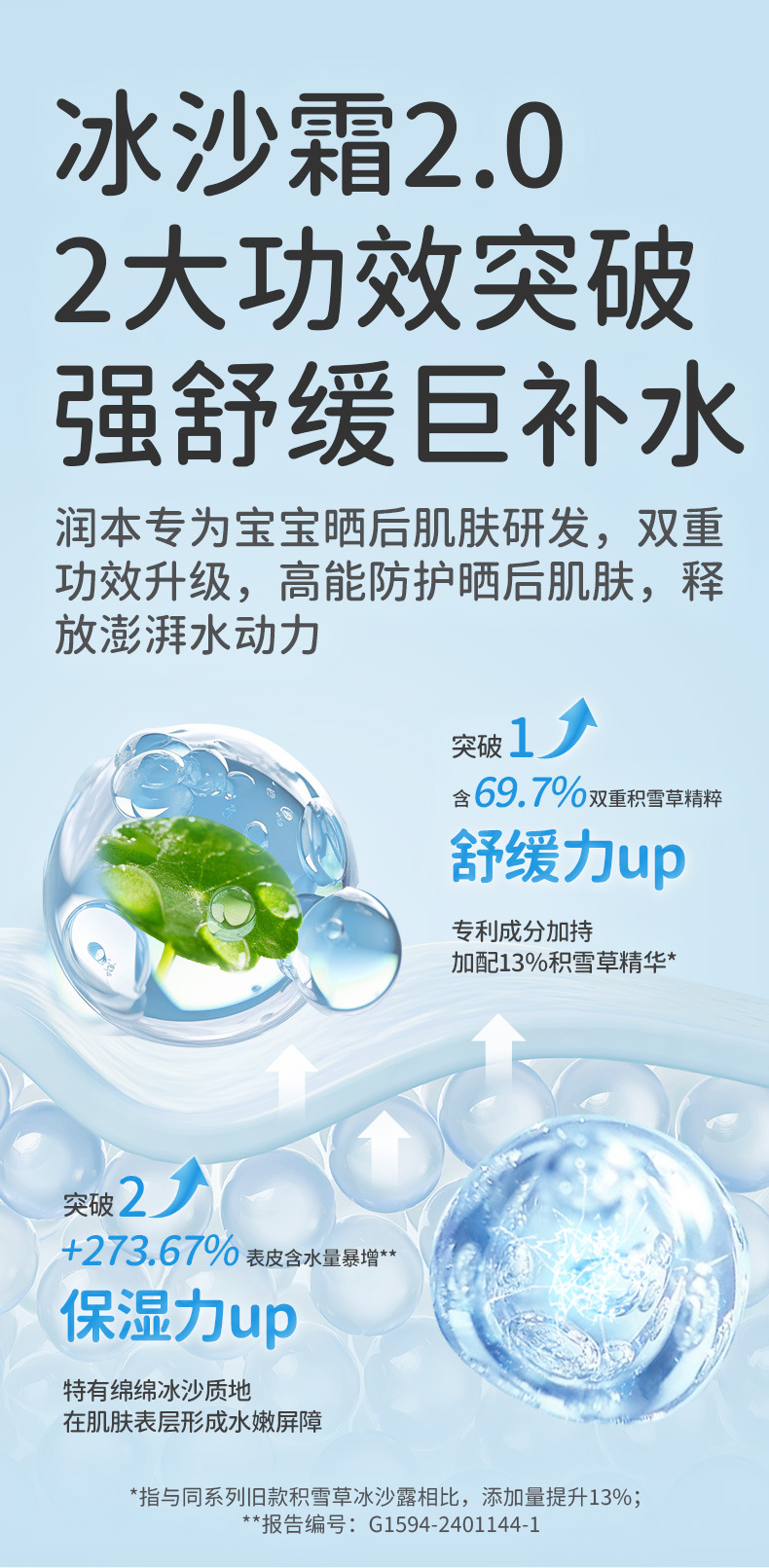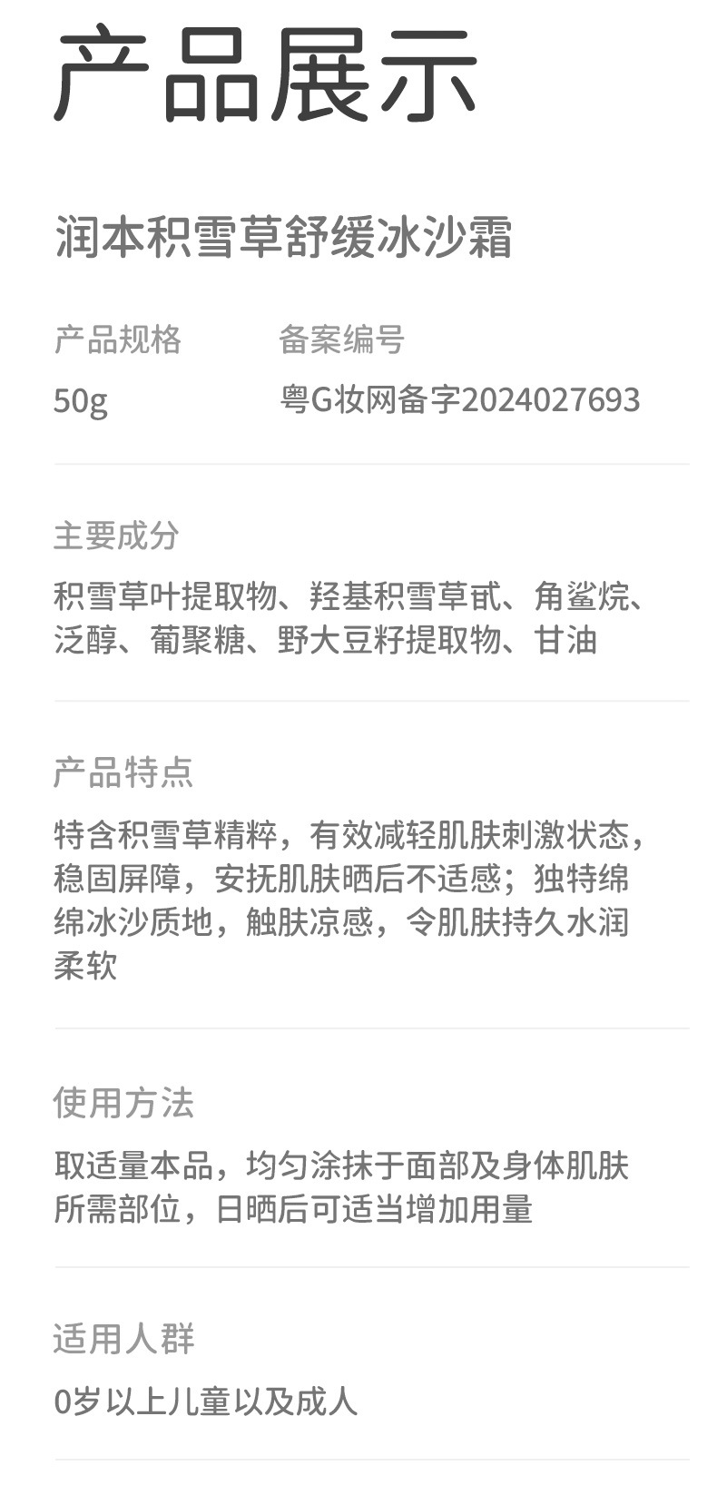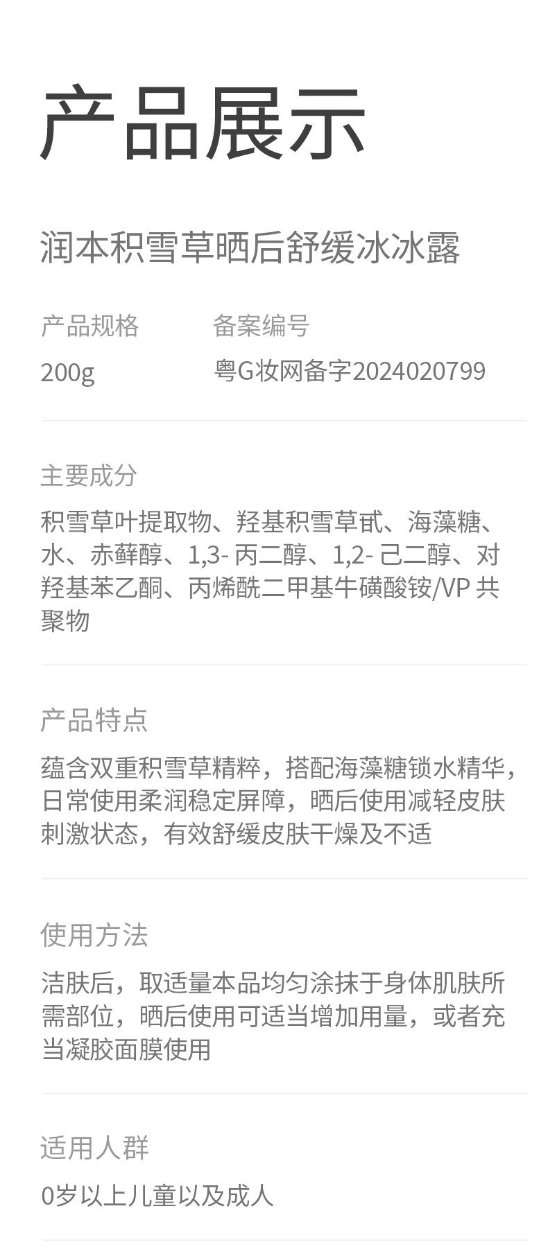 【0岁可用】润本夏日积雪草哂后舒缓修护冰沙霜 晒后冰冰露