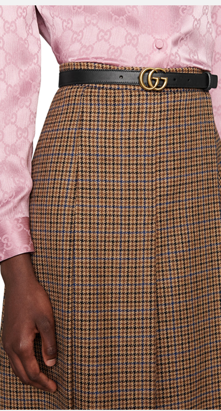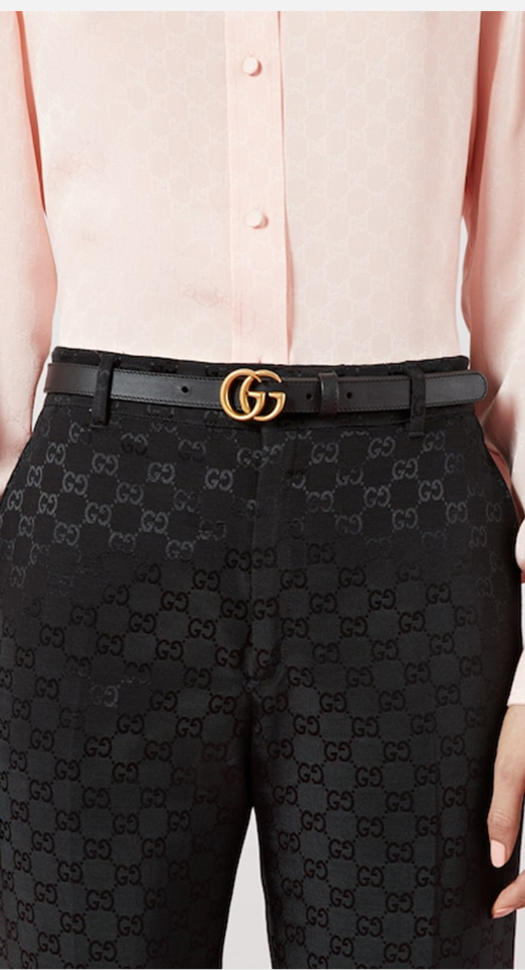 【二】GUCCI 古驰 女士双G带扣皮革腰带 黑色 409417 AP00T 1000