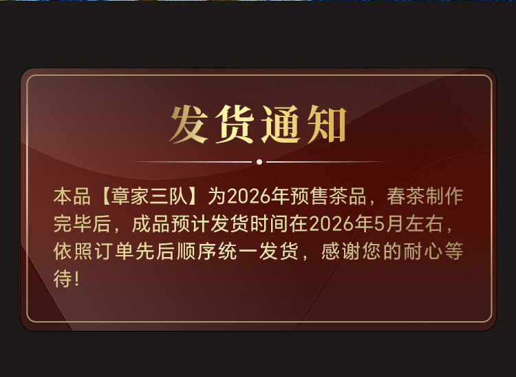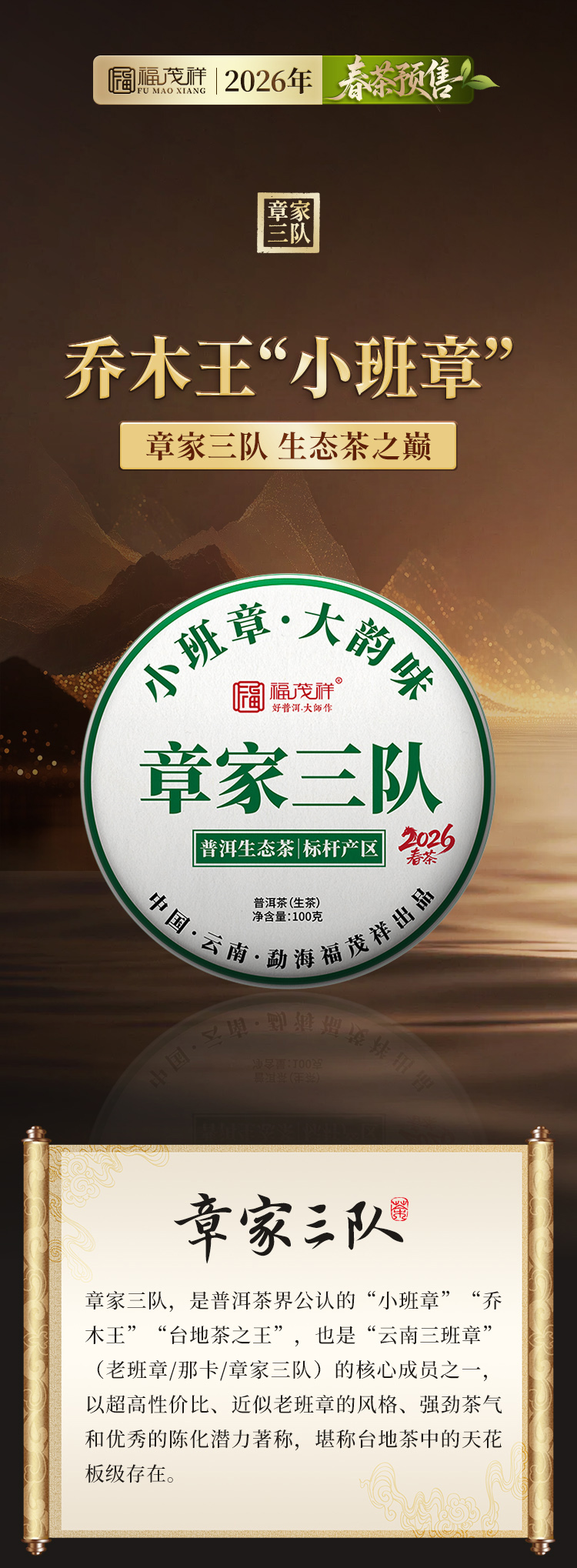 4.16日中午12点开抢;布朗山小班章;【章家三队】生态茶,布朗山性价比之蕞,2026年布朗山章家三队乔木茶100g*5饼