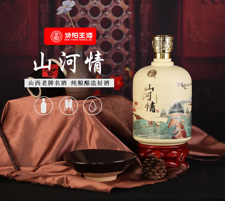 山西名酒汾阳王53度山河情1500ml*1瓶清香型高度白酒礼盒