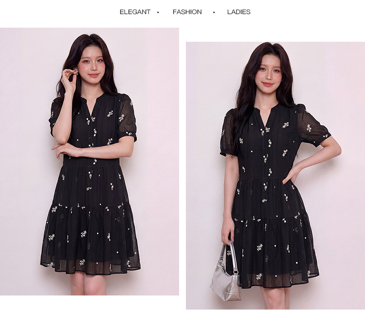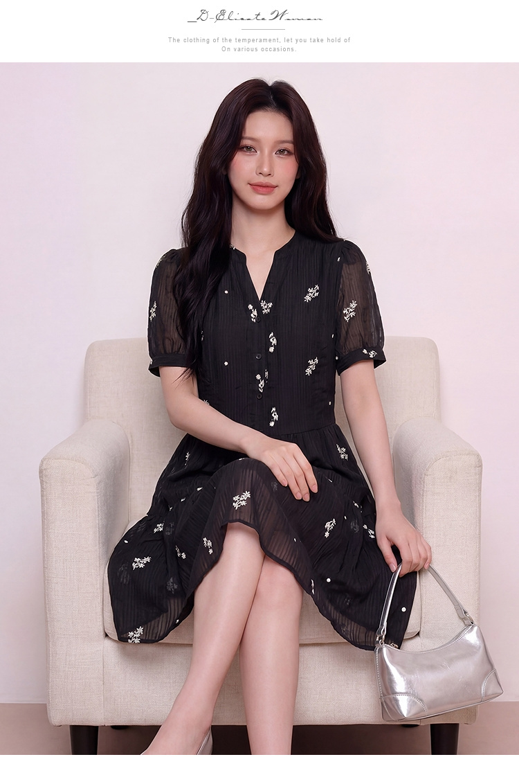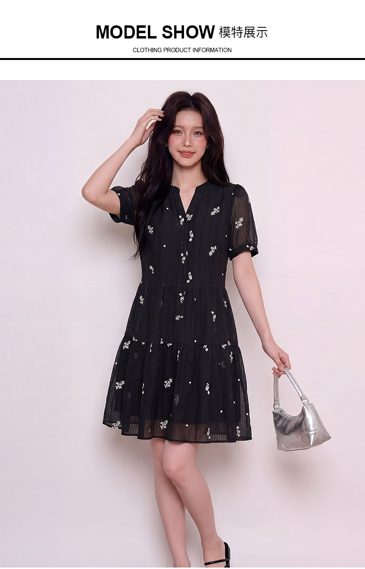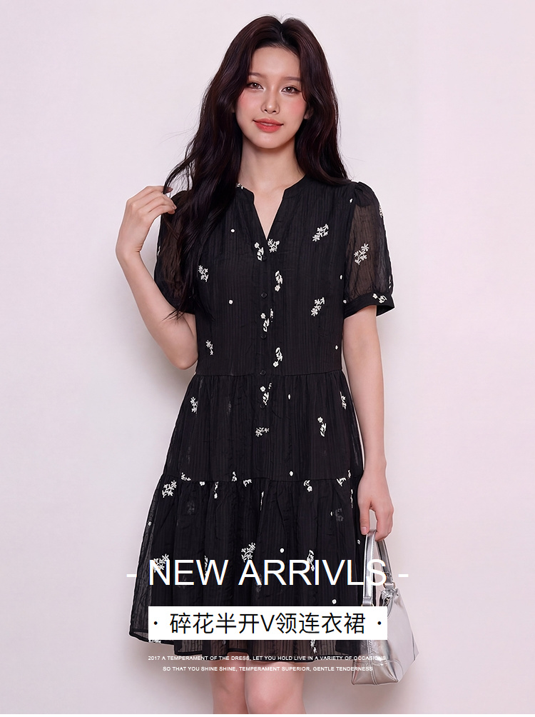 奢姿大码女装2026夏季减龄刺绣半开V领连衣裙胖妹妹时尚气质裙子9962854731