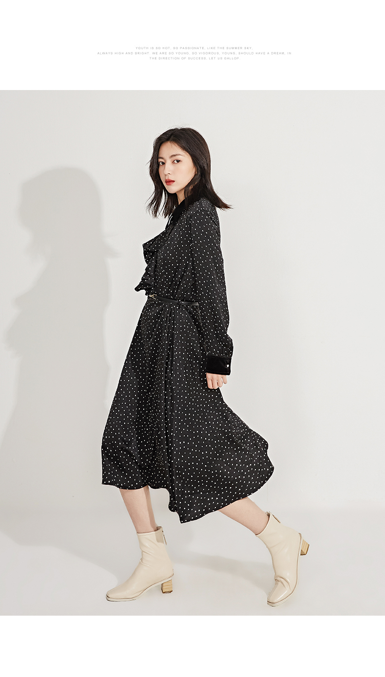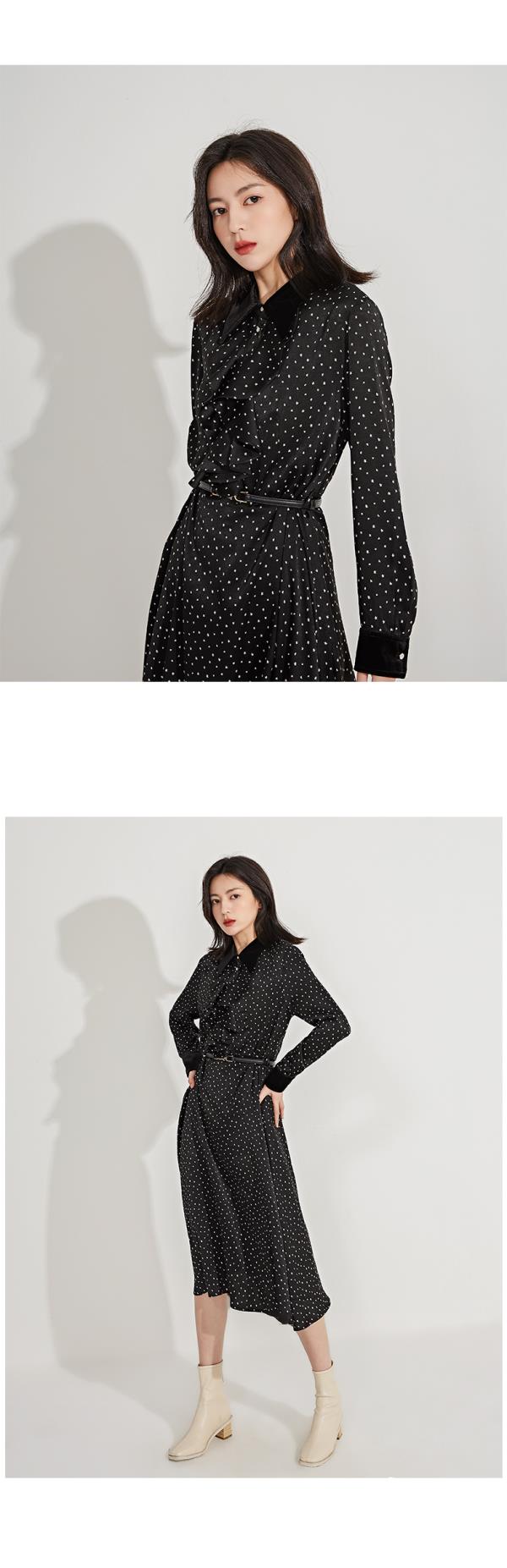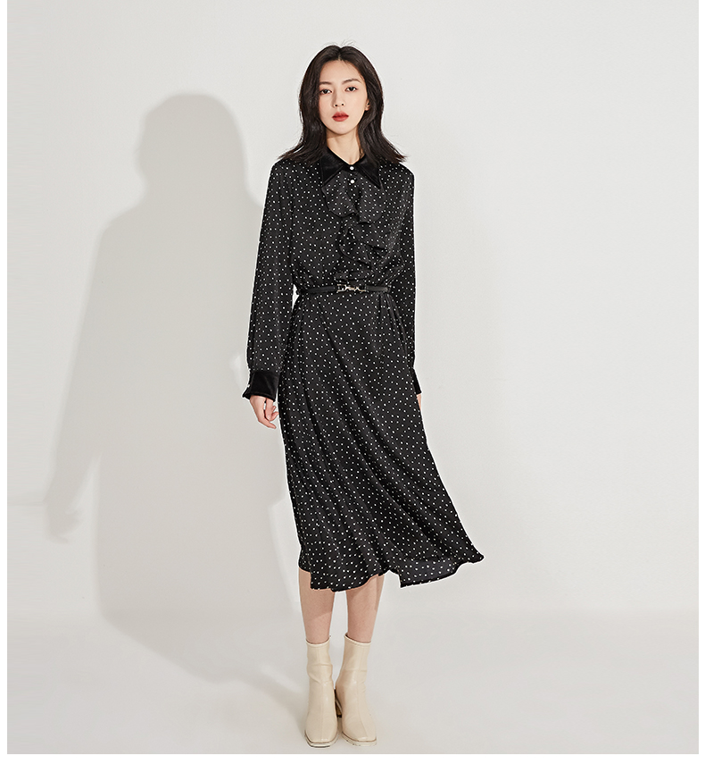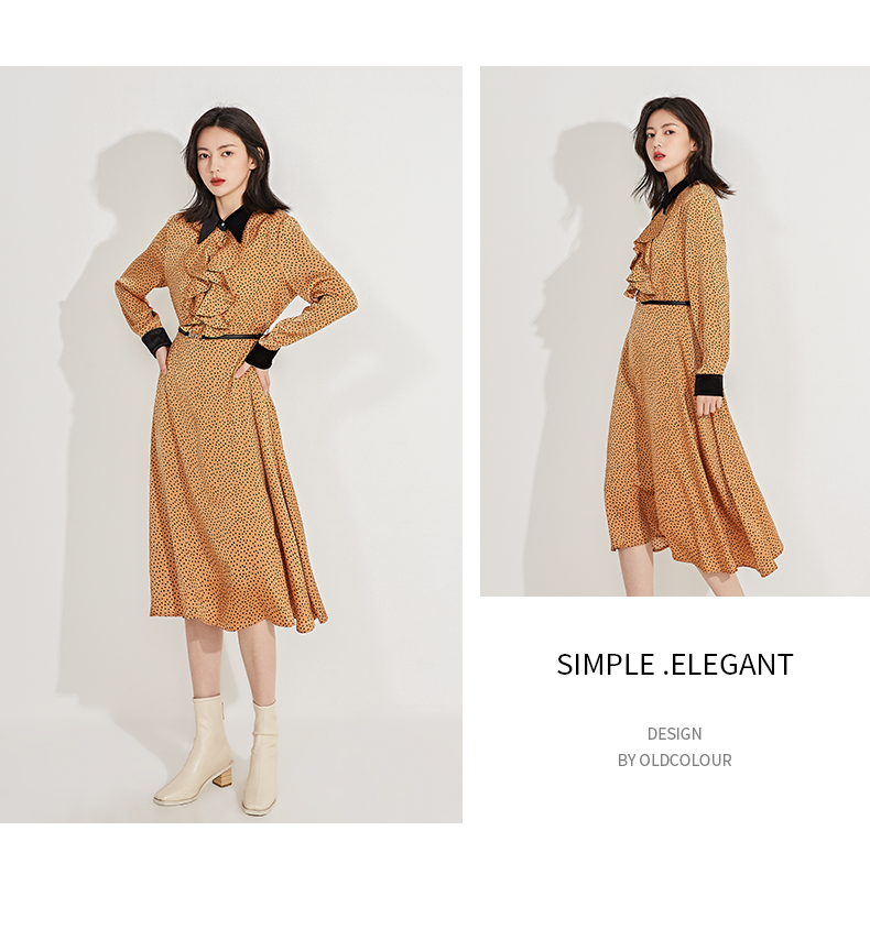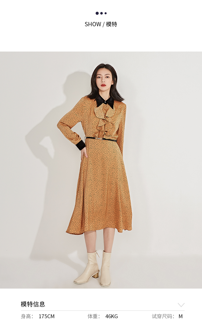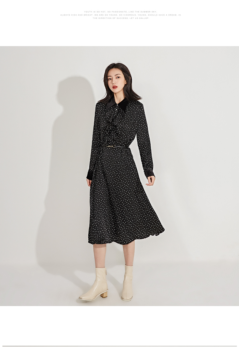 oldcolour春季新品时尚波点设计感收腰显瘦长袖连衣裙GN11103606