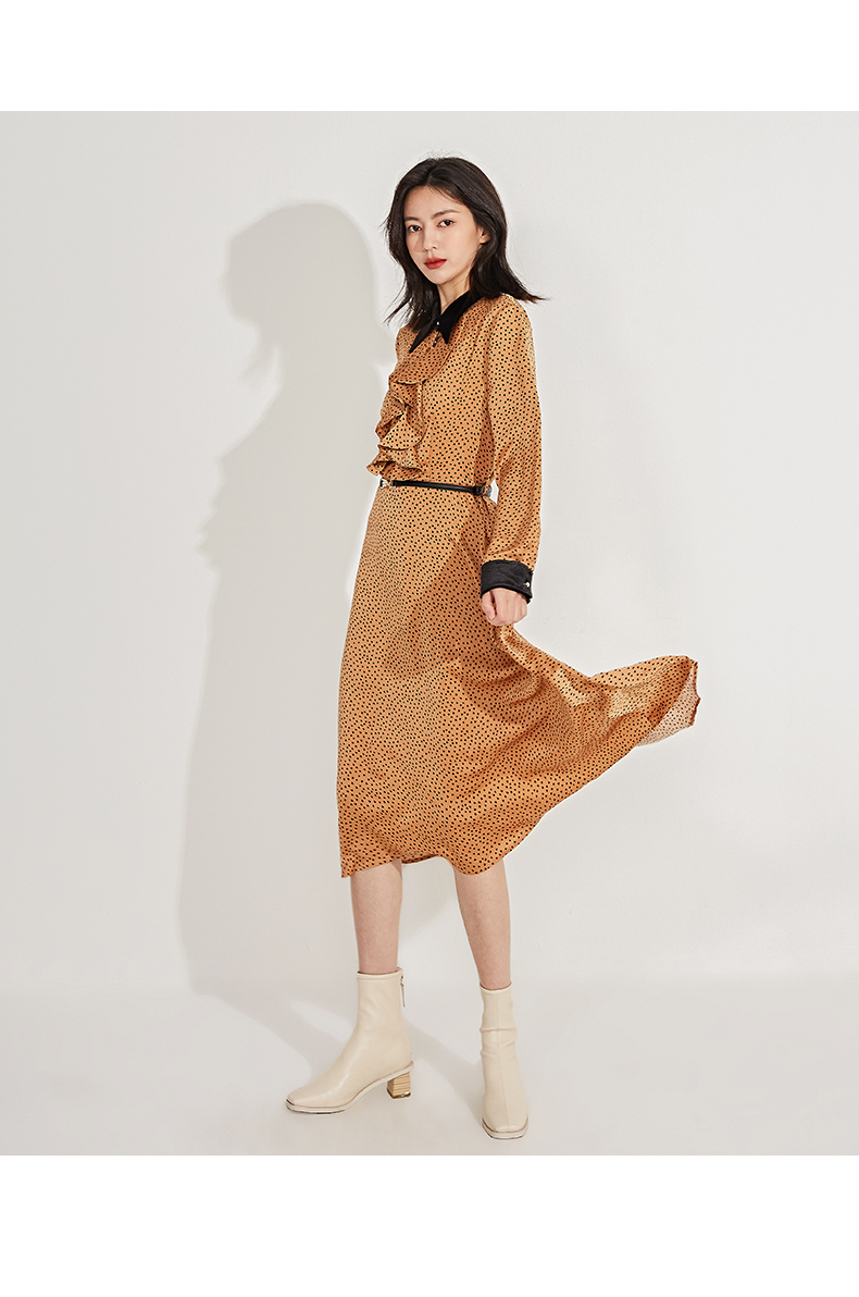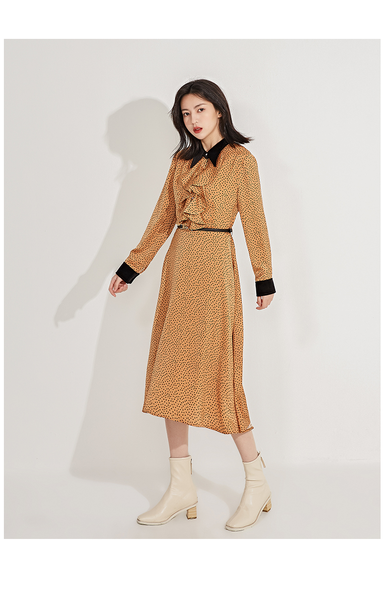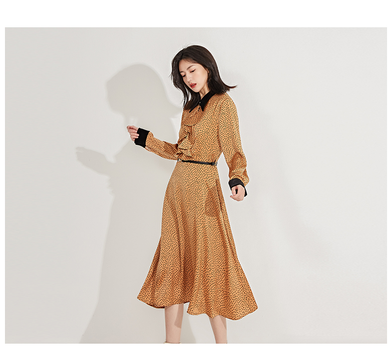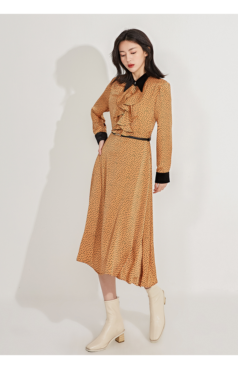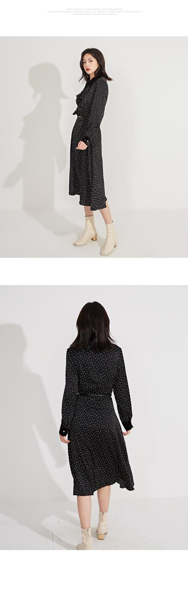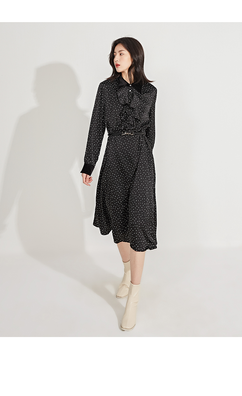oldcolour春季新品时尚波点设计感收腰显瘦长袖连衣裙GN11103606