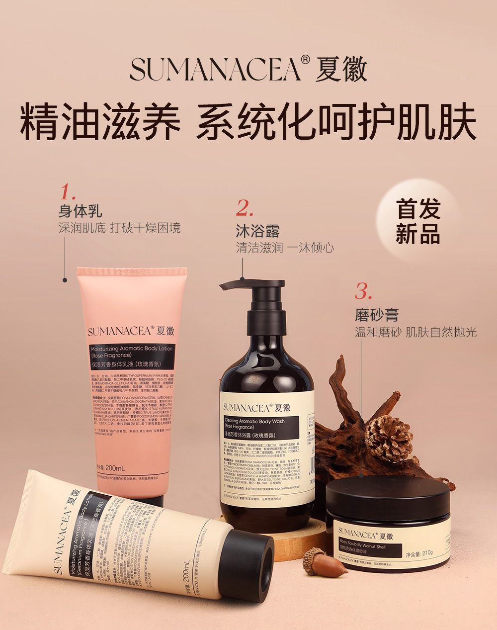 【夏徽身体洗护系列】精油植萃滋养,系统化呵护肌肤!润而不腻,质地轻盈!改善干燥粗糙,对标大牌成分焕活肌底,持续保湿!【QJ-J】