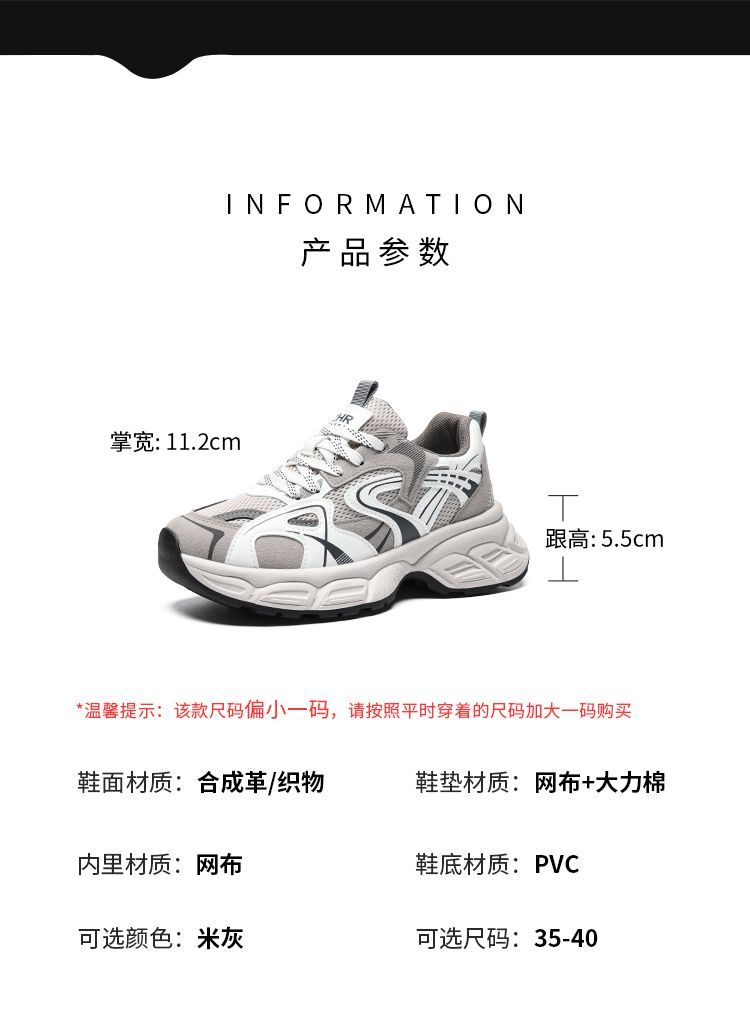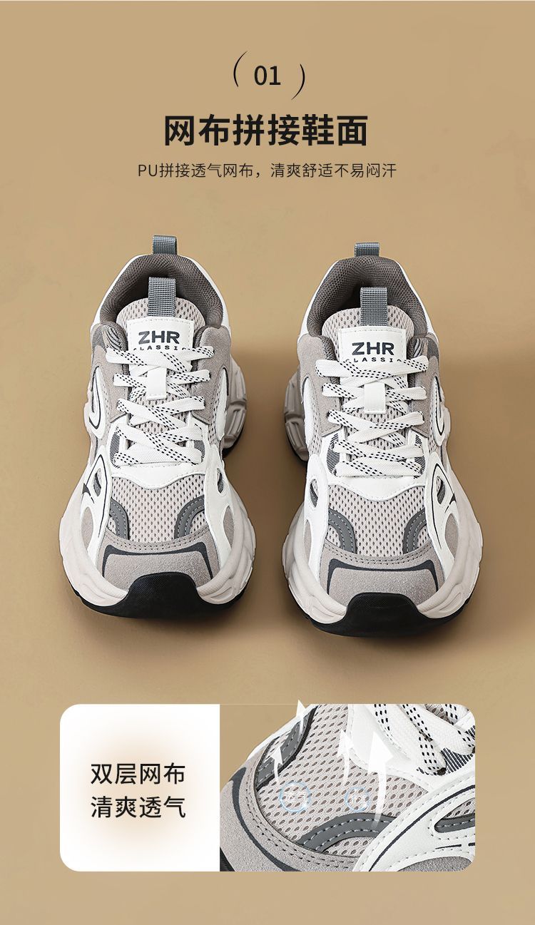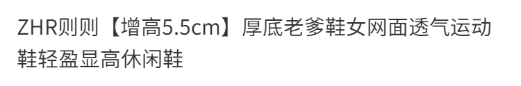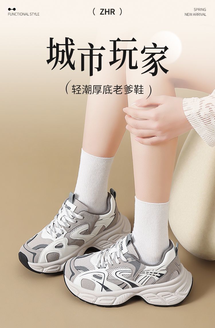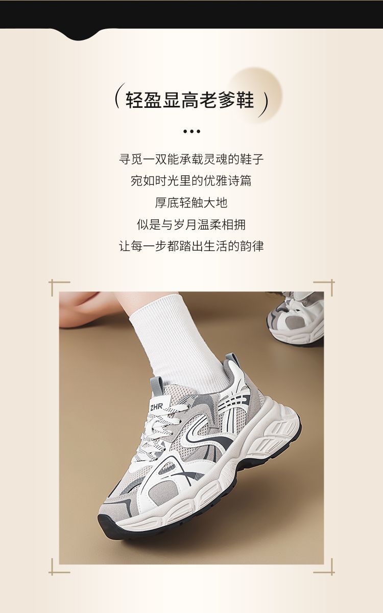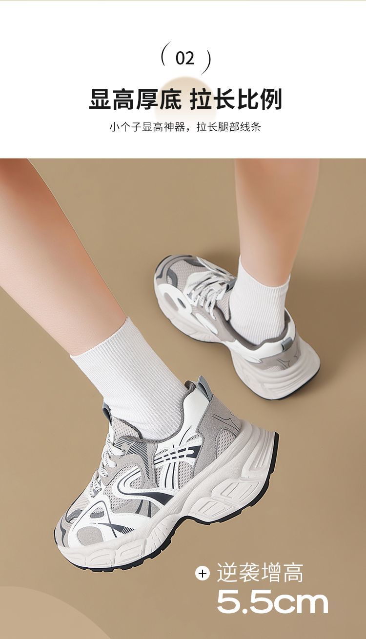 ZHR则则【增高5.5cm】厚底老爹鞋女网面透气运动鞋轻盈显高休闲鞋