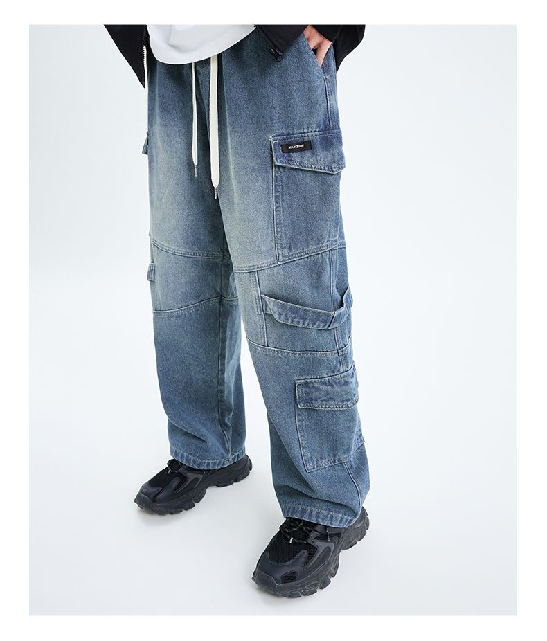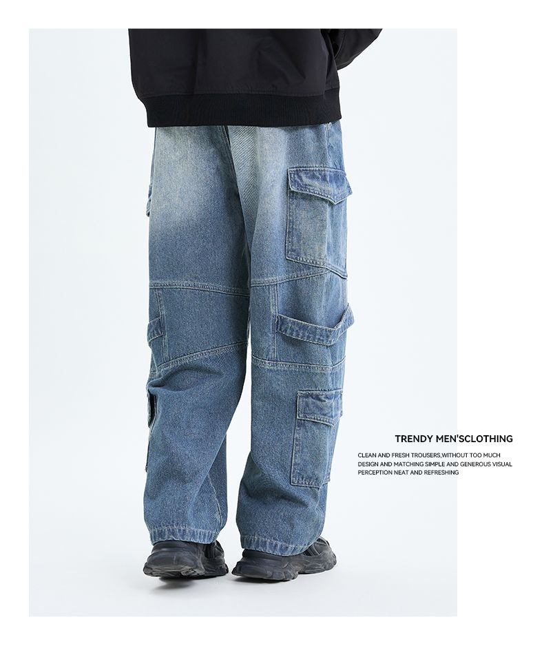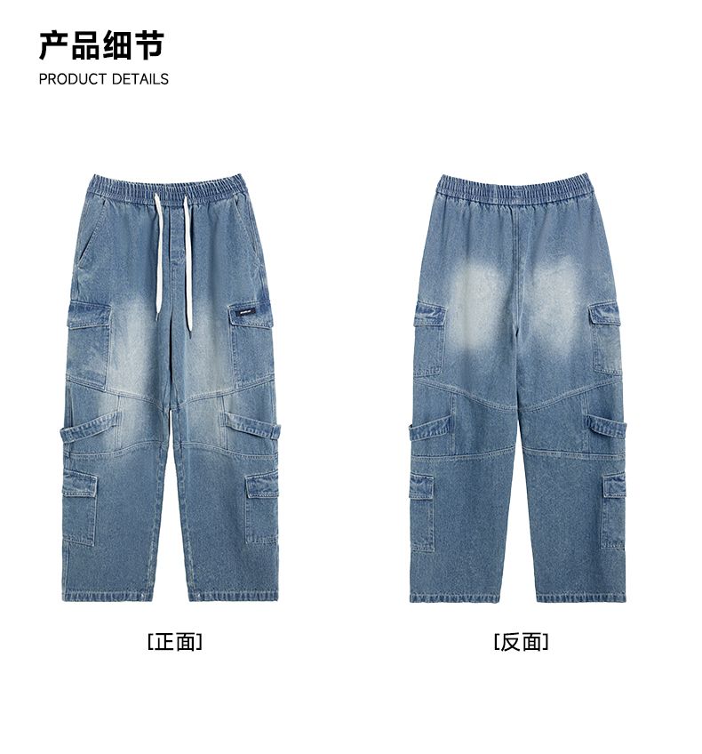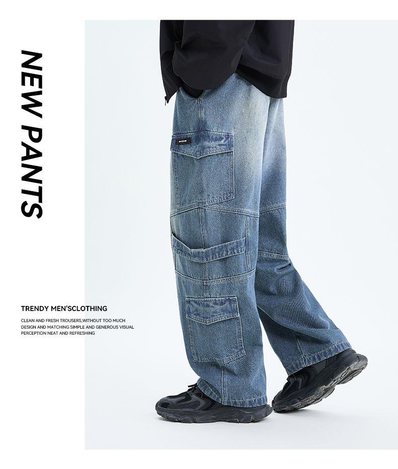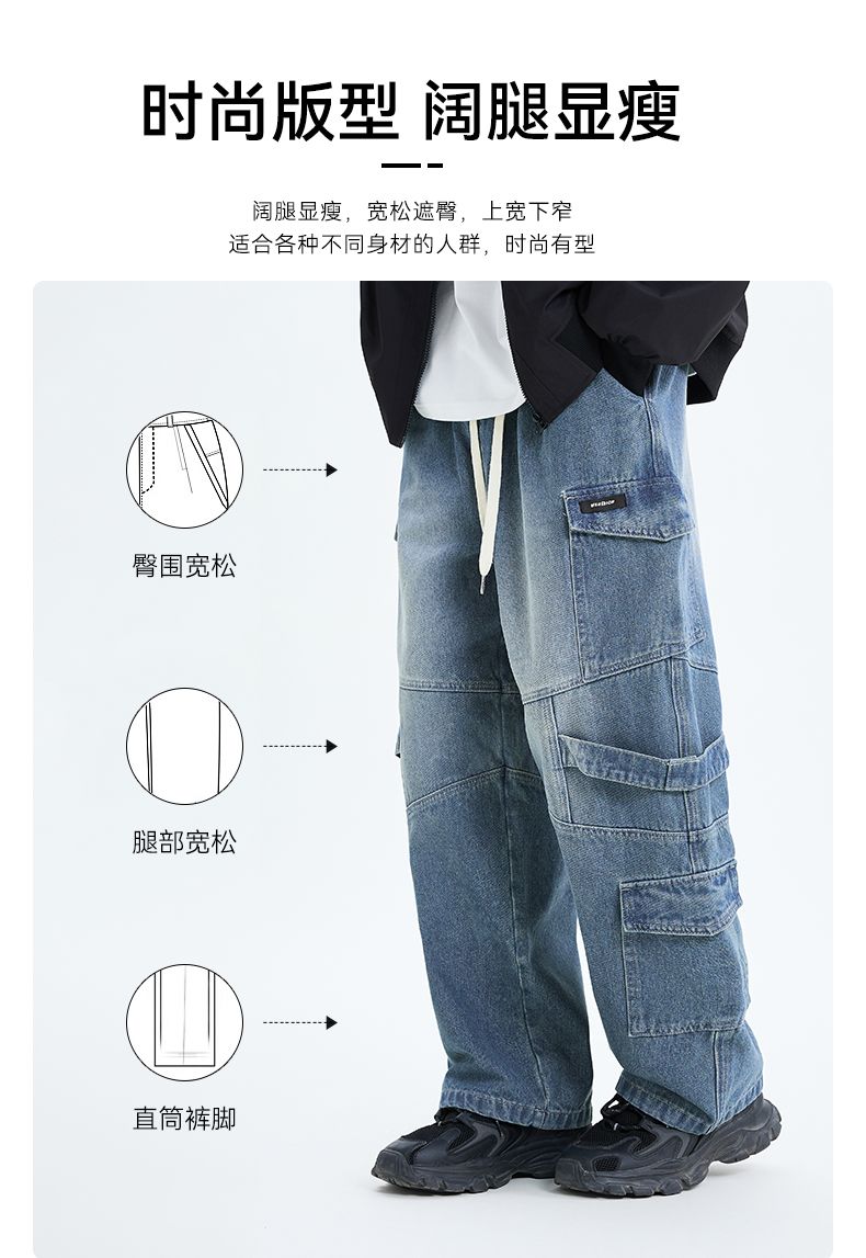 回力工装牛仔裤男2025春秋新款美式高街阔腿休闲裤宽松直筒长裤子