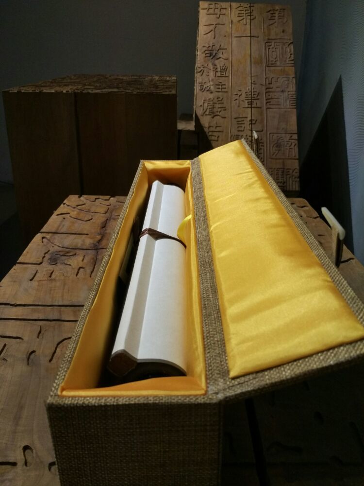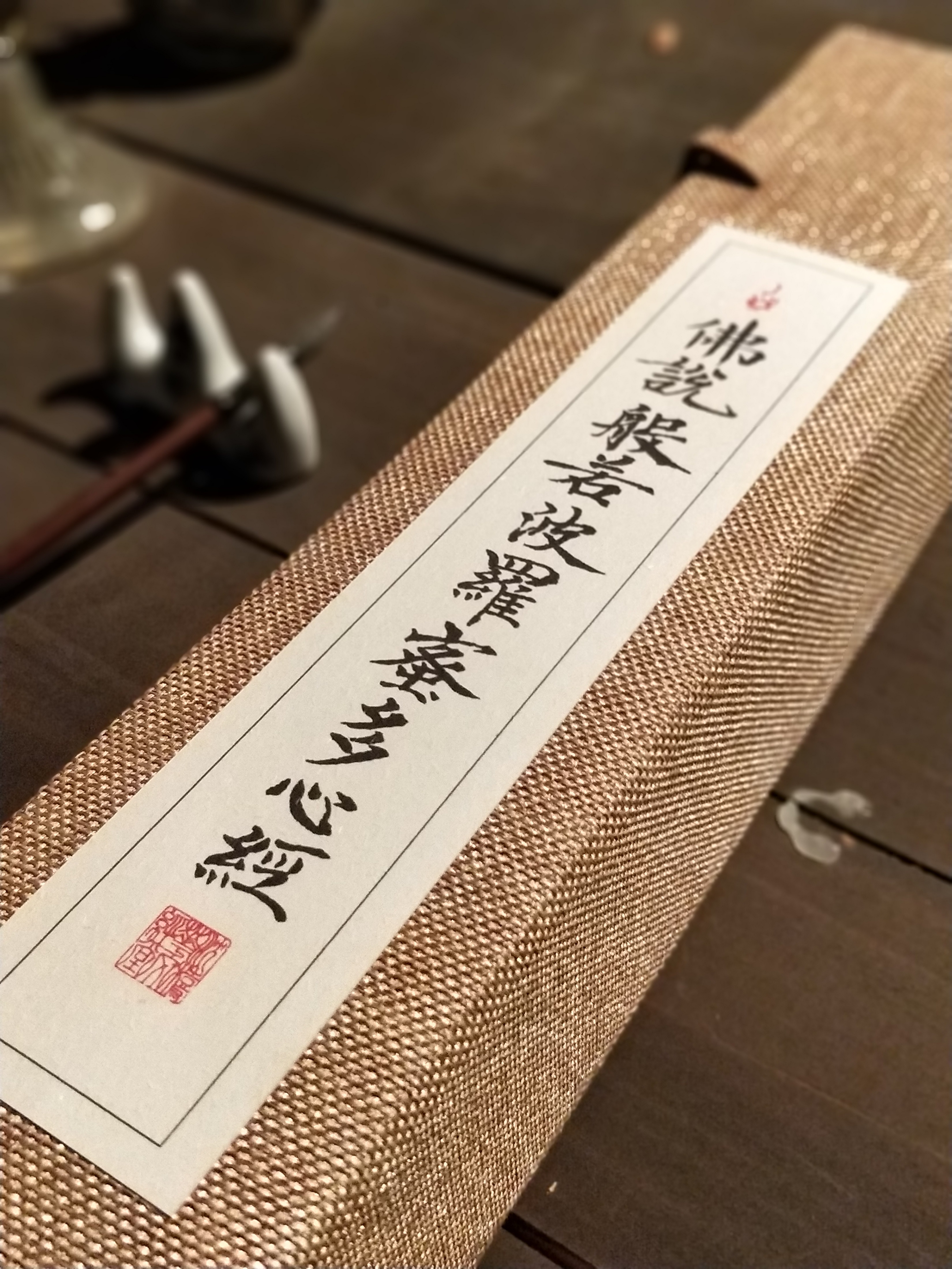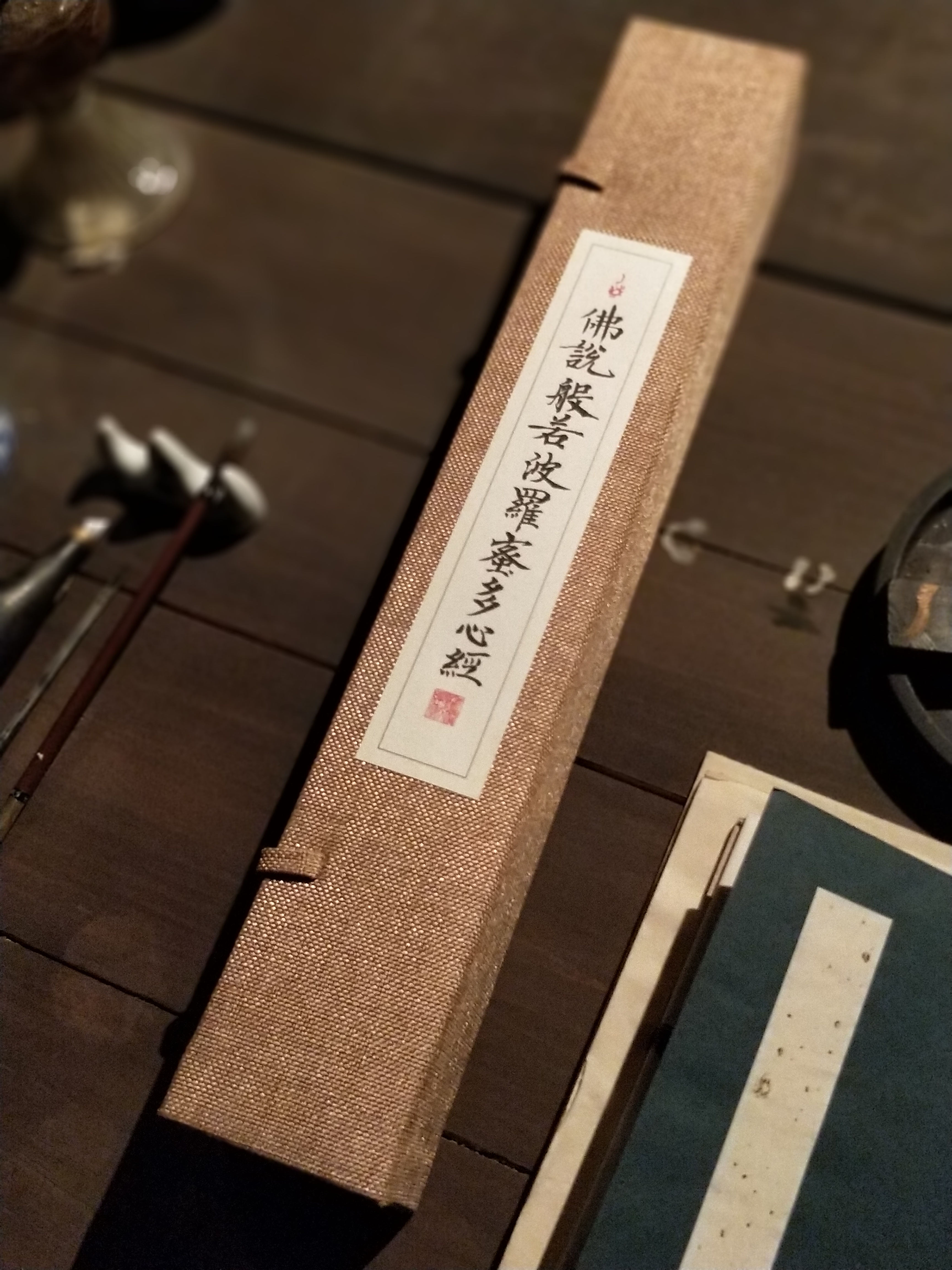 唐代宝塔型心经,原件藏于法国国家图书馆,古法木刻四色套印,采用百年松烟墨,日本进口朱砂墨手工印制,印刷难度大,成品率低,影刻唐代写本,由国家工艺美术大师江苏省代表性技艺传承人沈树华老师本工,雕刻细致入微,已经看不出刀法的痕迹,完全还原唐楷的韵味,配亚麻锦盒,古朴简洁,锦盒尺寸:50*8*8