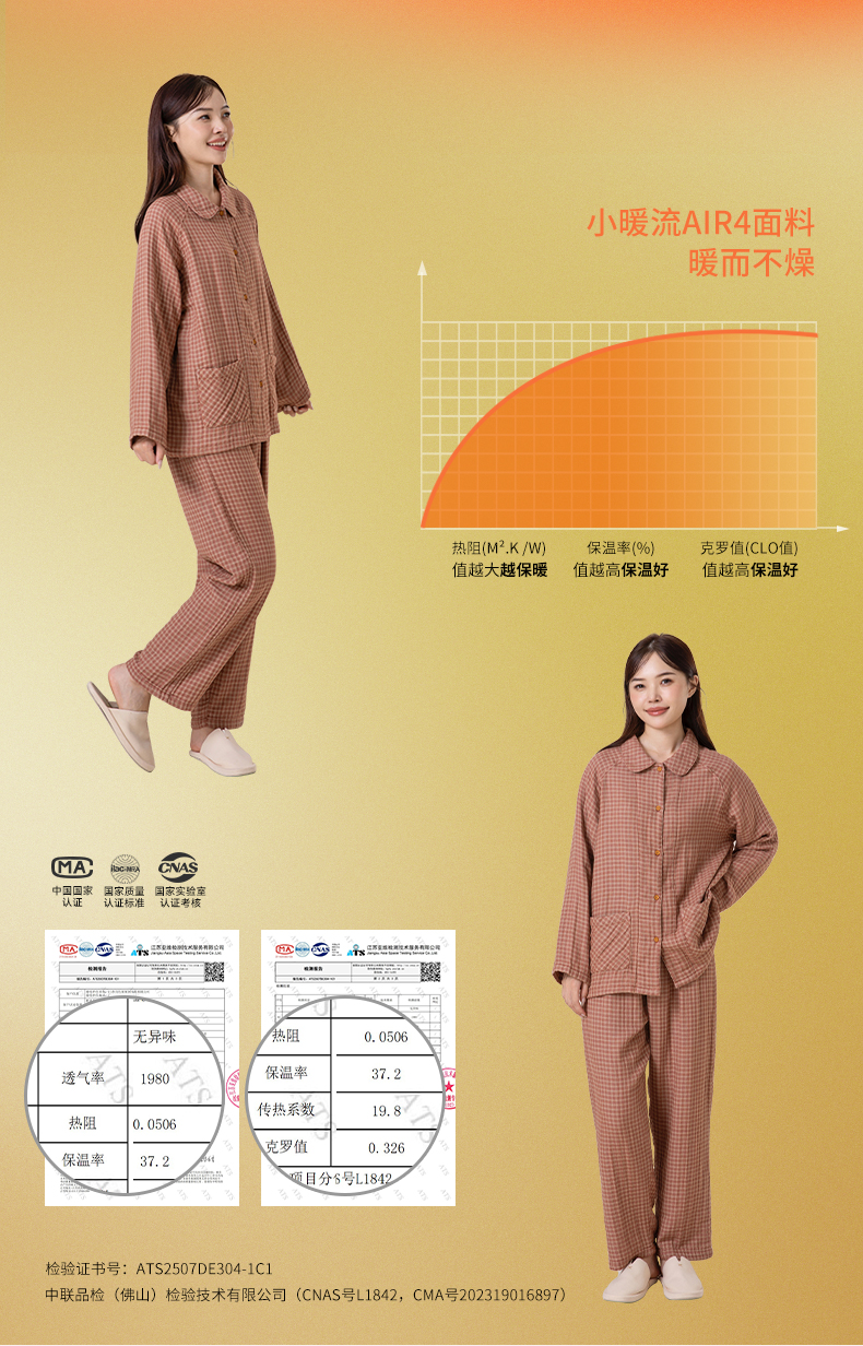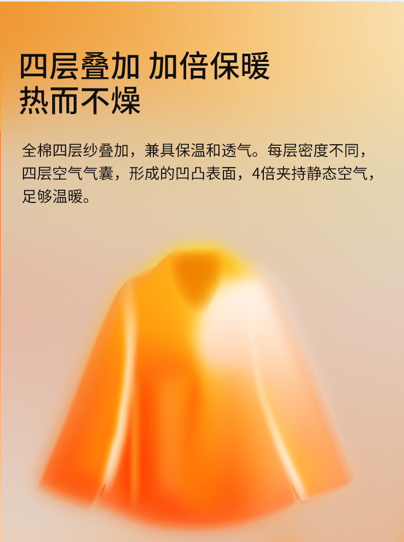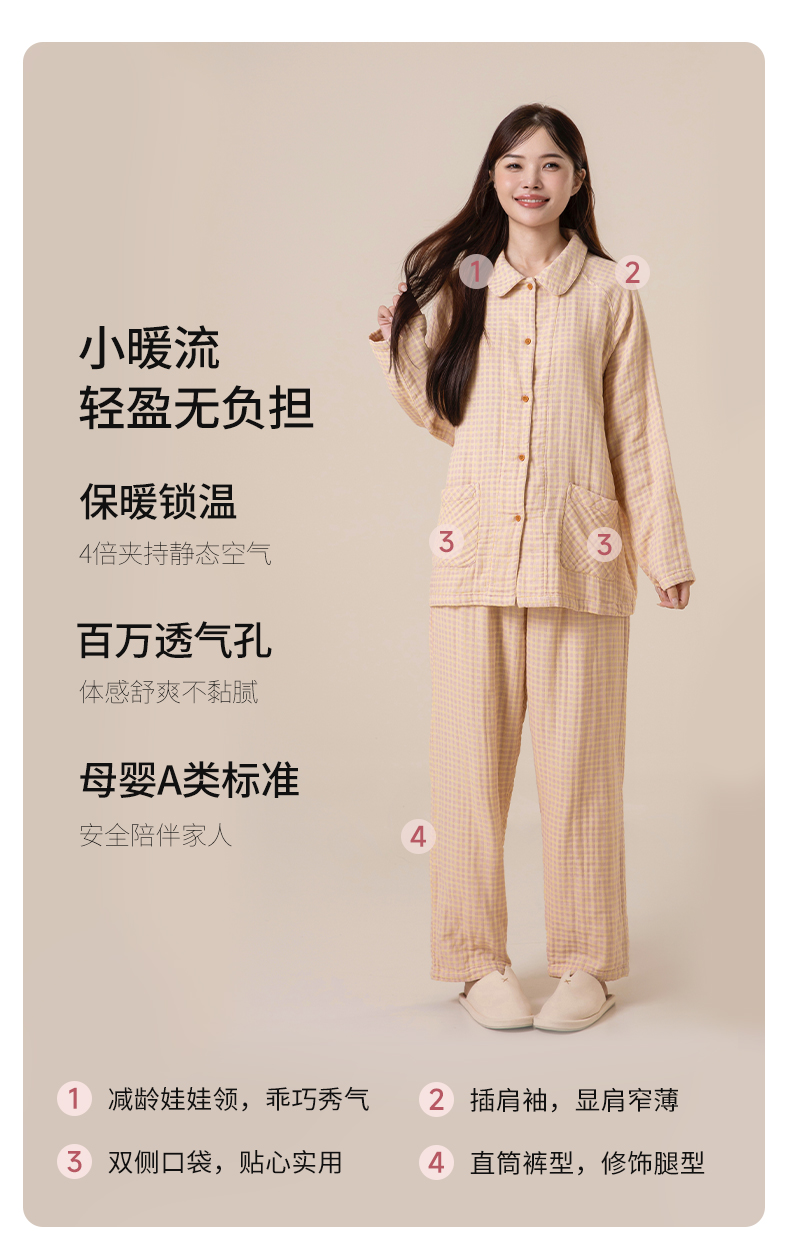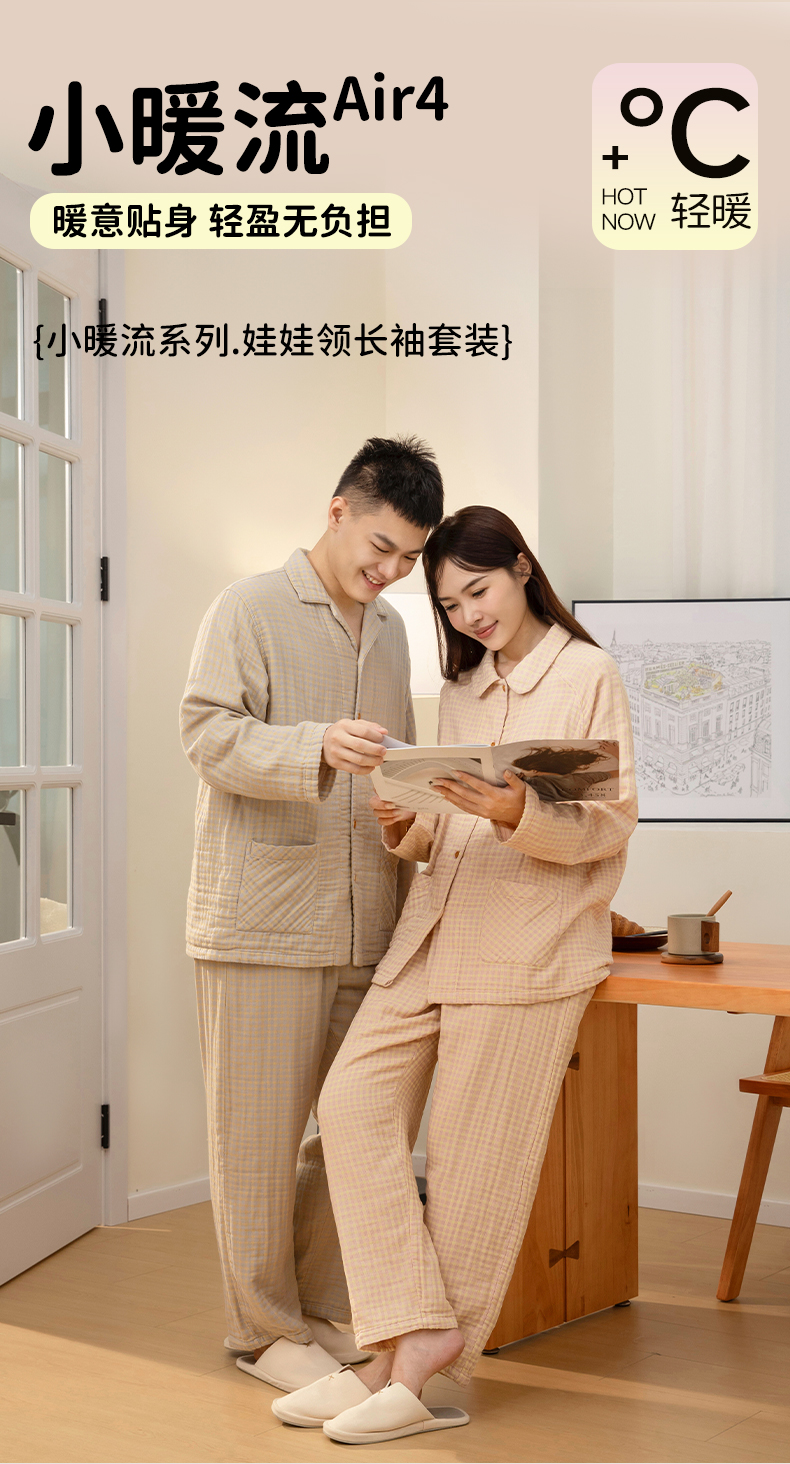 宜色家A类四层纱小暖流·经典款套装,保暖锁温、暖意贴身 、体感舒爽不黏腻