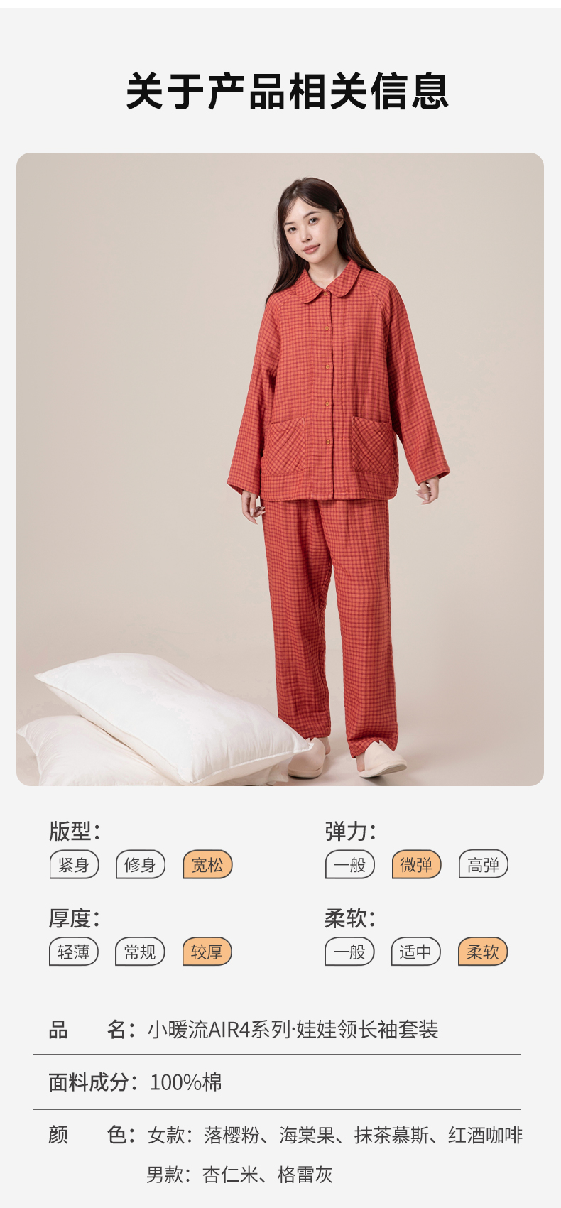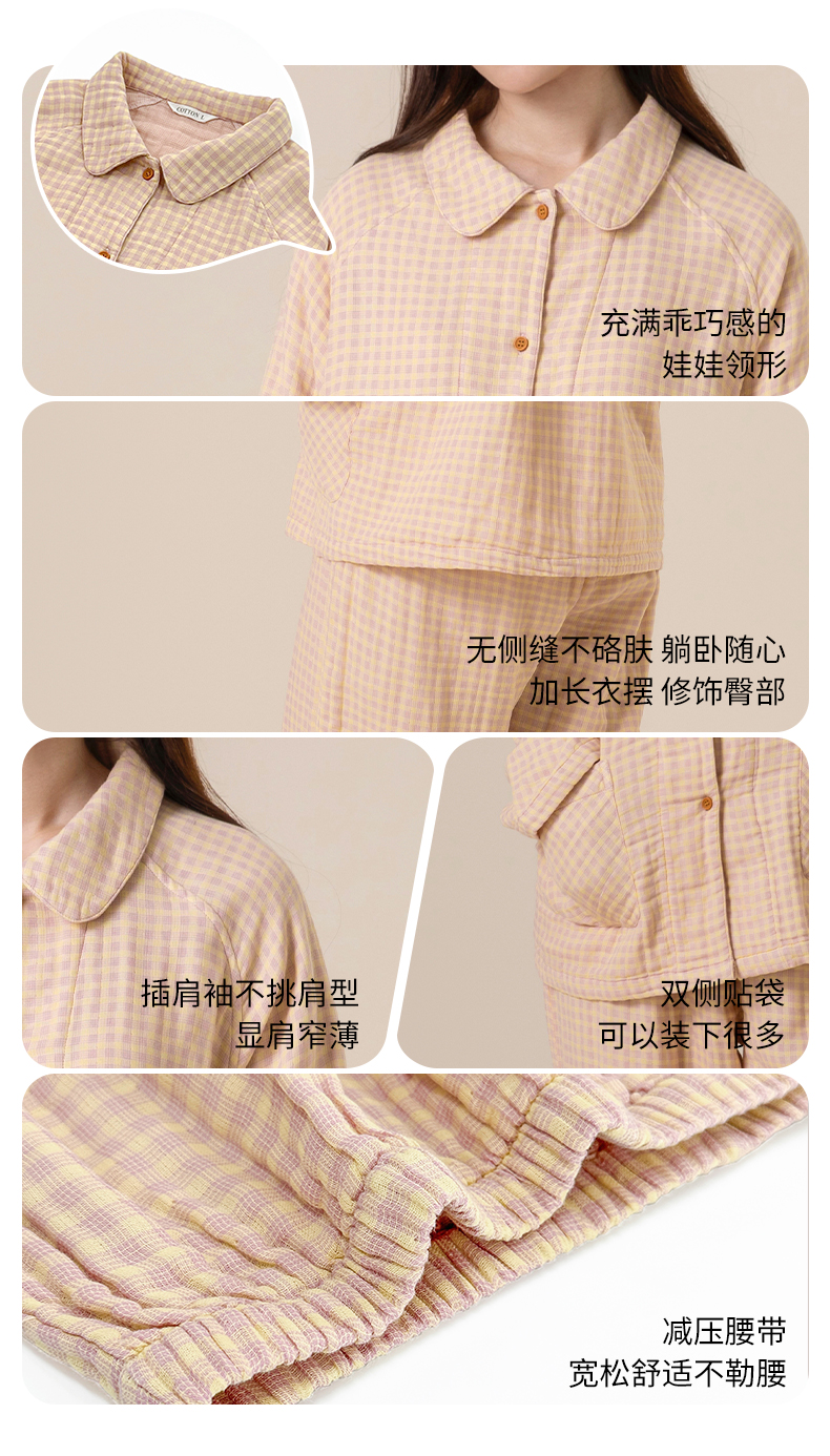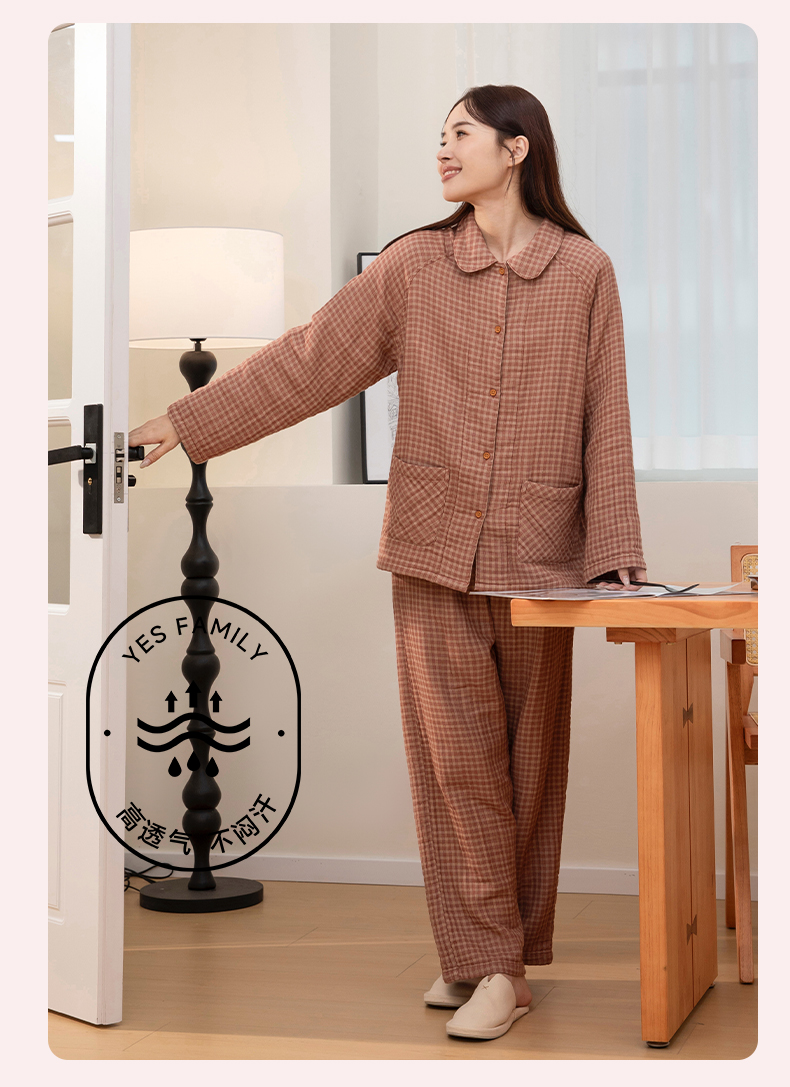 宜色家A类四层纱小暖流·经典款套装,保暖锁温、暖意贴身 、体感舒爽不黏腻