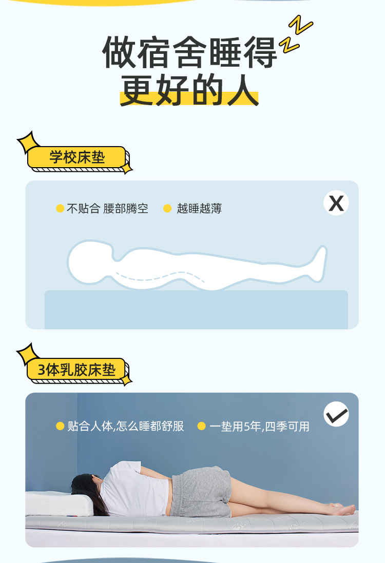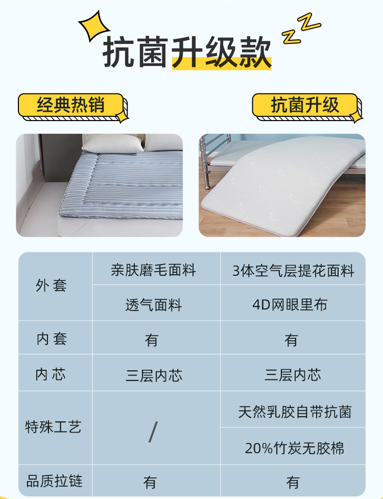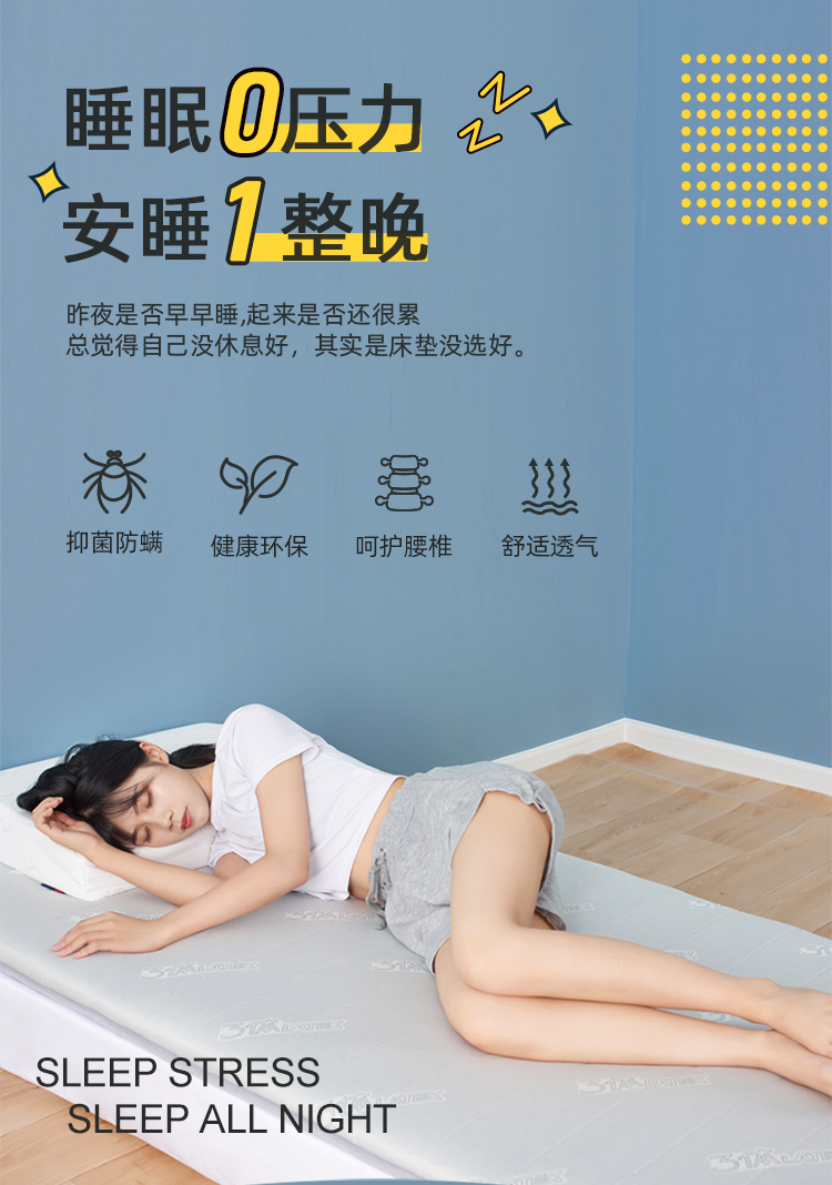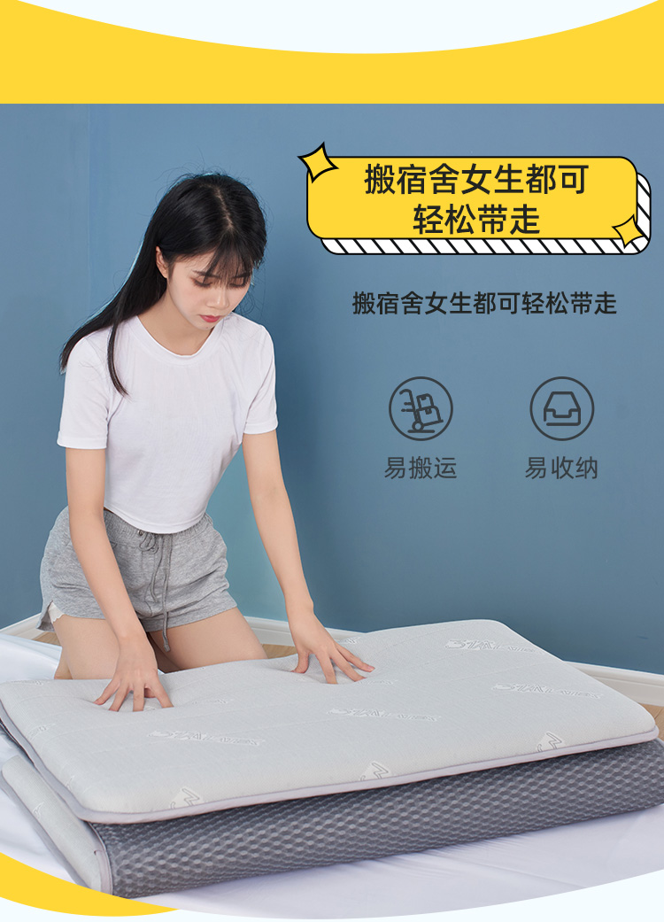 佳丽斯3体乳胶床垫学生宿舍专用榻榻米可折叠软垫