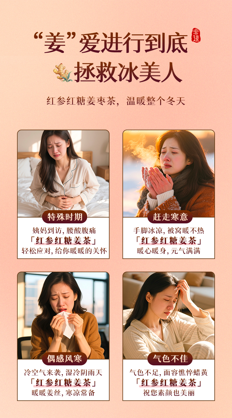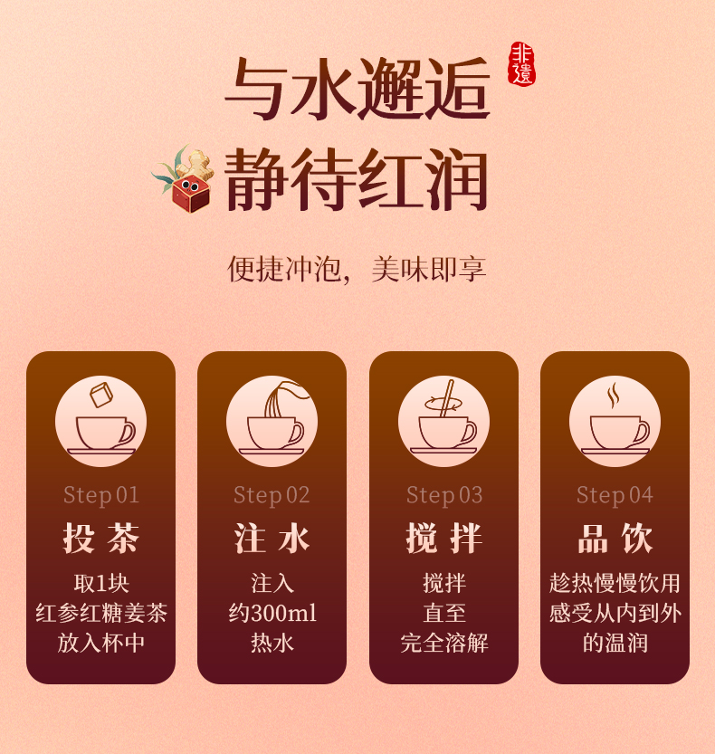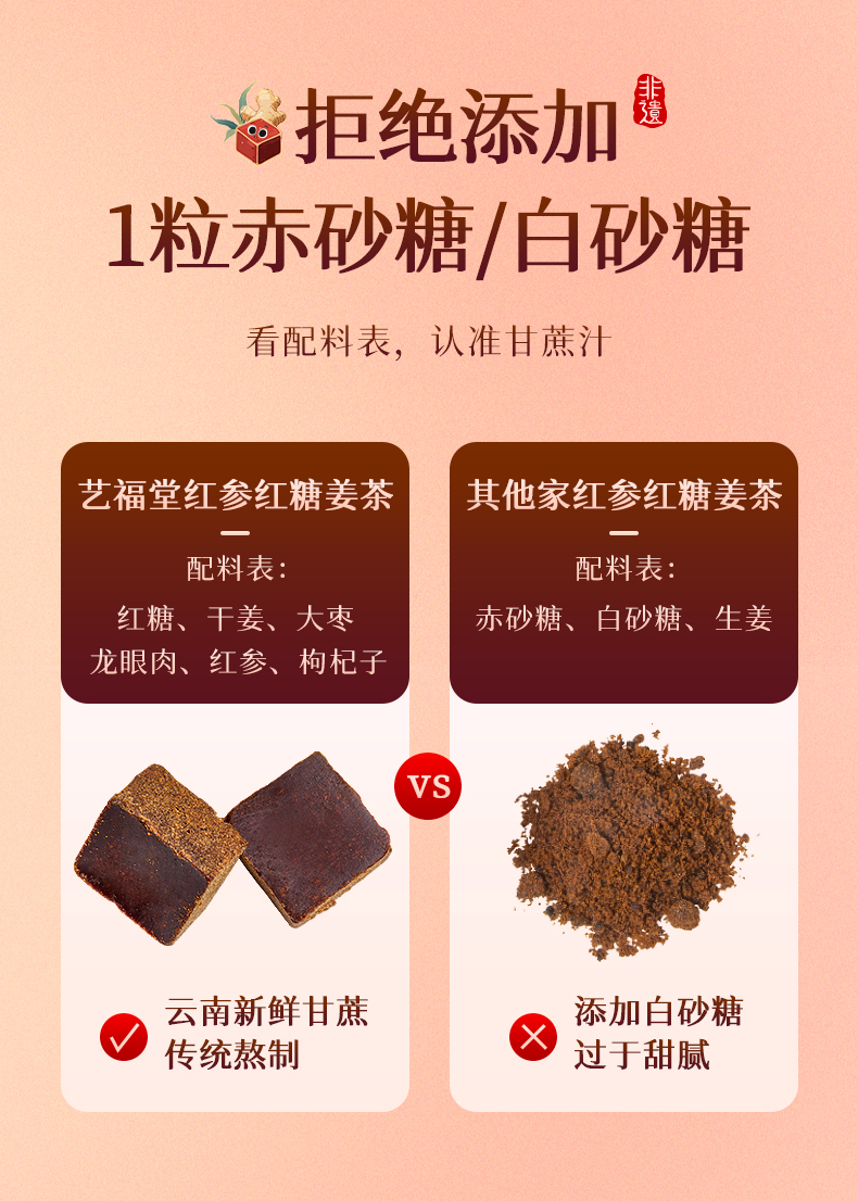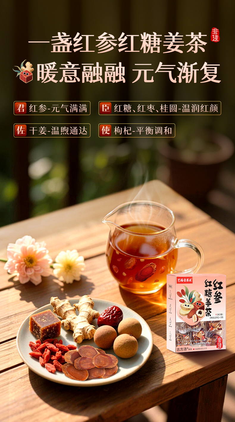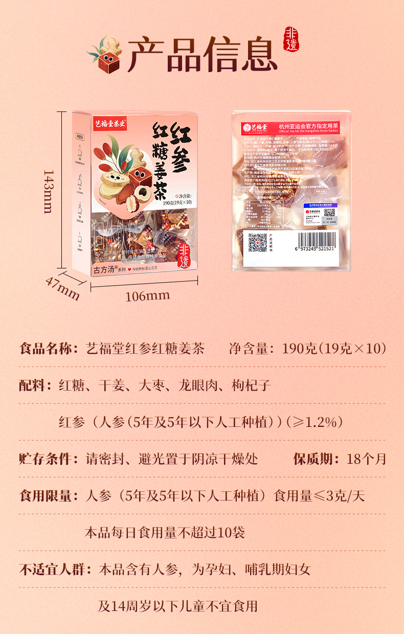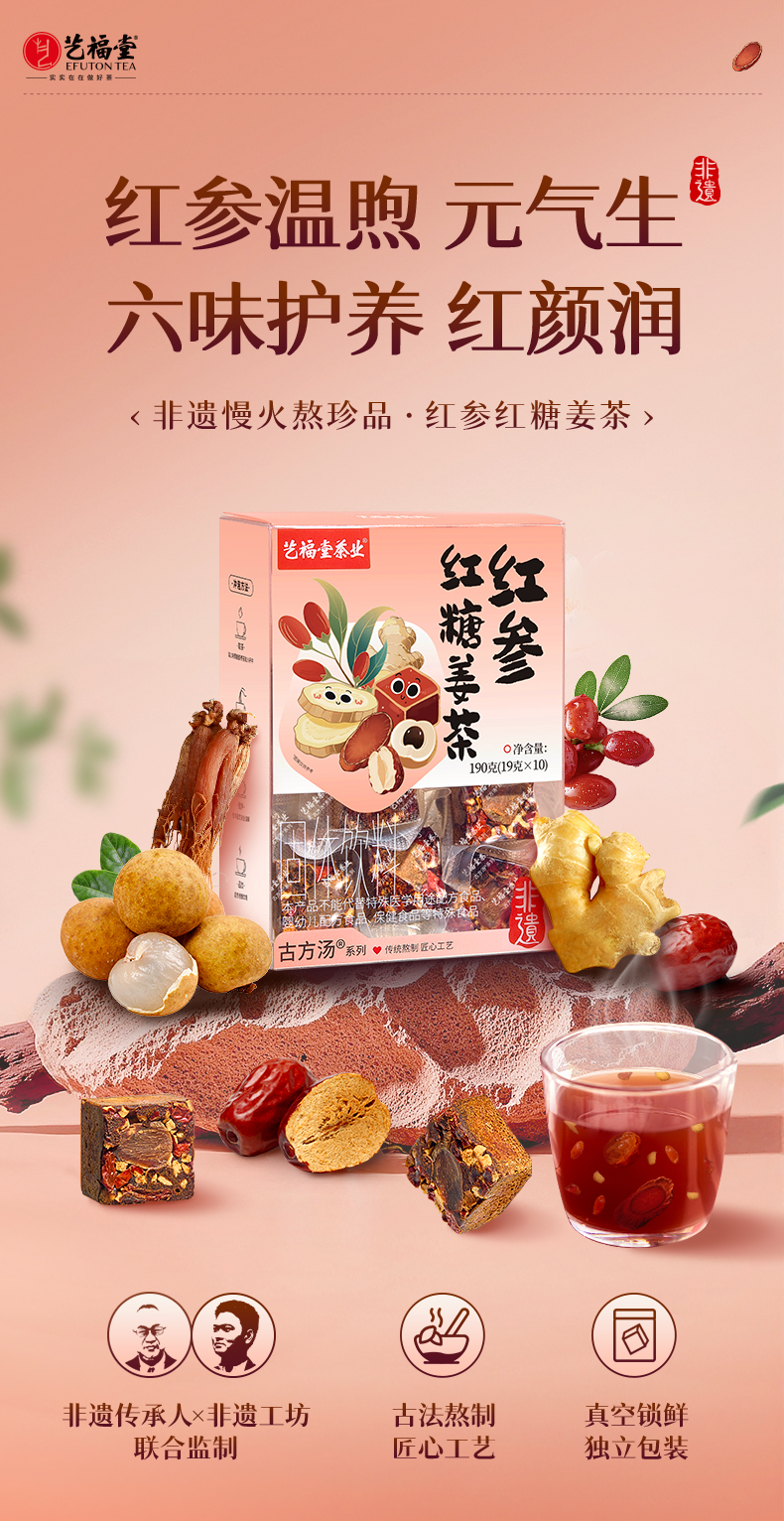 艺福堂红参红糖姜茶190g/盒